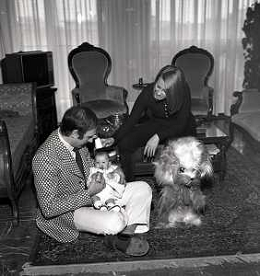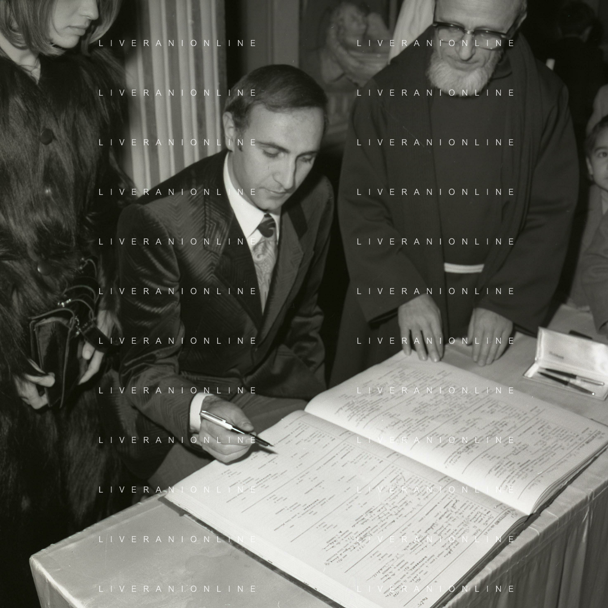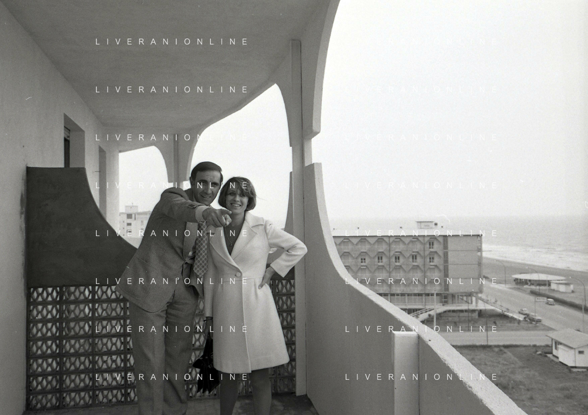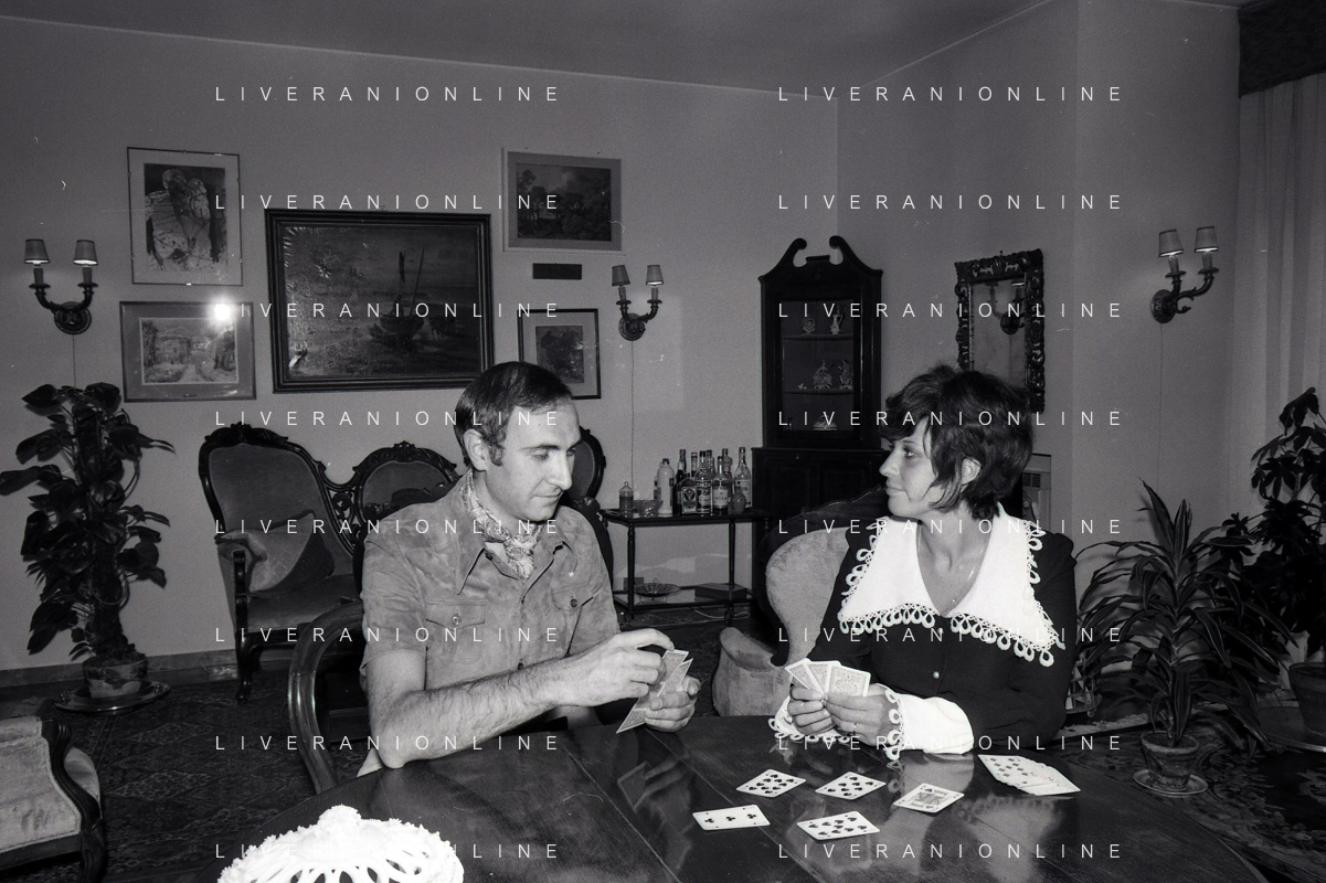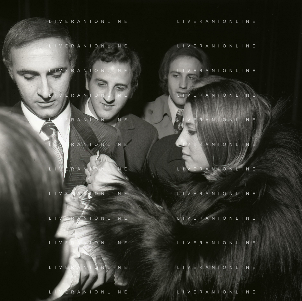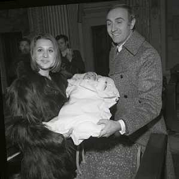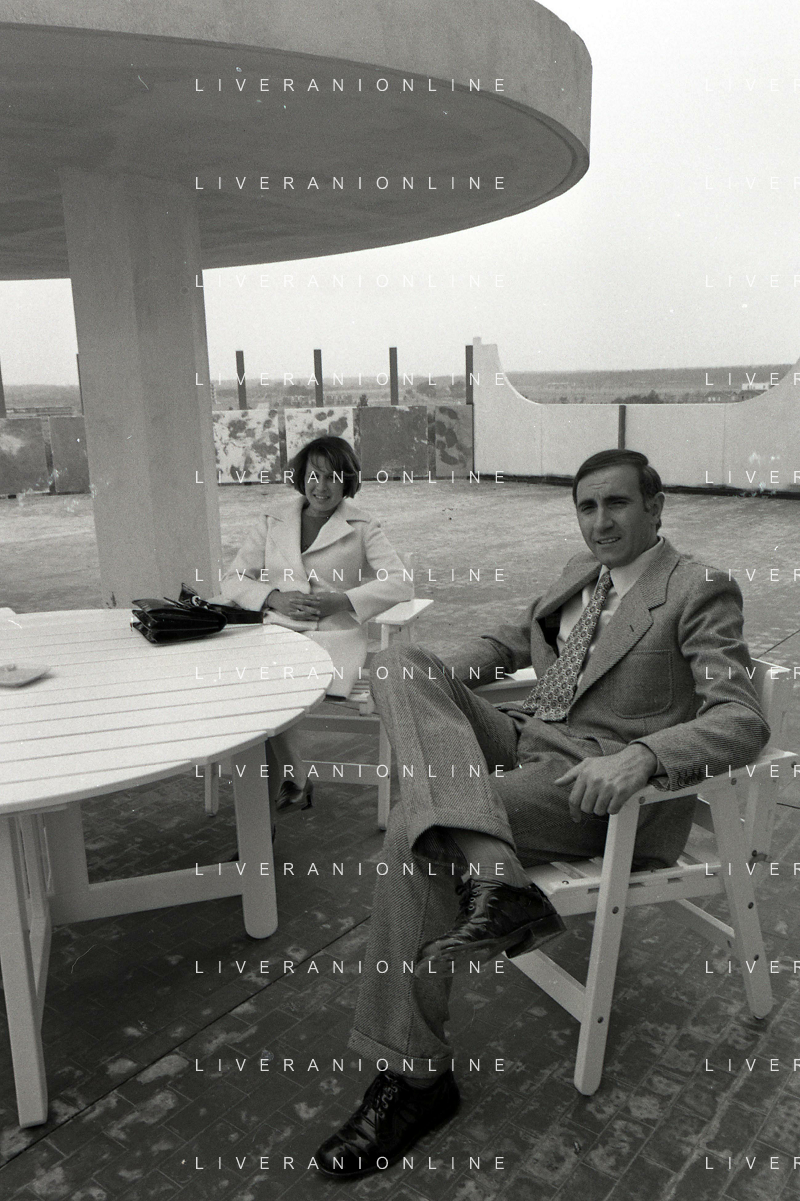 MILANO 1970 RETROSPETTIVA PIPPO BAUDO PRESENTATORE TELEVISIVO NELLA FOTO PIPPO BAUDO CON ANGELA LIPPI IL GIORNO DEL BATTESIMO DELLA FIGLIA TIZIANA AG ALDO LIVERANI SAS