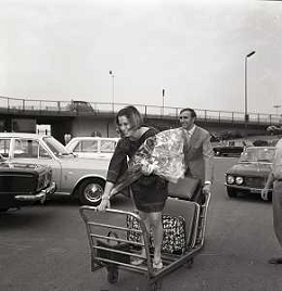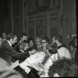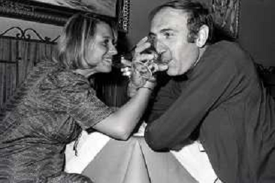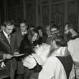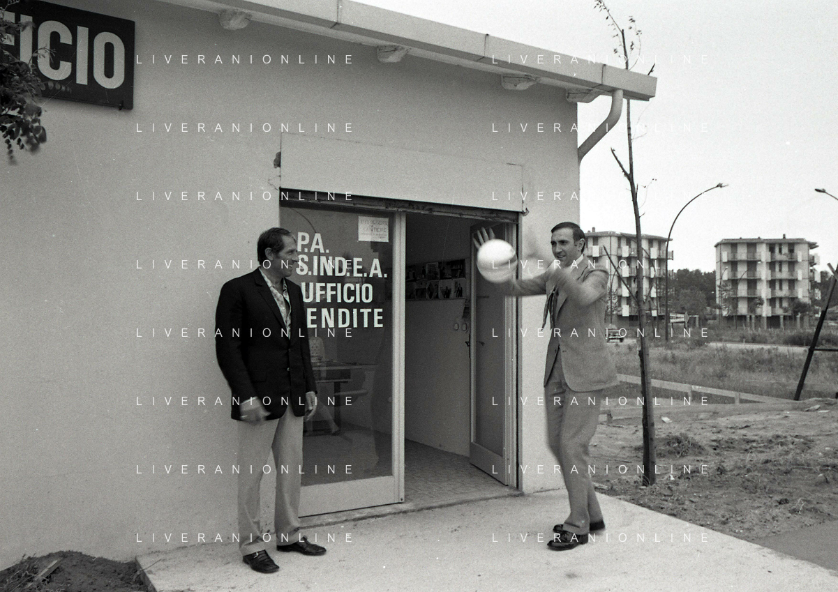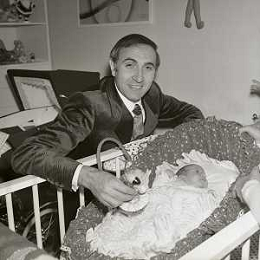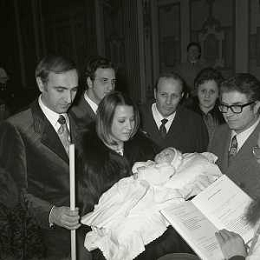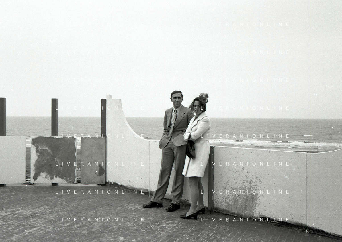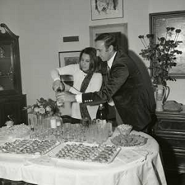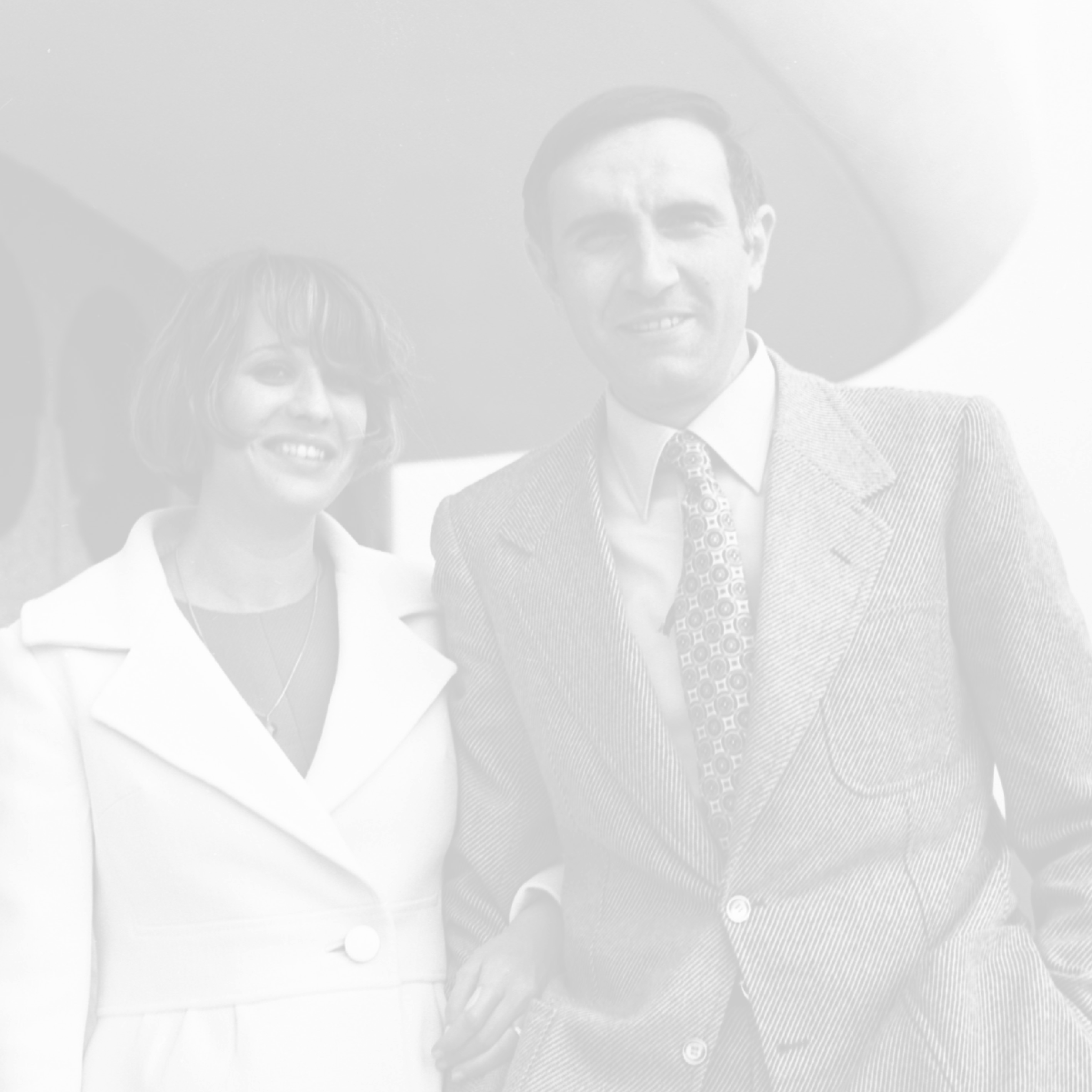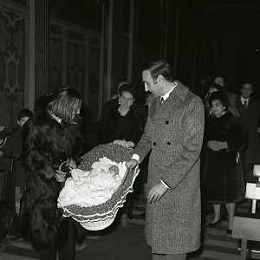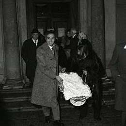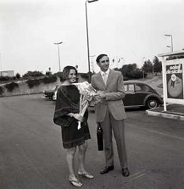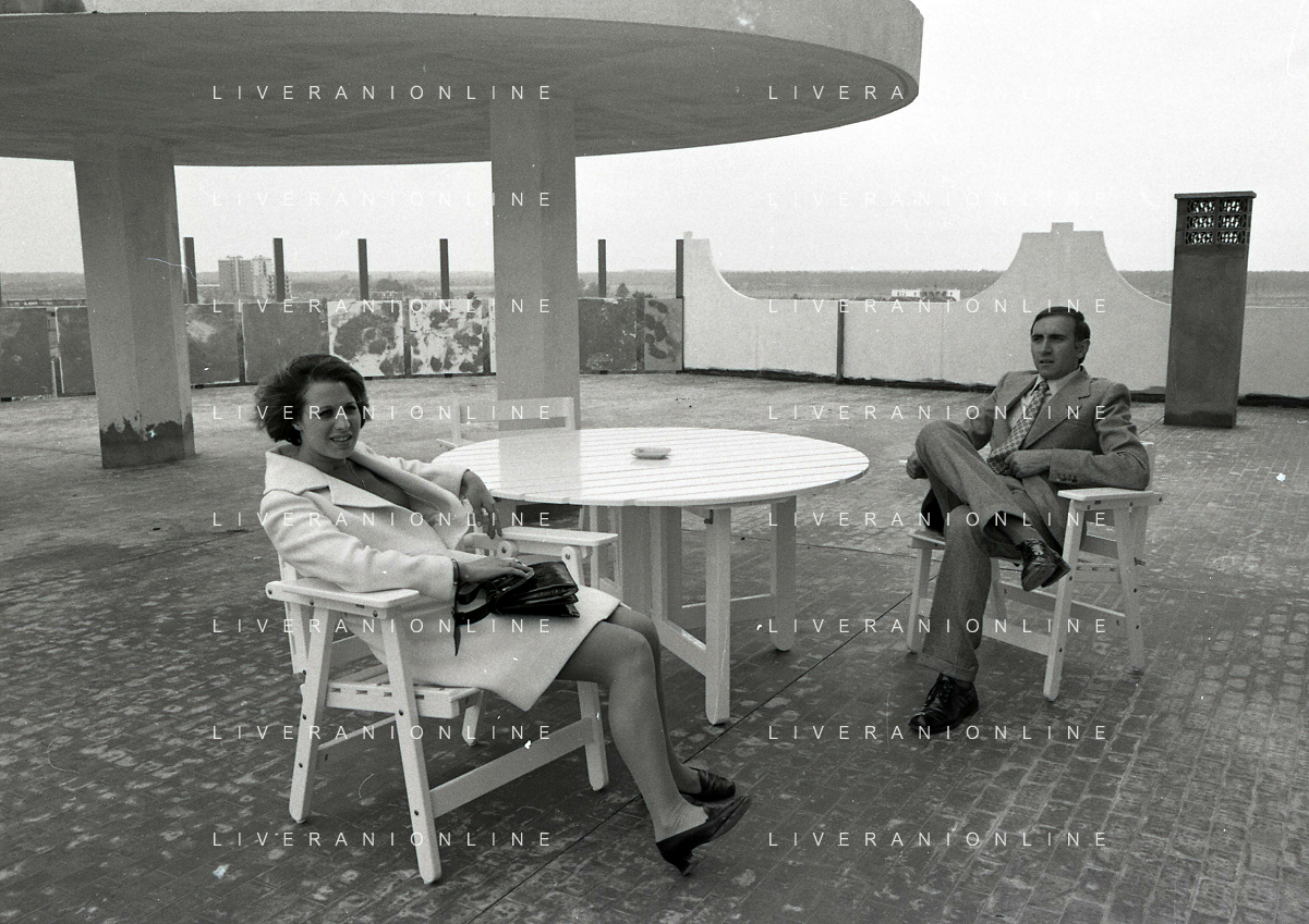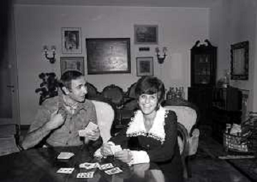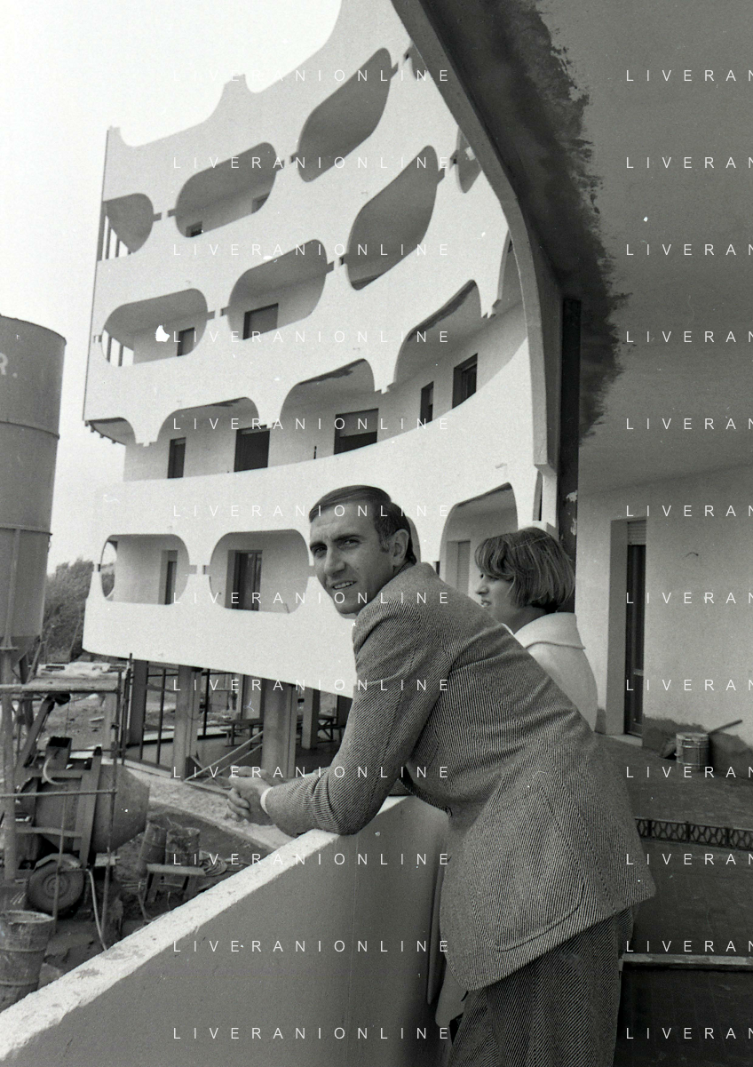 MILANO 1970 RETROSPETTIVA PIPPO BAUDO PRESENTATORE TELEVISIVO NELLA FOTO PIPPO BAUDO CON ANGELA LIPPI IL GIORNO DEL BATTESIMO DELLA FIGLIA TIZIANA AG ALDO LIVERANI SAS