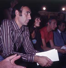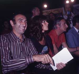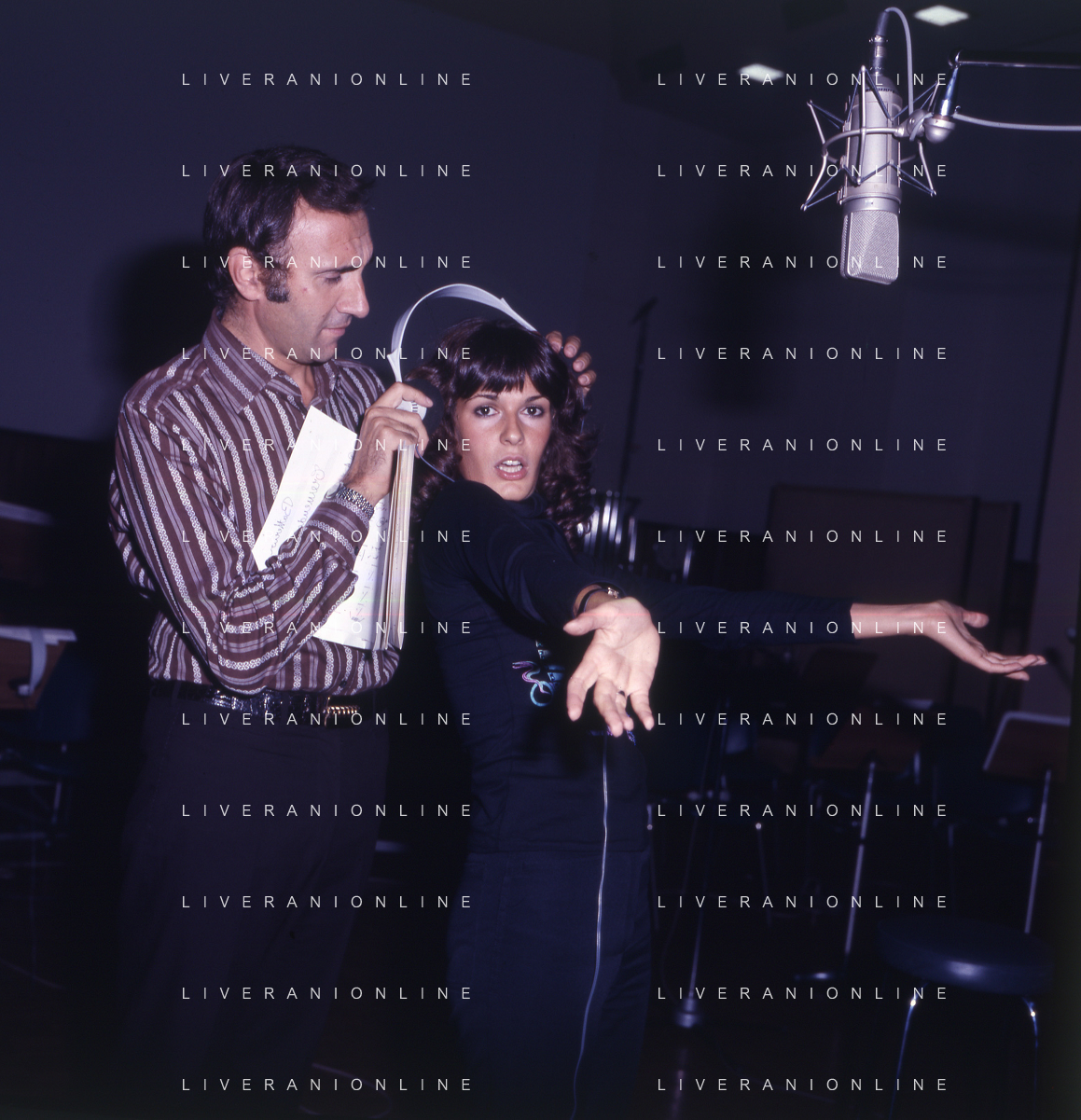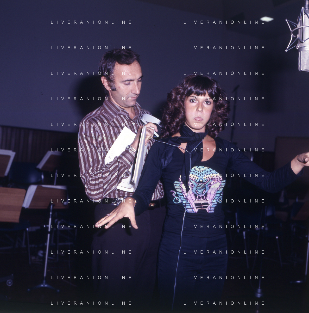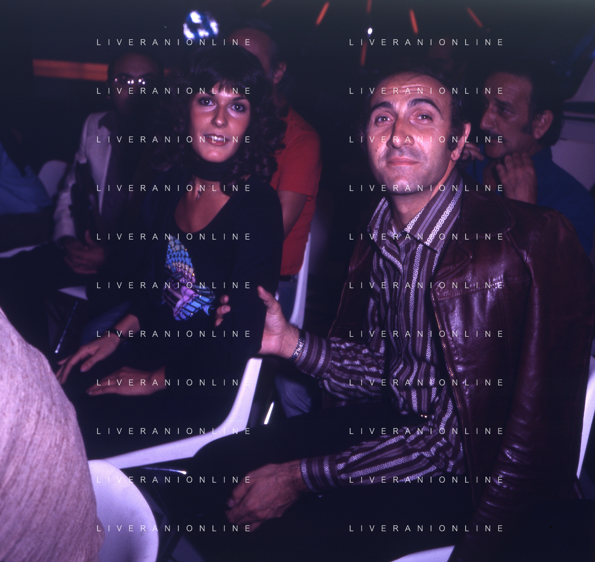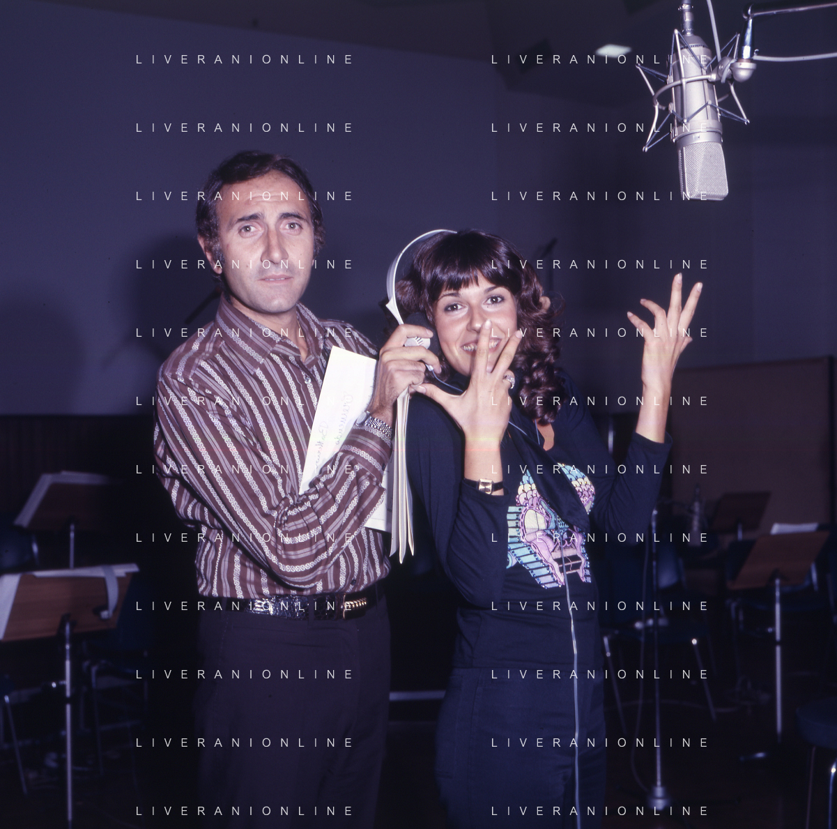 RETROSPETTIVA PIPPO BAUDO PRESENTATORE TELEVISIVO NELLA FOTO PIPPO BAUDO CON MITA MEDICI ALLA PRESENTAZIONE DELLA LOTETRIA ITALIA NELL'ANNO 1973 AG ALDO LIVERANI SAS