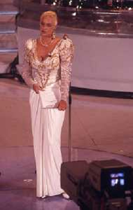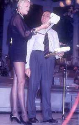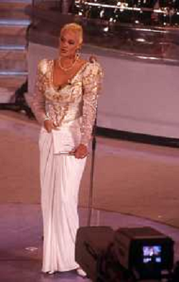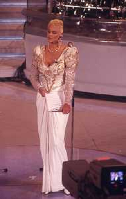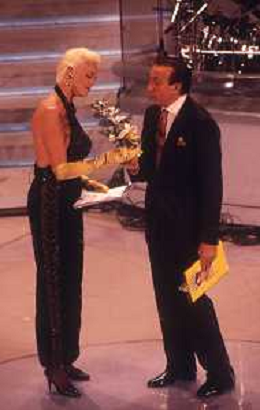 DIAP-RETROSPETTIVA BRIGITTE NIELSEN ATTRICE NELLA FOTO BRIGITTE NIELSEN CON PIPPO BAUDO NELL'ANNO 1992 A SANREMO AG ALDO LIVERANI SAS