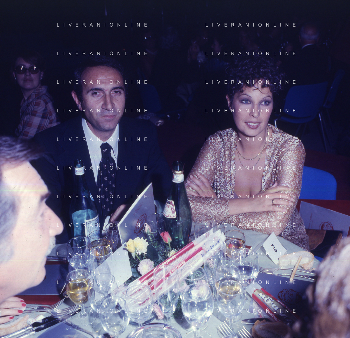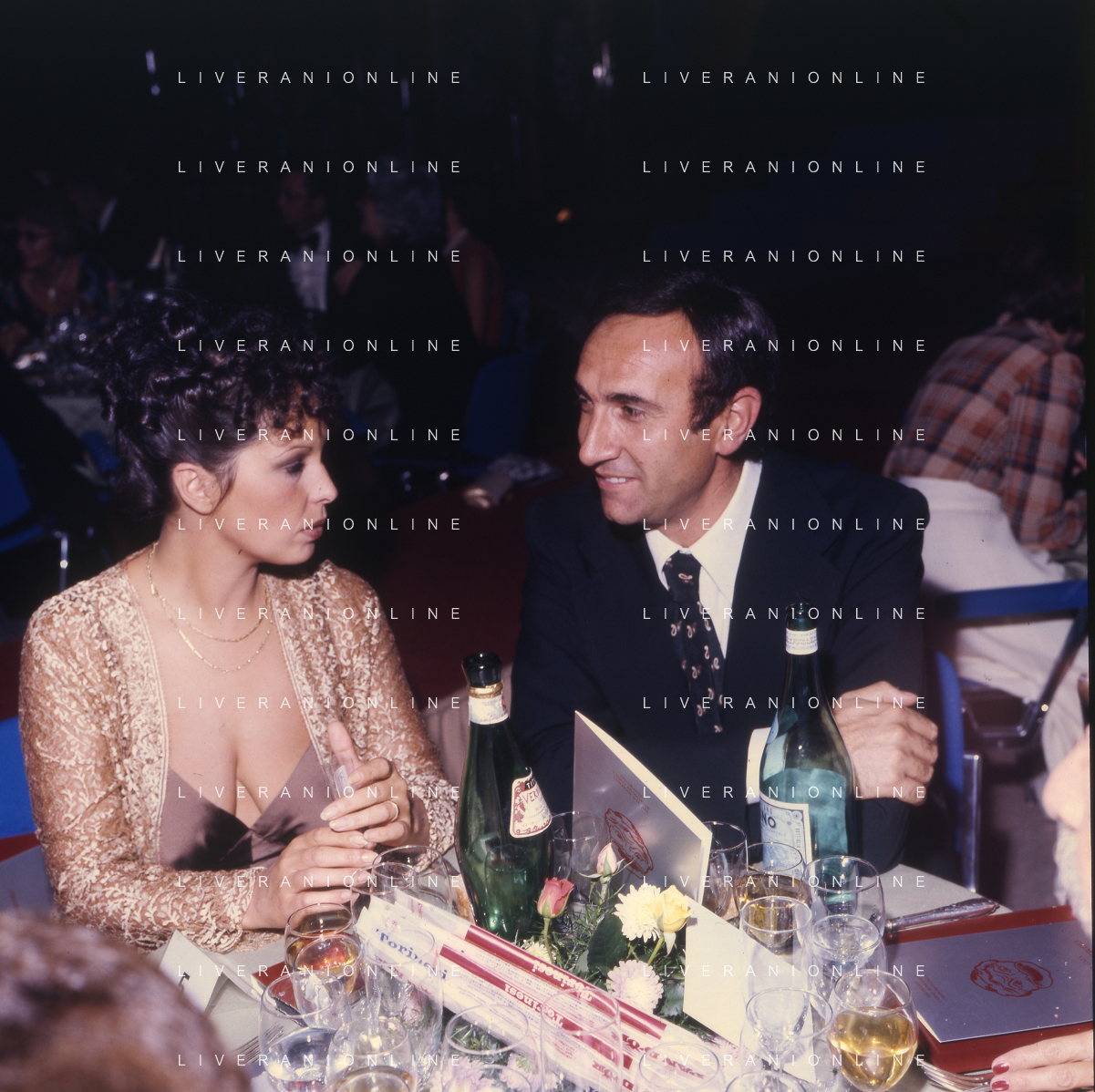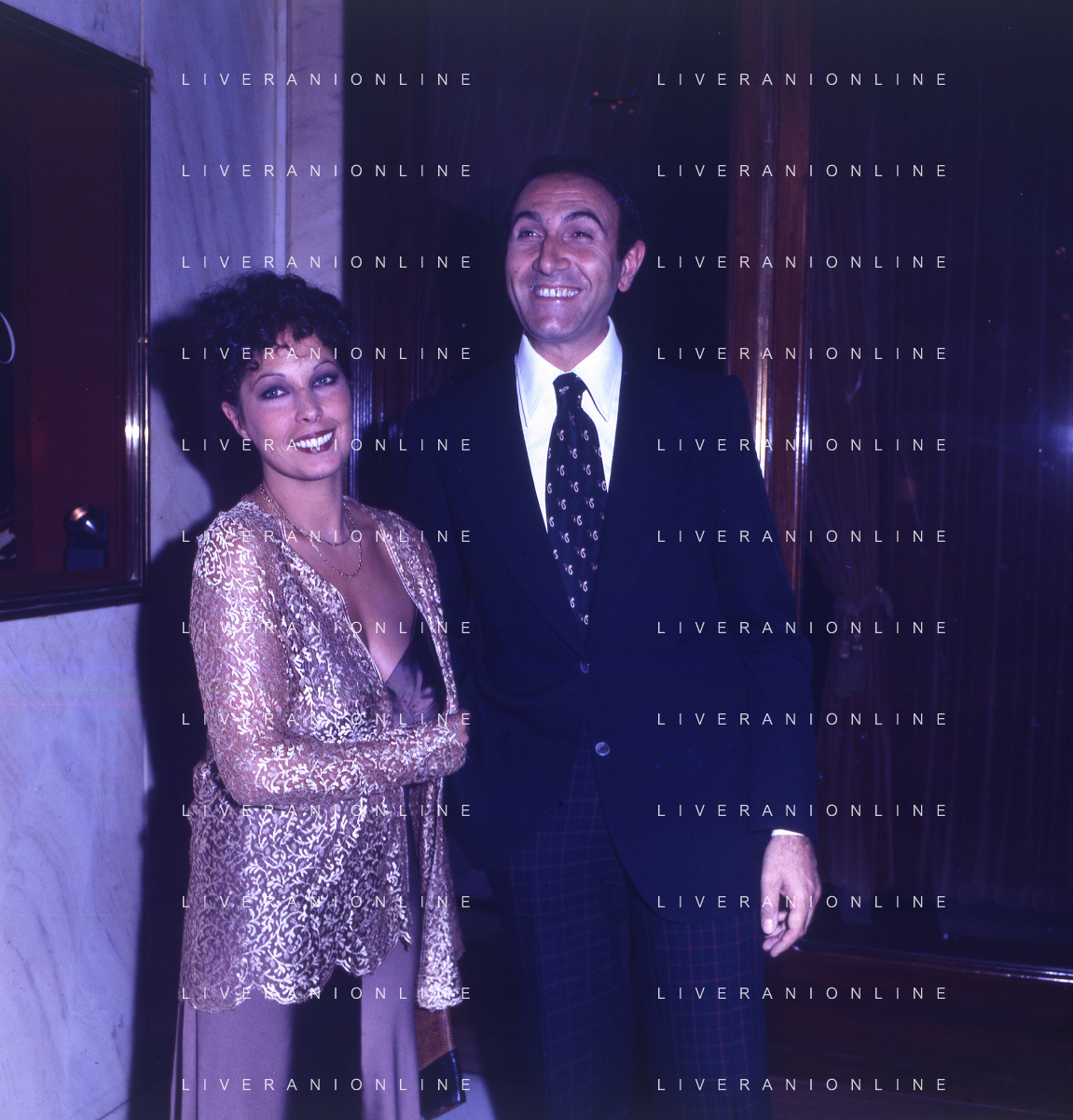 RETROSPETTIVA PIPPO BAUDO PRESENTATORE TELEVISIVO NELLA FOTO PIPPO BAUDO CON MARIA GRAZIA GRASSINI A CAMPIONE D'ITALIA NELL'ANNO 1975 AG ALDO LIVERANI SAS