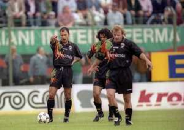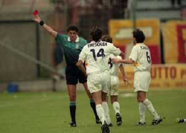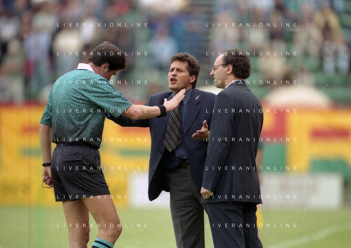 17-05-1998 VENEZIA CAMPIONATO DI CALCIO SERIE B VENEZIA-CASTEL DI SANGRO 3-0 NELLA FOTO ARBITRO ANTONIO CARDELLA DISCUTE CON L'ALLENATORE DEL VENEZIA WALTER NOVELLINO E IL DIRETTORE SPORTIVO GIUSEPPE MAROTTA AG ALDO LIVERANI SAS