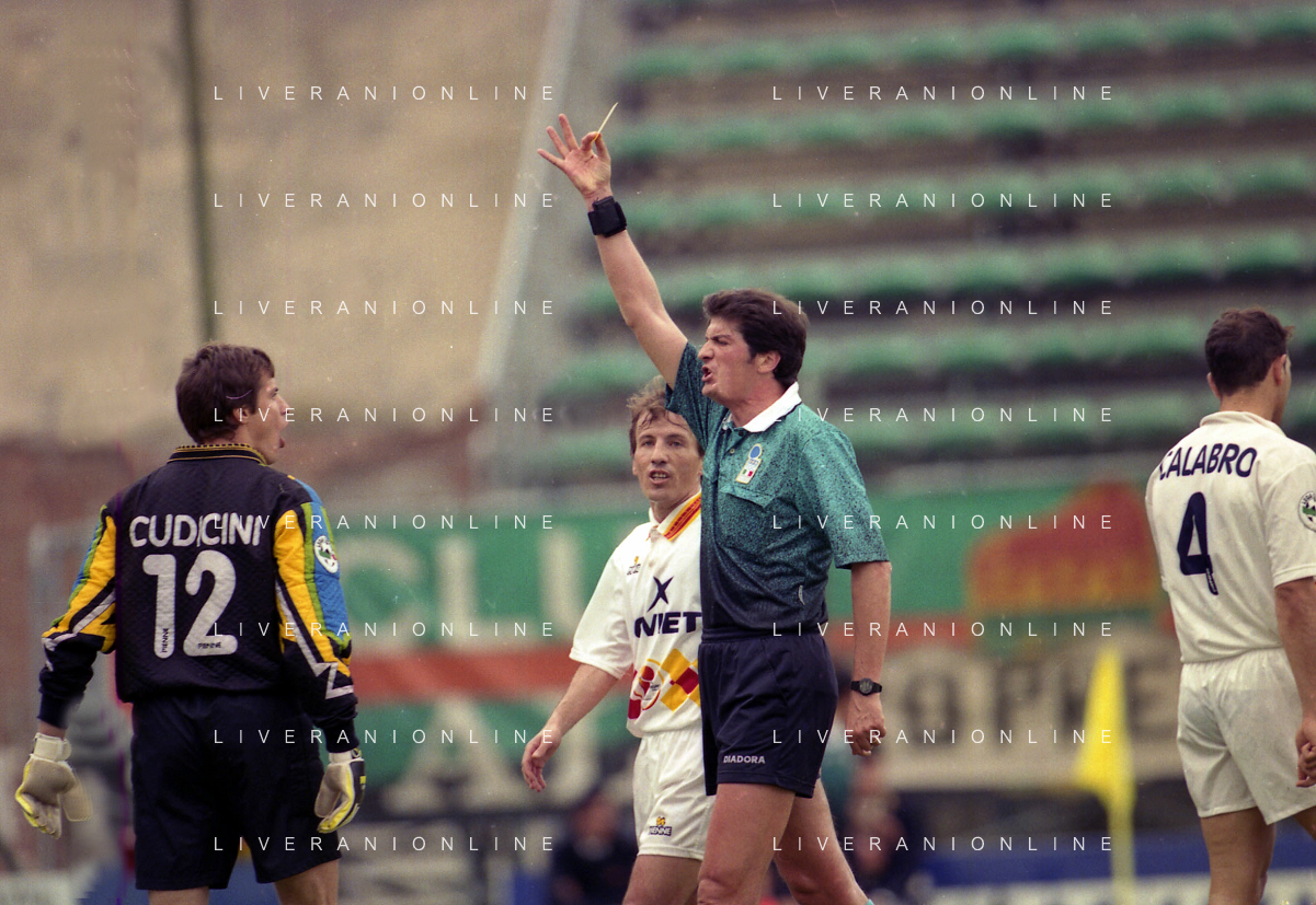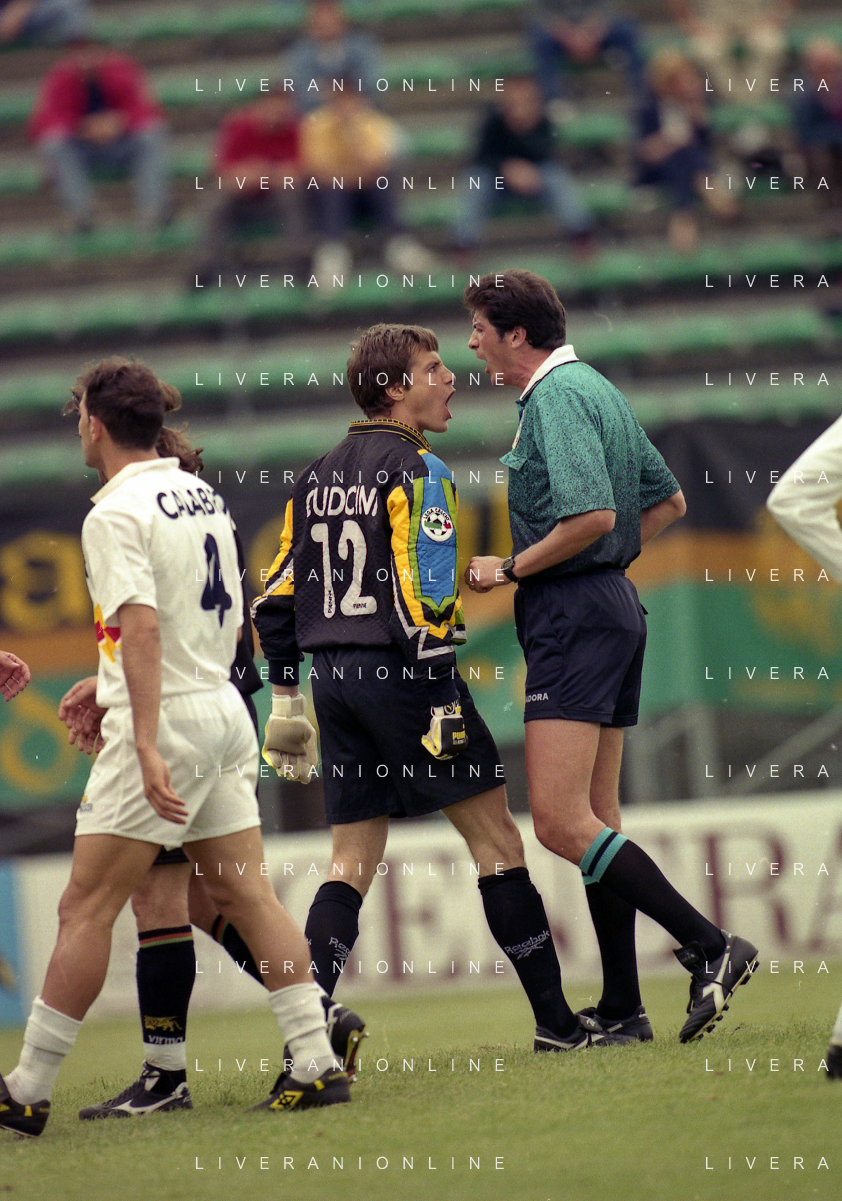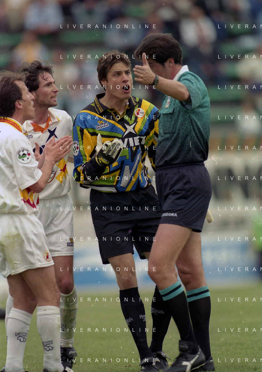 17-05-1998 VENEZIA CAMPIONATO DI CALCIO SERIE B VENEZIA-CASTEL DI SANGRO 3-0 NELLA FOTO ARBITRO ANTONIO CARDELLA DISCUTE CON CARLO CUDICINI AG ALDO LIVERANI SAS