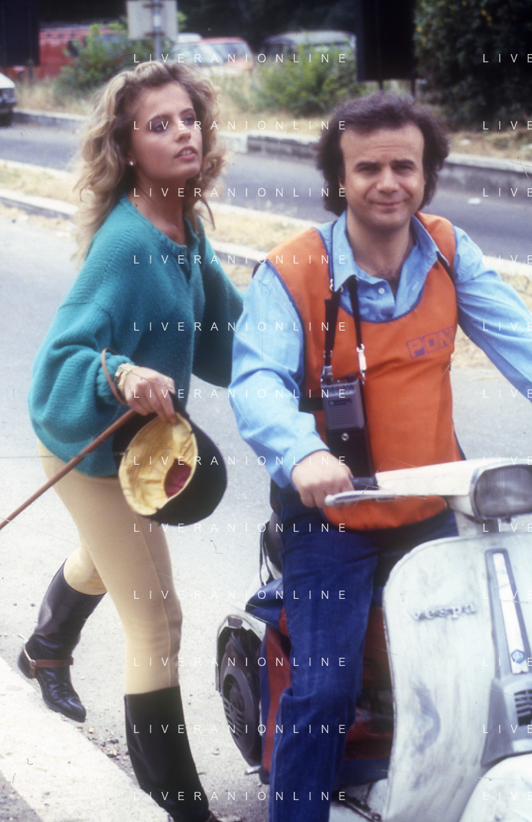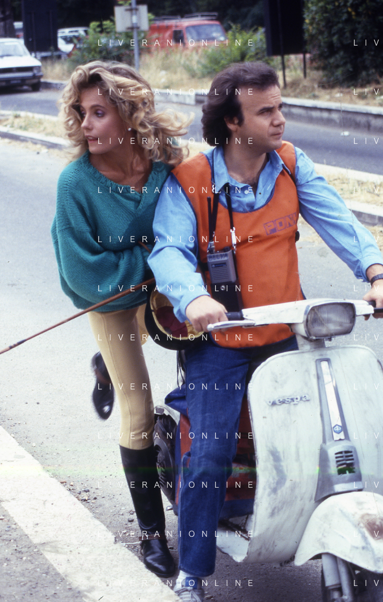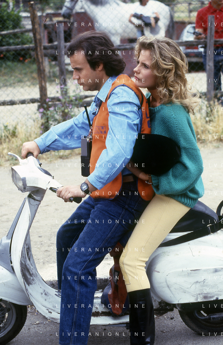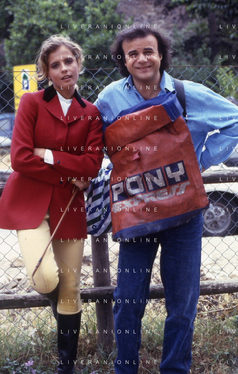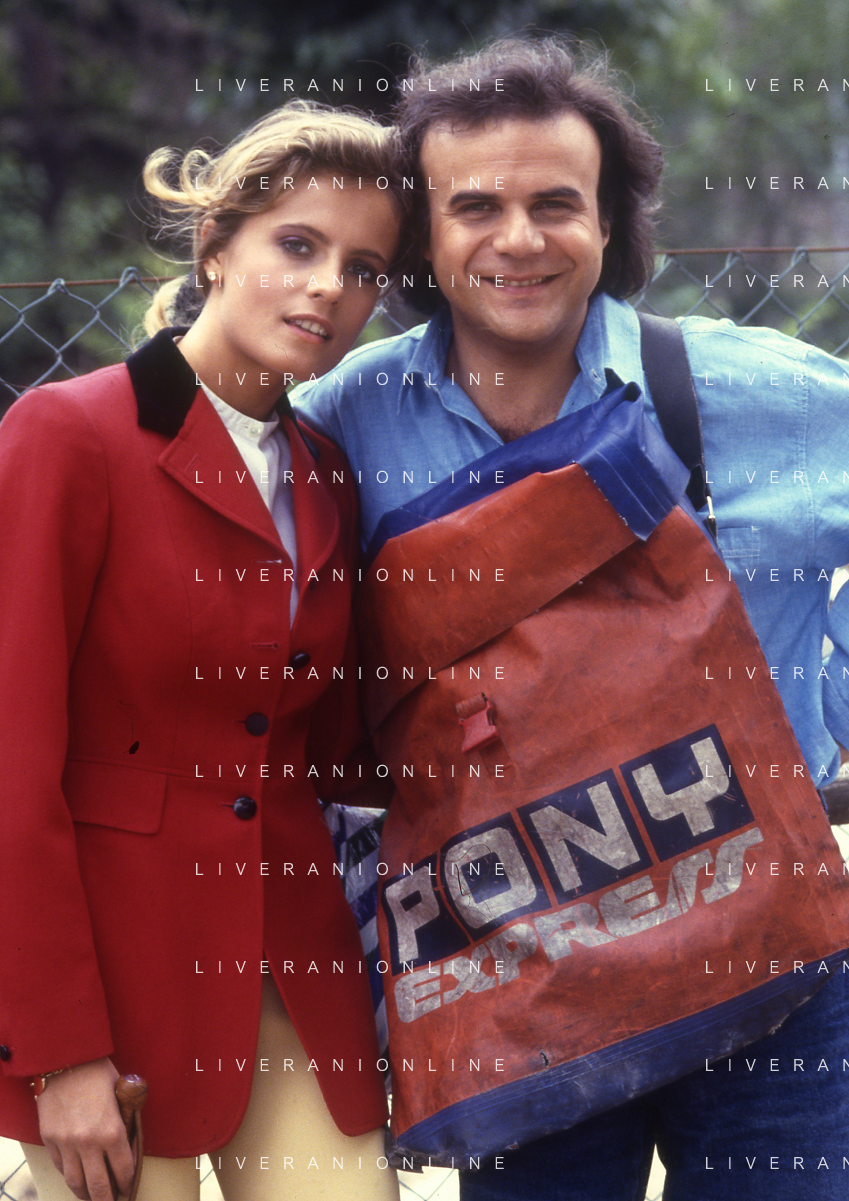 RETROSPETTIVA ISABELLA FERRARI ATTRICE NELLA FOTO ISABELLA FERRARI CON JERRY CALA' NELL'ANNO 1985 SET DEL FILM “IL RAGAZZO DEL PONY EXPRESS“ AG ALDO LIVERANI SAS