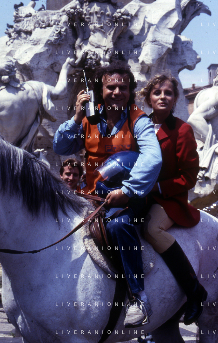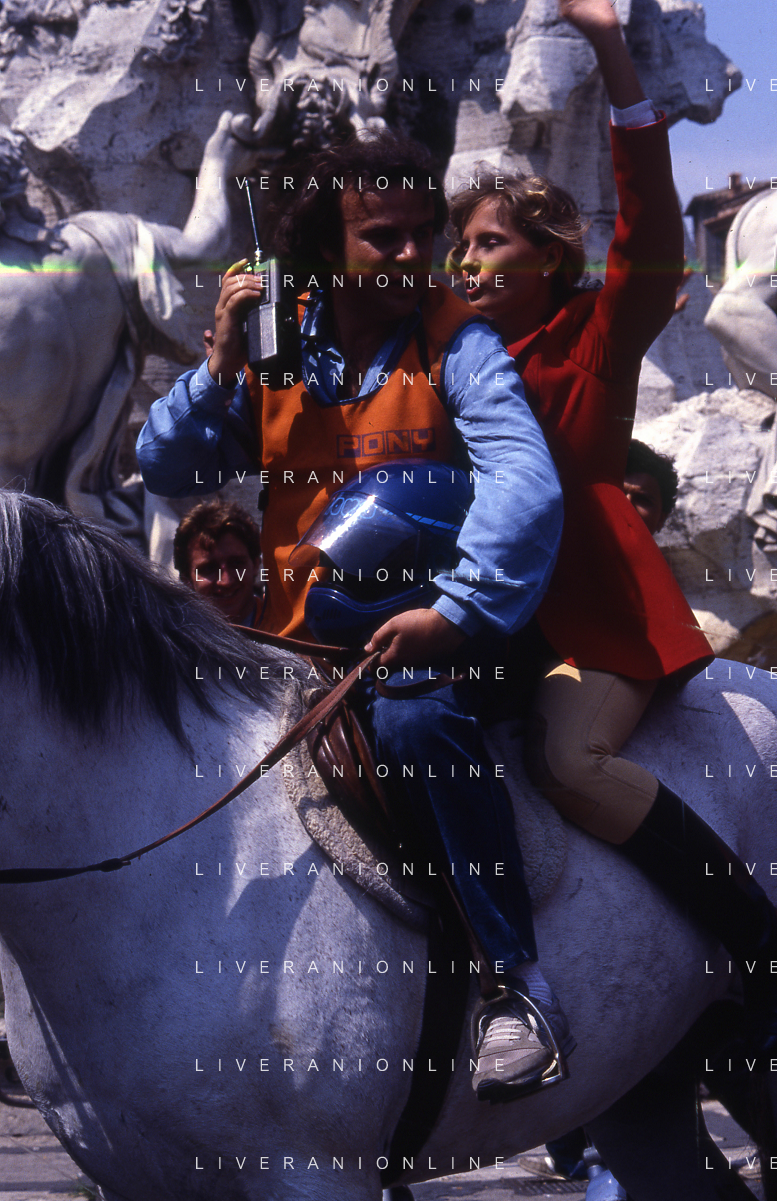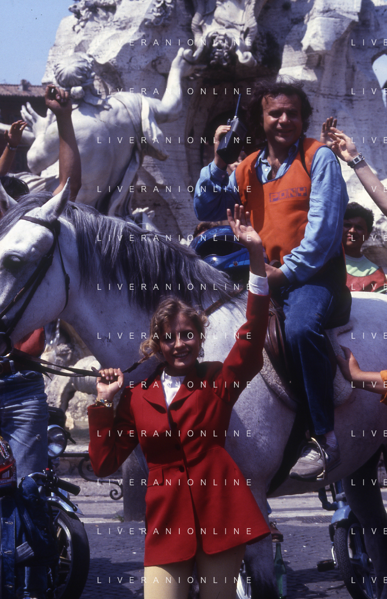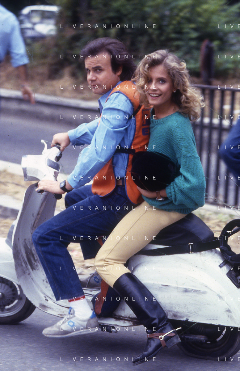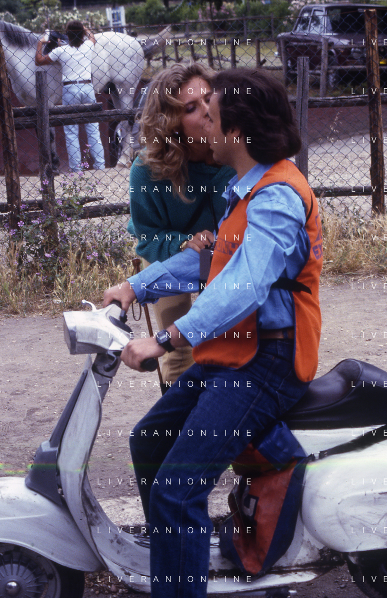 RETROSPETTIVA ISABELLA FERRARI ATTRICE NELLA FOTO ISABELLA FERRARI CON JERRY CALA' NELL'ANNO 1985 SET DEL FILM “IL RAGAZZO DEL PONY EXPRESS“ AG ALDO LIVERANI SAS