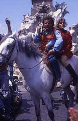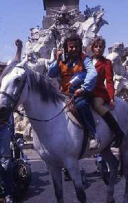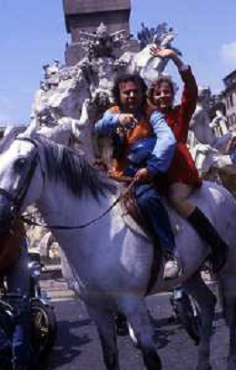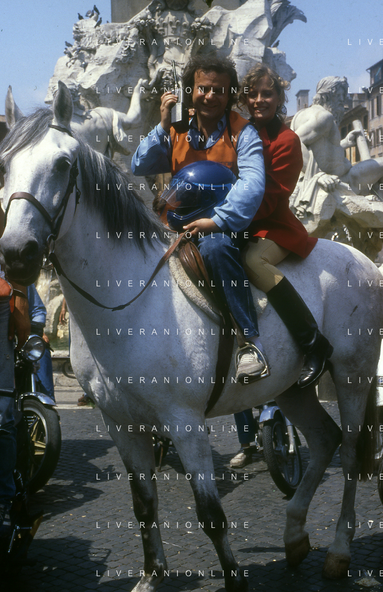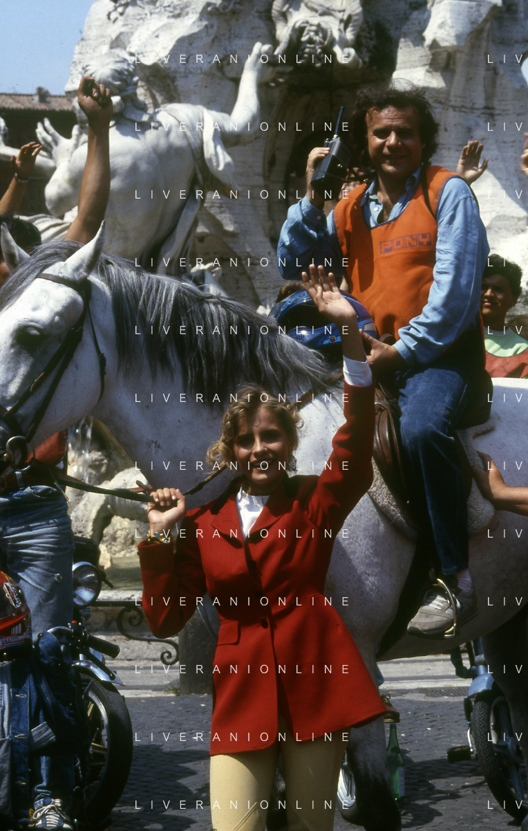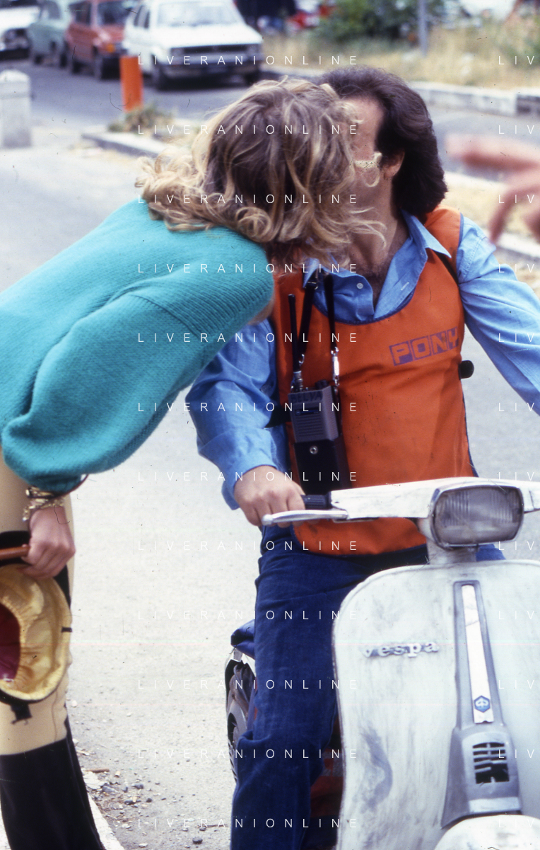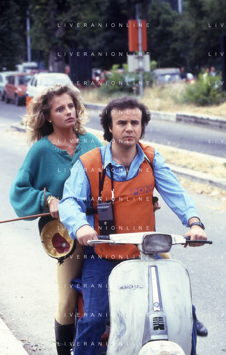 RETROSPETTIVA ISABELLA FERRARI ATTRICE NELLA FOTO ISABELLA FERRARI CON JERRY CALA' NELL'ANNO 1985 SET DEL FILM “IL RAGAZZO DEL PONY EXPRESS“ AG ALDO LIVERANI SAS