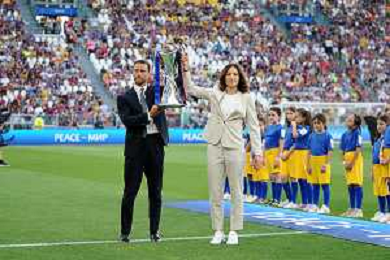 TVMV-Torino 21.05.2022 Allianz Stadium ©Manuela Viganti/Agenzia Aldo Liverani Barcellona vs Lione Uefa Women's Champions League Final 2022 Nella foto : claudio marchisio e ilaria mauro ©VIGANTI/AGENZIA ALDO LIVERANI SAS