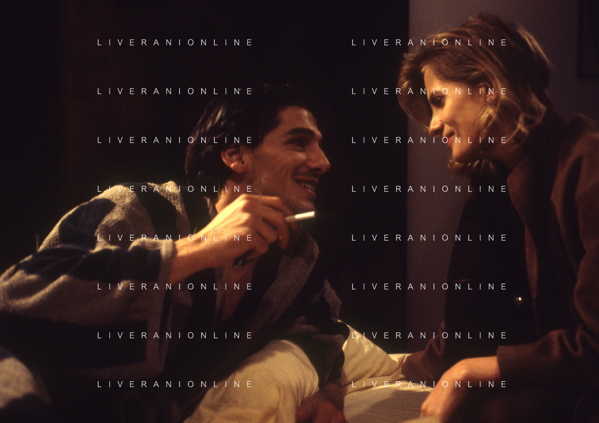 RETROSPETTIVA ISABELLA FERRARI ATTRICE NELLA FOTO ISABELLA FERRARI NELL'ANNO 1993 SUL SET DEL FILM “80 METRI QUADRI “ CON STEFANO DIONISI AG ALDO LIVERANI SAS