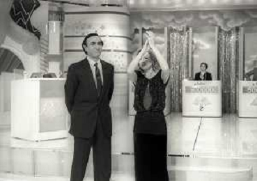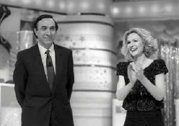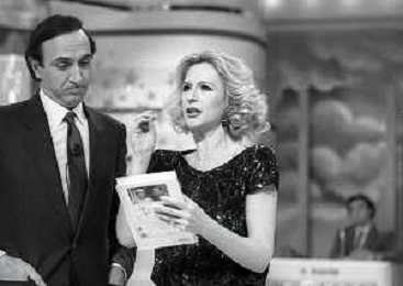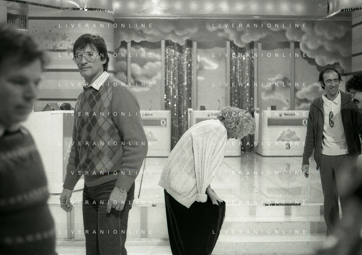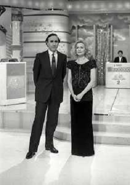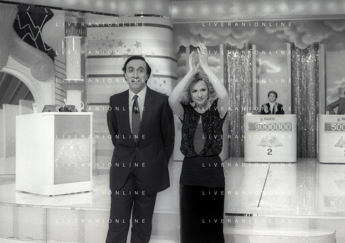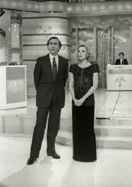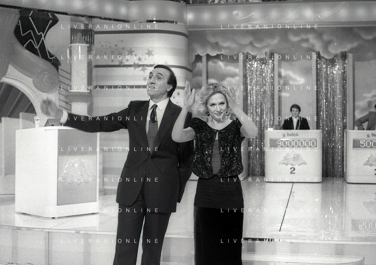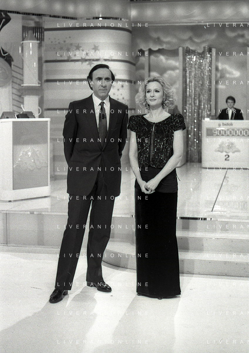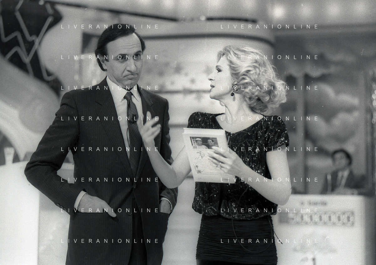 RETROSPETTIVA PIPPO BAUDO PRESENTATORE TELEVISIVO NELLA FOTO GIANNI BREZZA CON LORETTA GOGGI NELLA TRASMISSIONE TELEVISIVA “FANTASTICO“ AG ALDO LIVERANI SAS