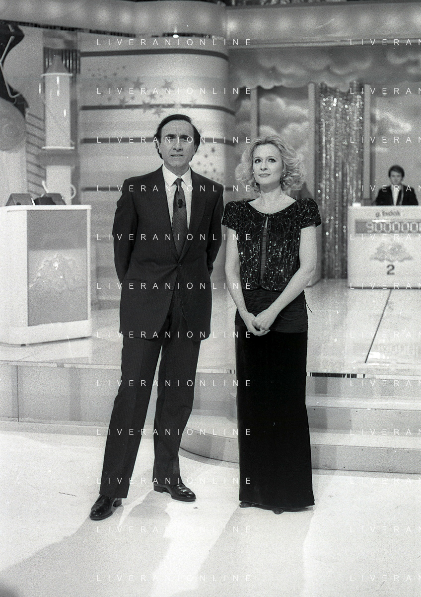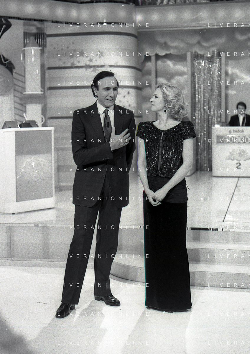 RETROSPETTIVA PIPPO BAUDO PRESENTATORE TELEVISIVO NELLA FOTO PIPPO BAUDO CON LORETTA GOGGI NELLA TRASMISSIONE TELEVISIVA “FANTASTICO“ AG ALDO LIVERANI SAS