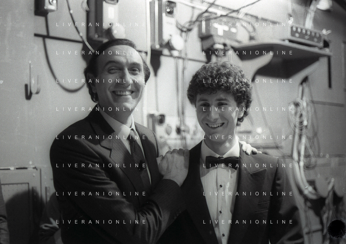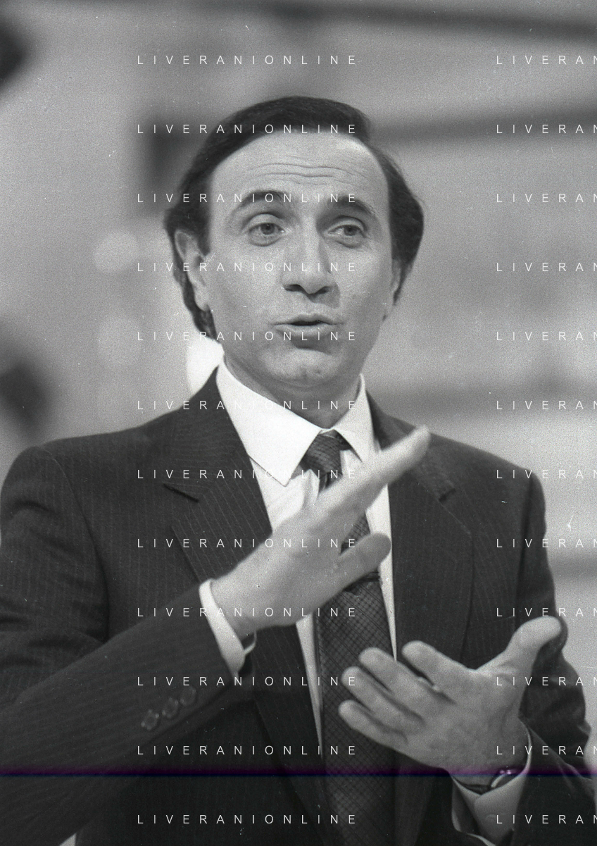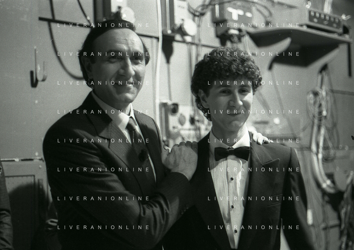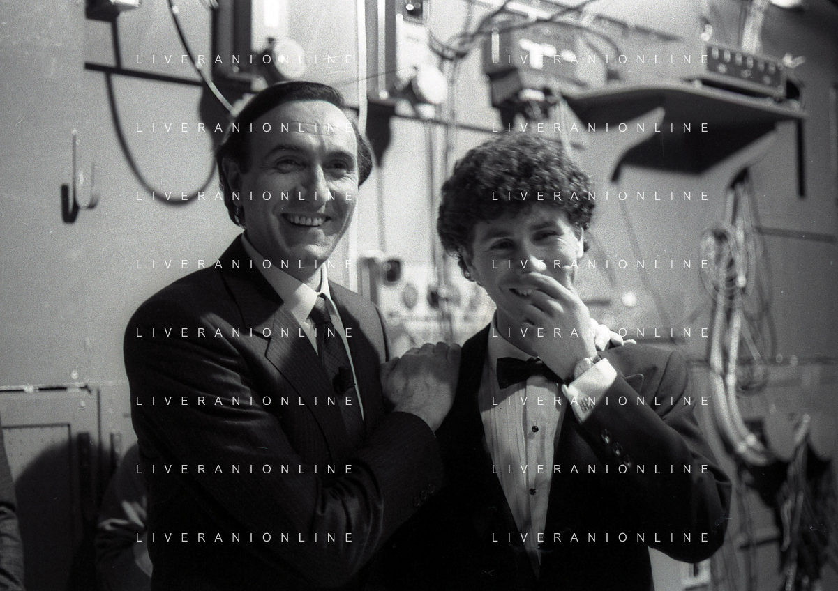 RETROSPETTIVA PIPPO BAUDO PRESENTATORE TELEVISIVO NELLA FOTO PIPPO BAUDO CON FABIO FAZIO NELLA TRASMISSIONE TELEVISIVA “FANTASTICO“ AG ALDO LIVERANI SAS