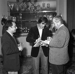 RETROSPETTIVA ROBERTO VECCHIONI CANTANTE NELLA FOTO ROBERTO VECCHIONI NELL'ANNO 1975 A TERRAZZA MARTINI CON LA MOGLIE IRENE BOZZI A MILANO AG ALDO LIVERANI SAS