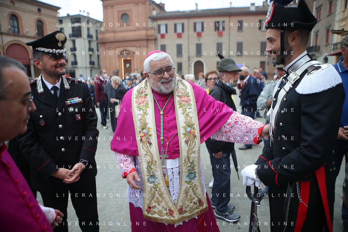 IMOLA 29 05 2022 MADONNA DEL PIRATELLO RITORNO ALLA CHIESA DI PIRATELLO VESCOVO GIOVANNI MOSCIATTI MAGGIORE DEI CARABINIERI ANDREA OXILIA E CARABINIERE IN GRAN UNIFORME FOTO GIANNI SANNA-AG ALDO LIVERANI SAS