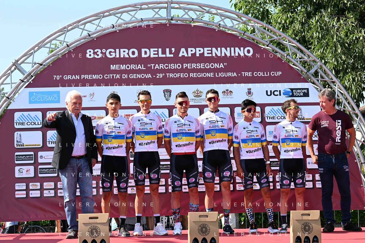 02-06-2022 Giro Dell' Appennino; 2022, Drone Hopper - Androni; 2022, Intermarche - Wanty Gobert; 2022, Israel - Premier Tech; Tesfatsion, Natael; Zimmermann, Georg; Clarke, Simon; Genova; ©SIROTTI/AGENZIA ALDO LIVERANI SAS