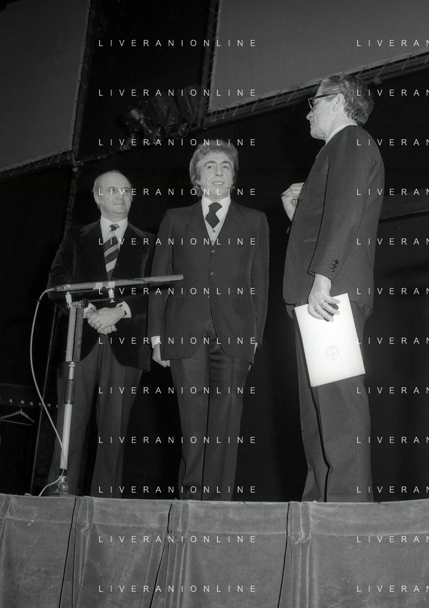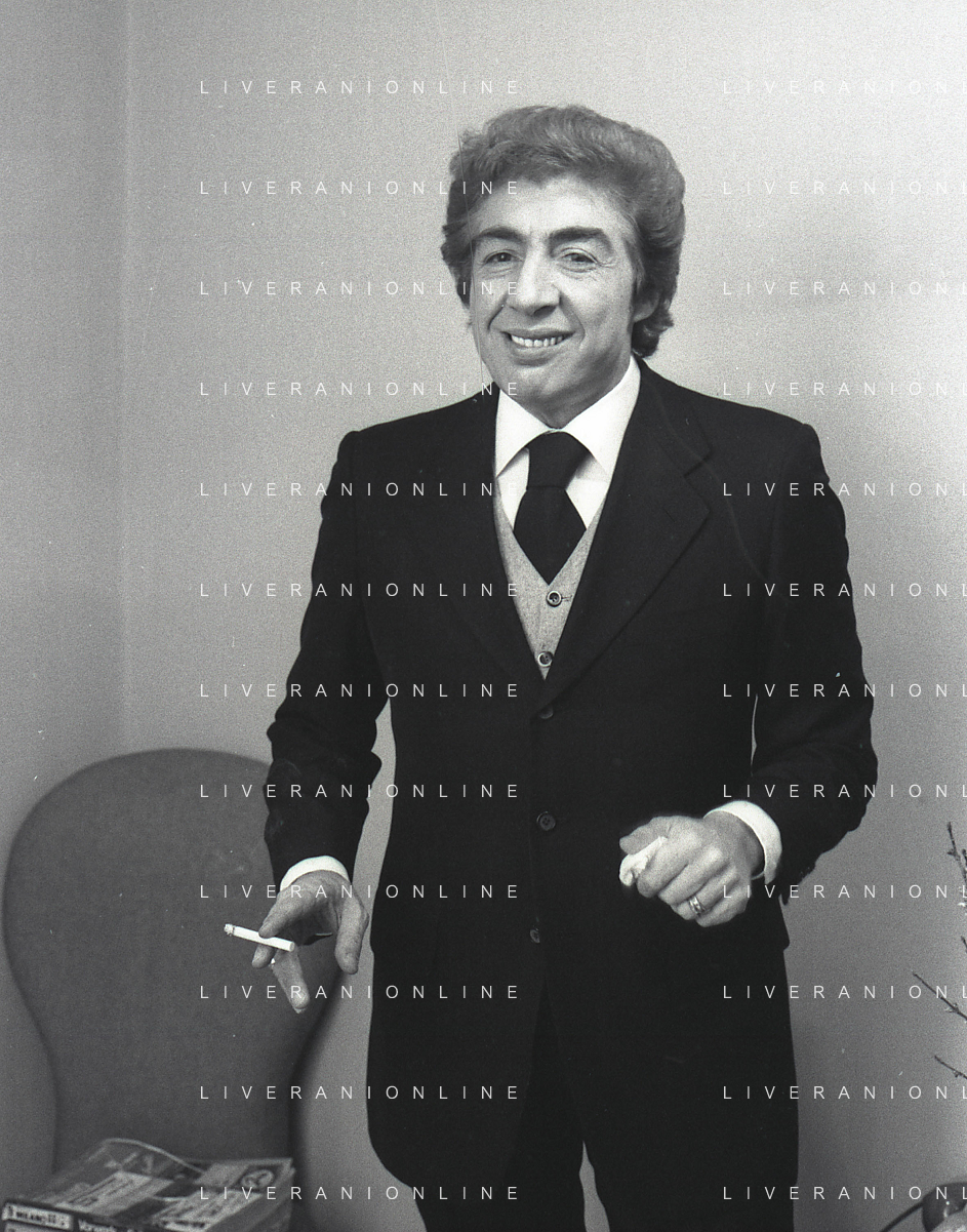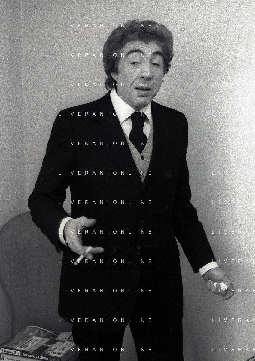 RETROSPETTIVA GINO BRAMIERI COMICO-CABARETTISTA-ATTORE-UMORISTA CONDUTTORE TELEVISIVO NELLA FOTO GINO BRAMIERI A MILANO NELL'ANNO 1975 AG ALDO LIVERANI SAS