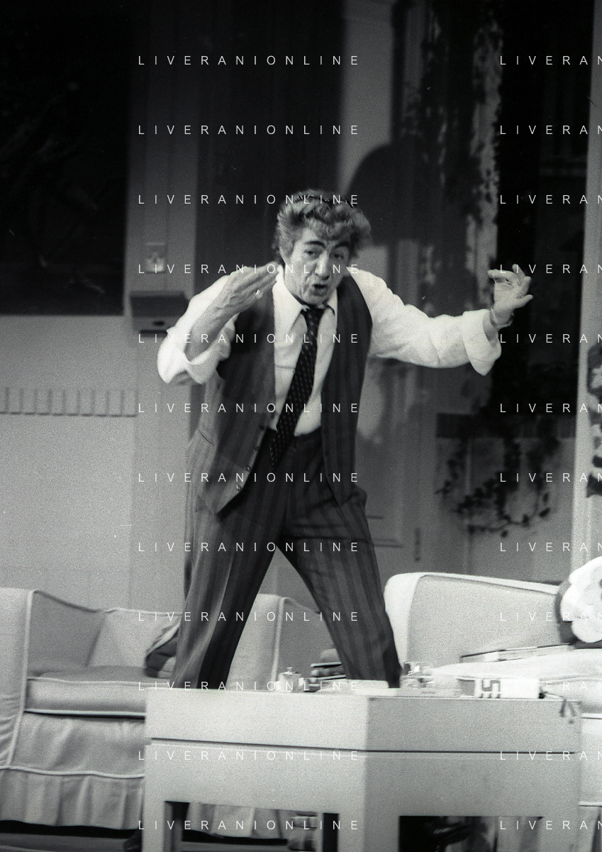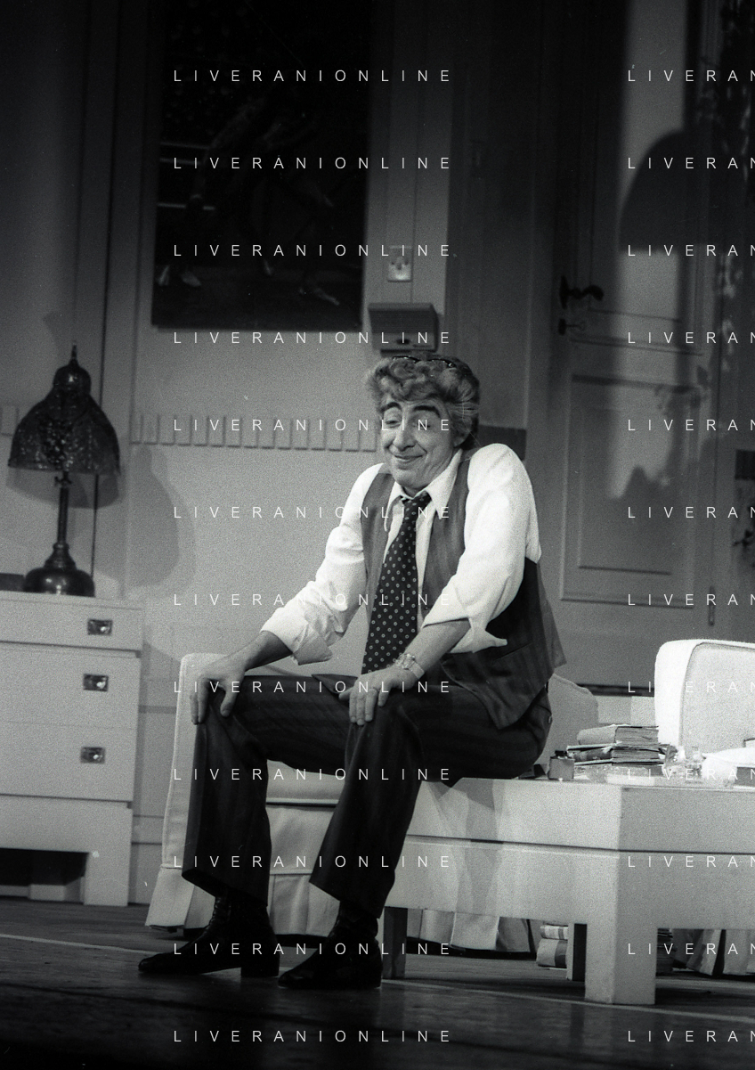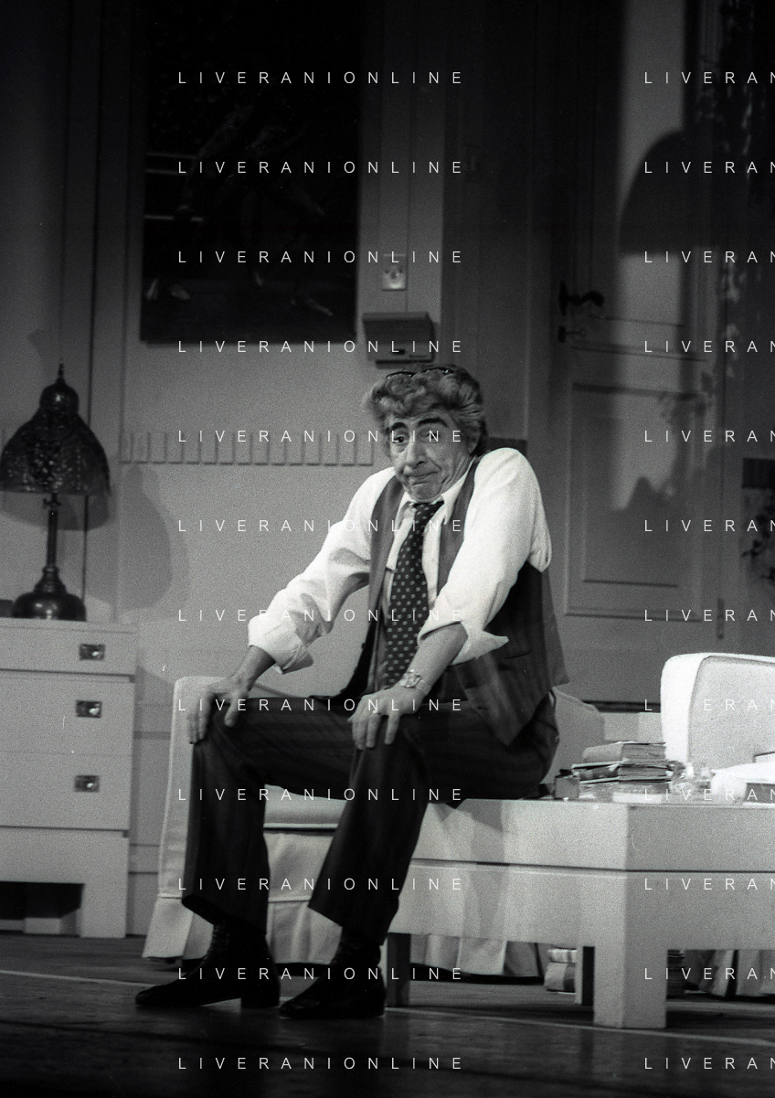 RETROSPETTIVA GINO BRAMIERI COMICO-CABARETTISTA-ATTORE-UMORISTA CONDUTTORE TELEVISIVO NELLA FOTO GINO BRAMIERI A MILANO NELL'ANNO 1979 NELLA COMMEDIA TEATRALE“POVERA ITALIA“ AG ALDO LIVERANI SAS