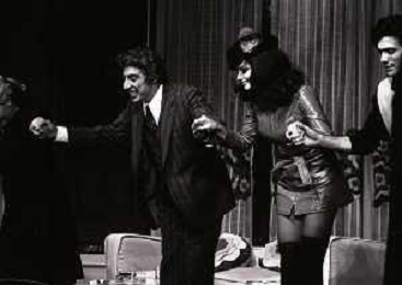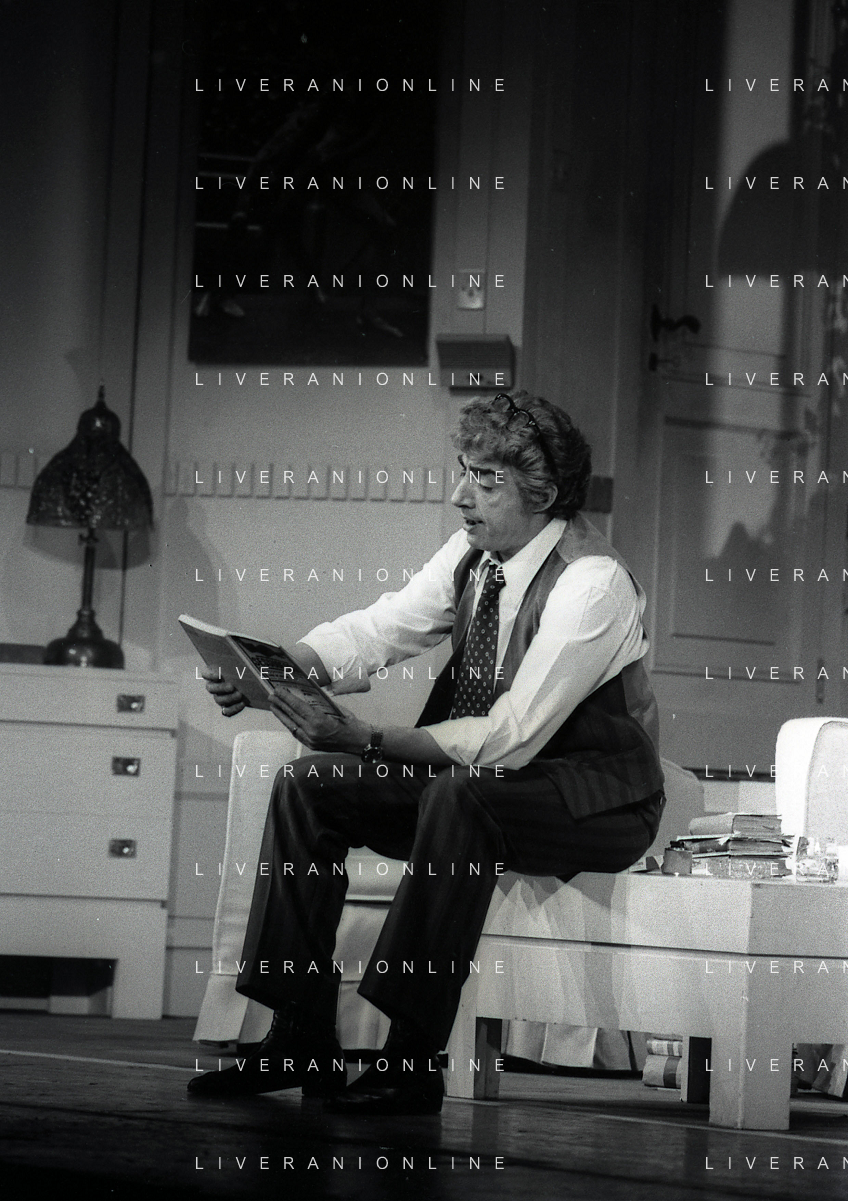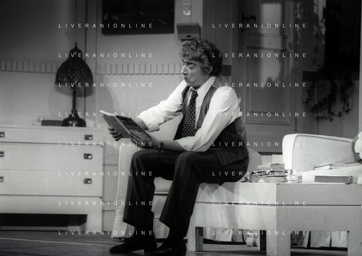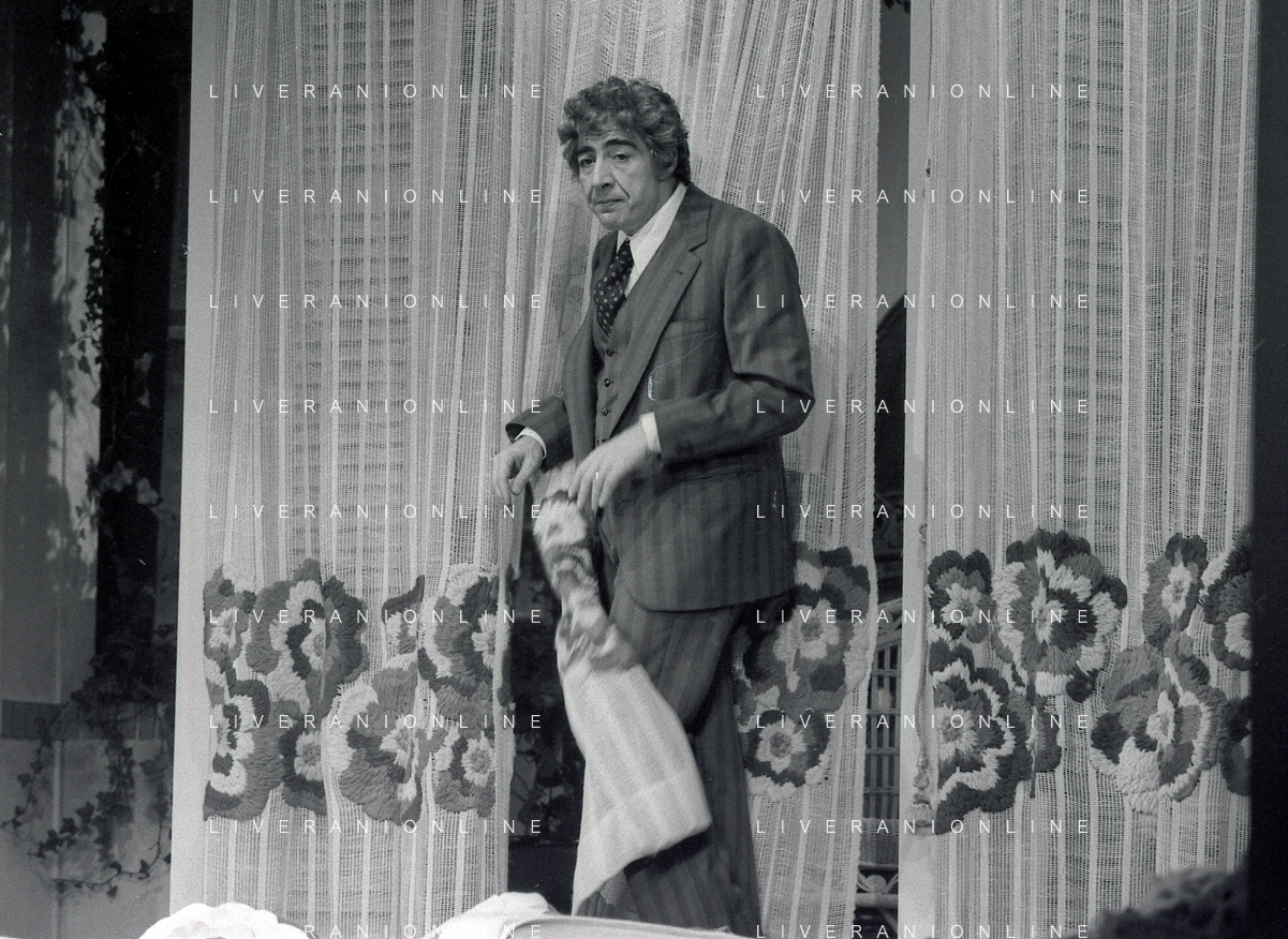 RETROSPETTIVA GINO BRAMIERI COMICO-CABARETTISTA-ATTORE-UMORISTA CONDUTTORE TELEVISIVO NELLA FOTO GINO BRAMIERI A MILANO NELL'ANNO 1979 NELLA COMMEDIA TEATRALE“POVERA ITALIA“ AG ALDO LIVERANI SAS