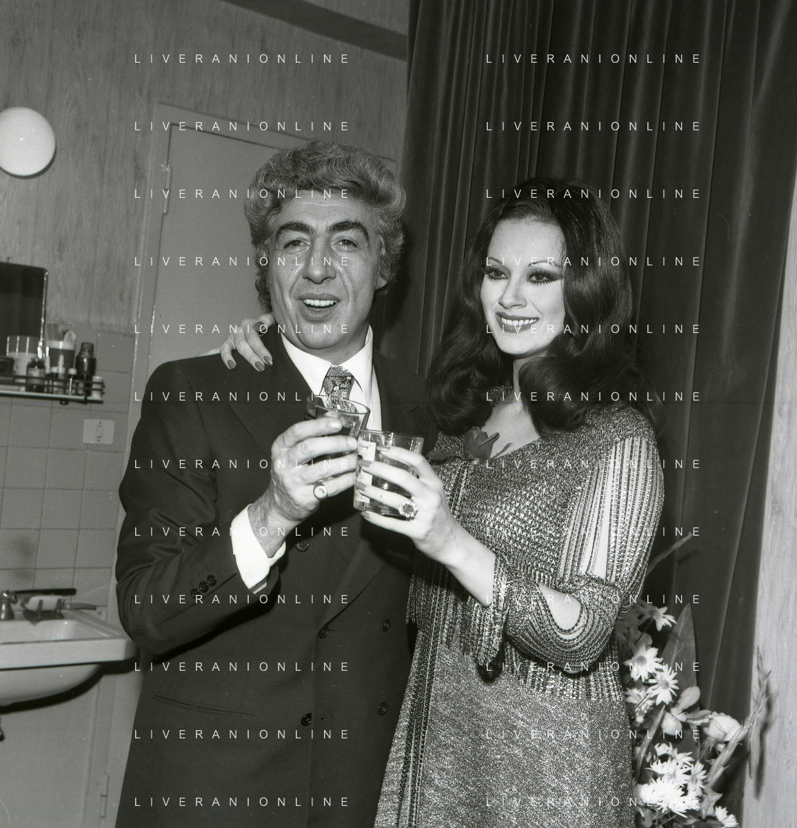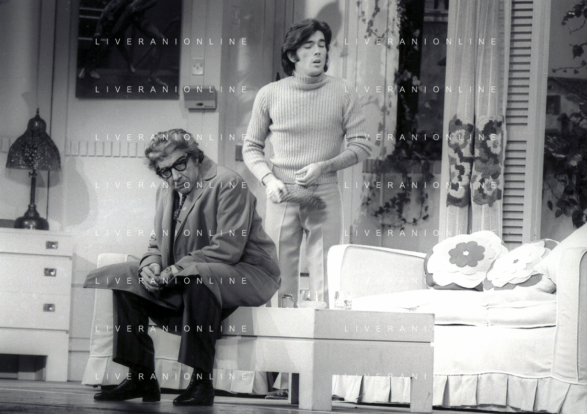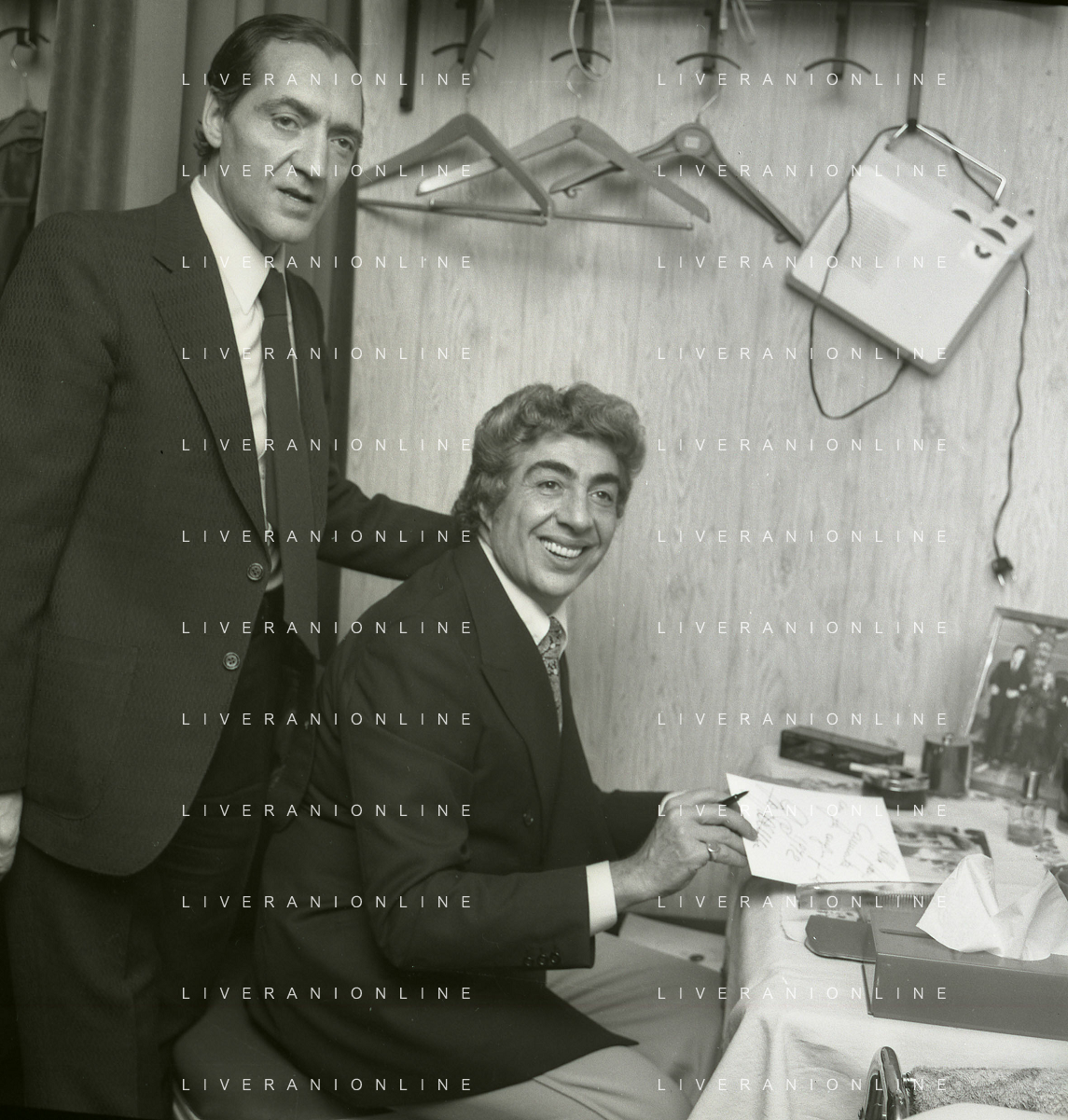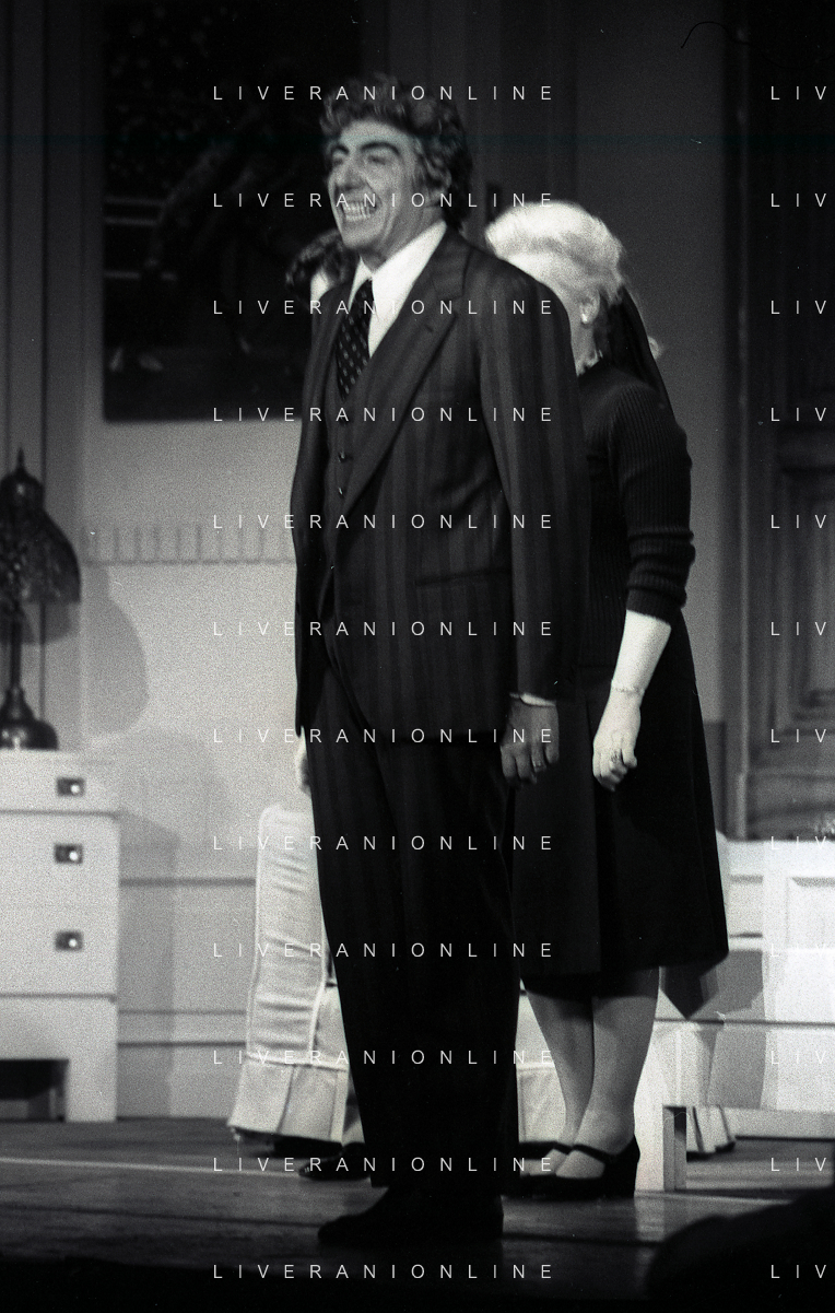 RETROSPETTIVA GINO BRAMIERI COMICO-CABARETTISTA-ATTORE-UMORISTA CONDUTTORE TELEVISIVO NELLA FOTO GINO BRAMIERI CON GIANNA SERRA A MILANO NELL'ANNO 1979 NELLA COMMEDIA TEATRALE“POVERA ITALIA“ AG ALDO LIVERANI SAS