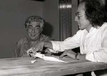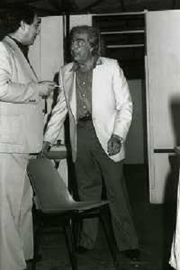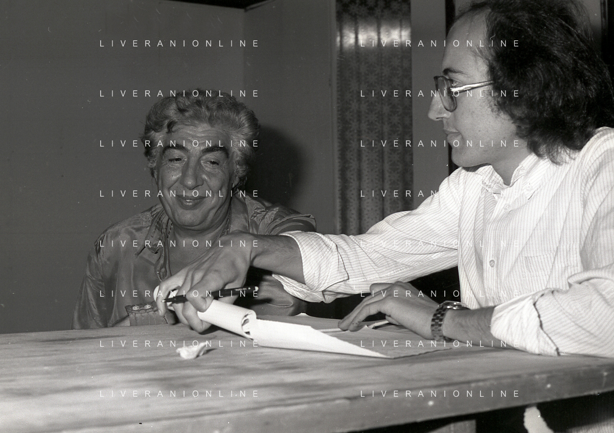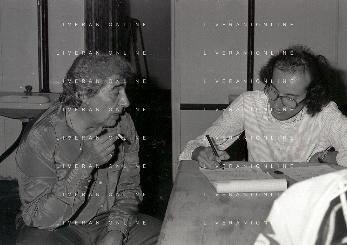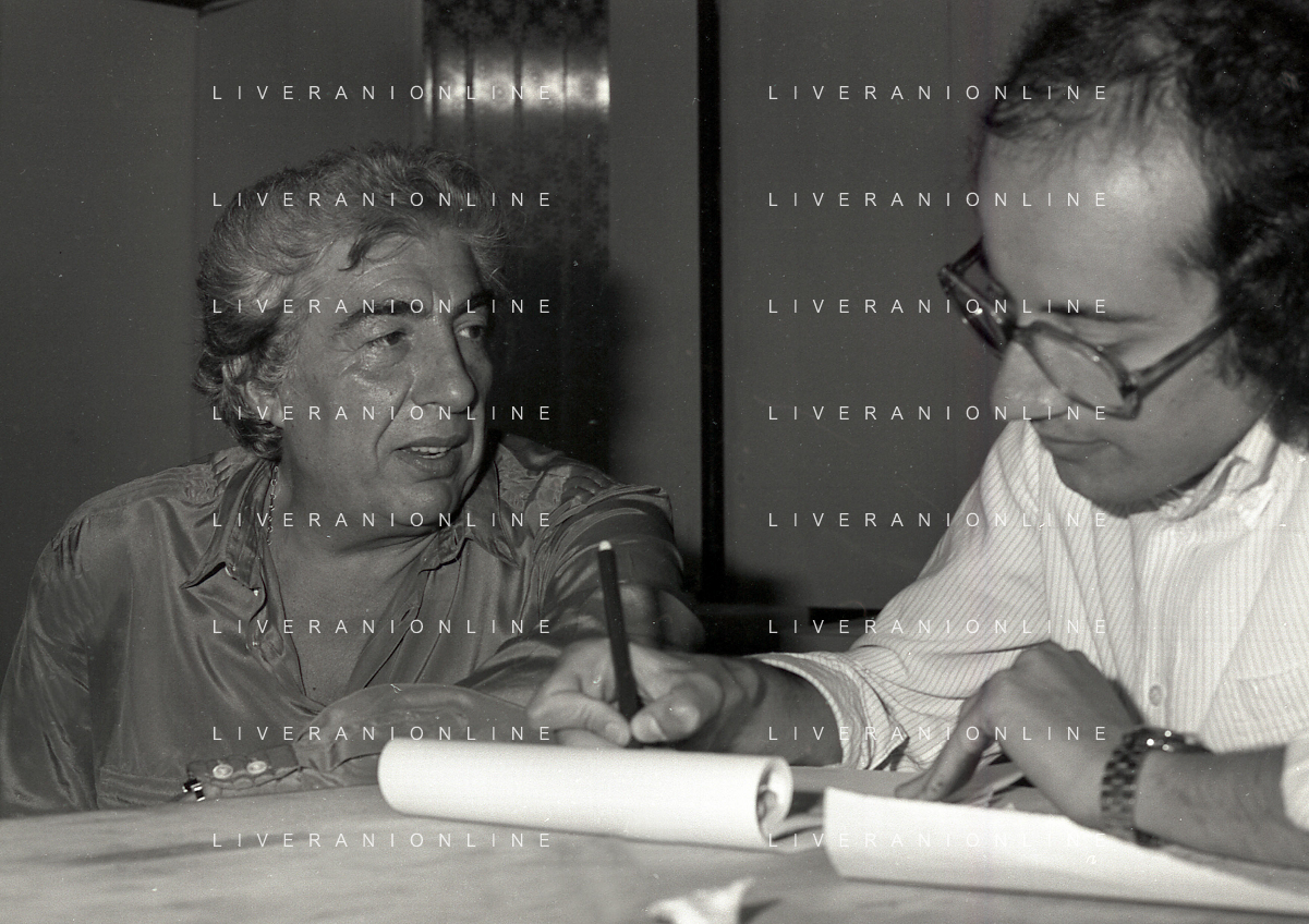 RETROSPETTIVA GINO BRAMIERI COMICO-CABARETTISTA-ATTORE-UMORISTA CONDUTTORE TELEVISIVO NELLA FOTO GINO BRAMIERICON L'ASSESSORE PARIDE ACCETTI A MILANO NELL'ANNO 1980 NELLO SPETTACOLO AL CASTELLO SFORZESCO AG ALDO LIVERANI SAS