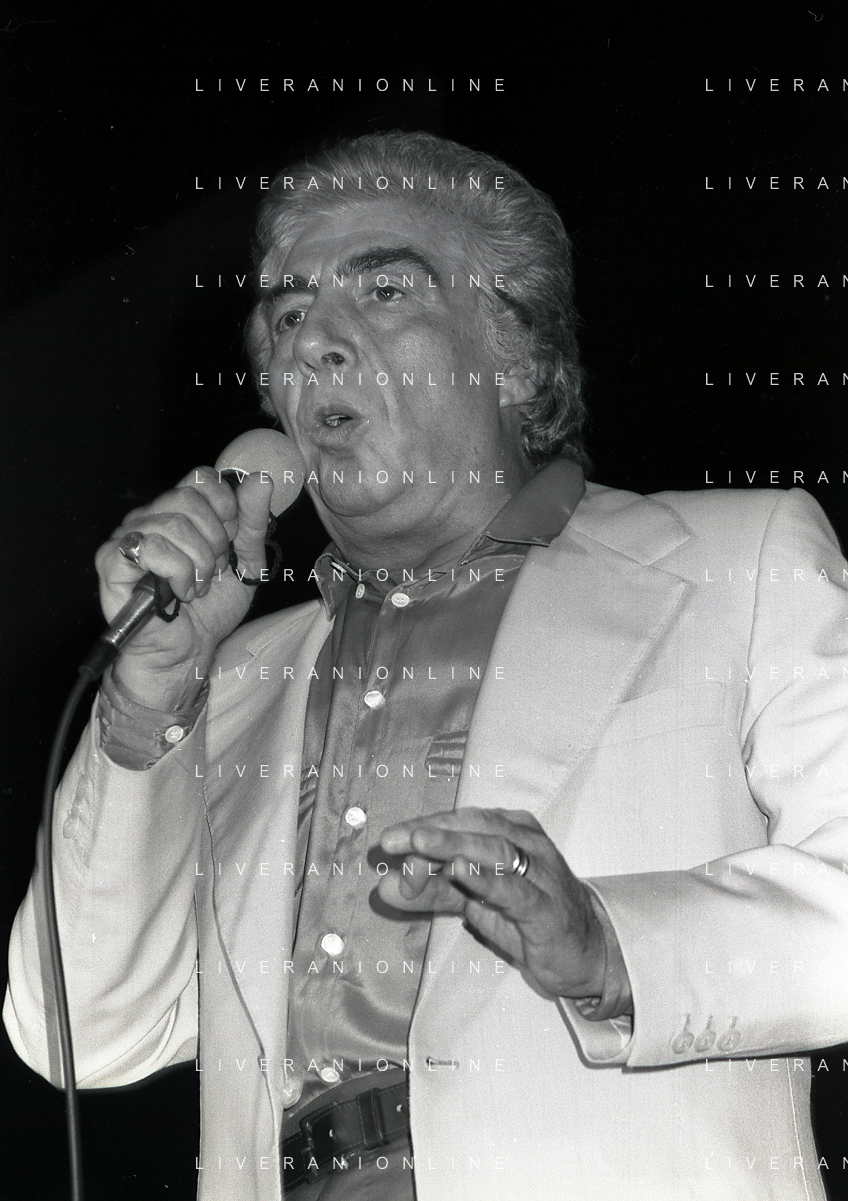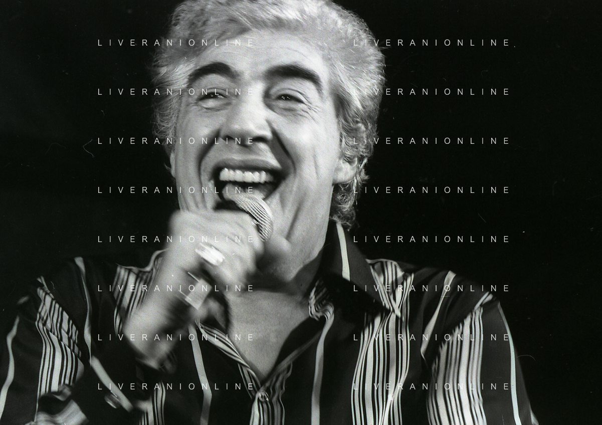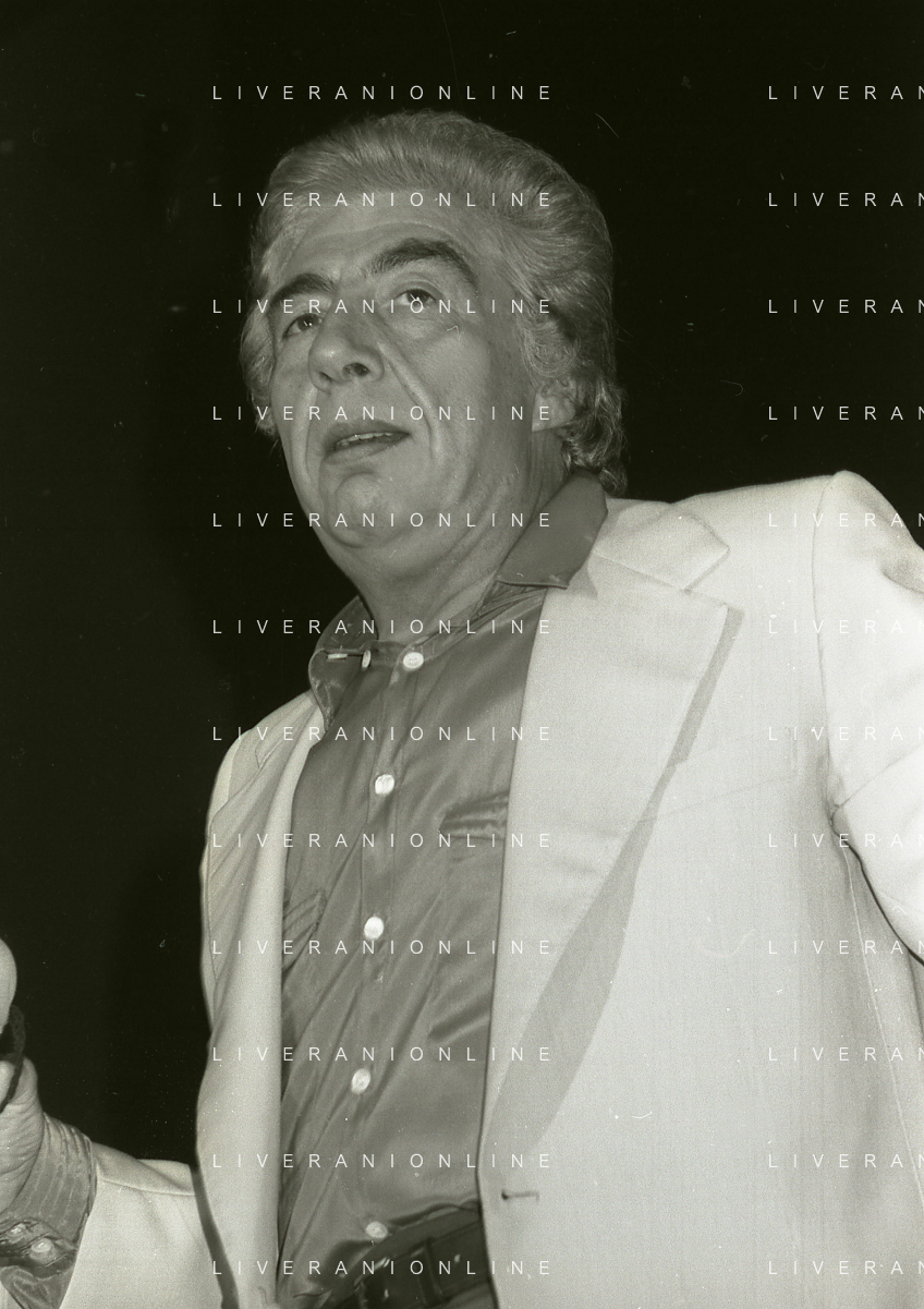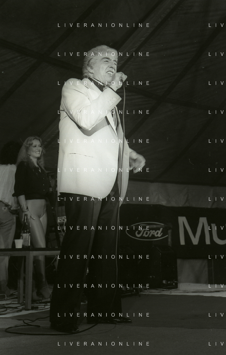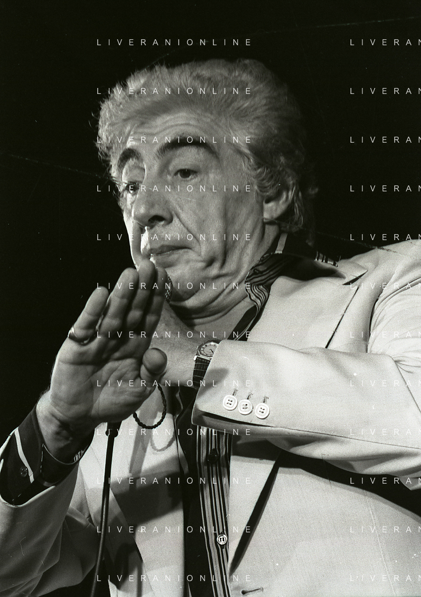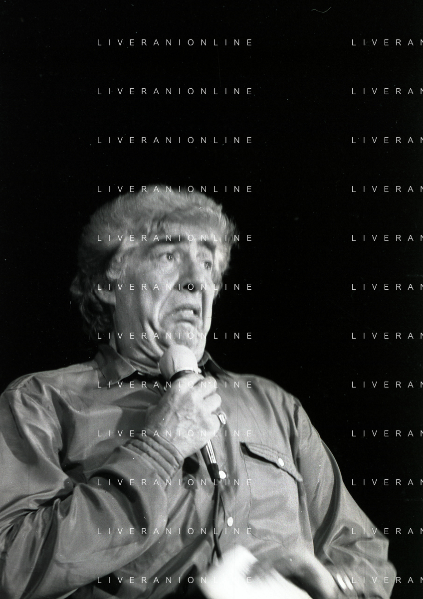 RETROSPETTIVA GINO BRAMIERI COMICO-CABARETTISTA-ATTORE-UMORISTA CONDUTTORE TELEVISIVO NELLA FOTO GINO BRAMIERI A MILANO NELL'ANNO 1980 NELLO SPETTACOLO AL CASTELLO SFORZESCO AG ALDO LIVERANI SAS
