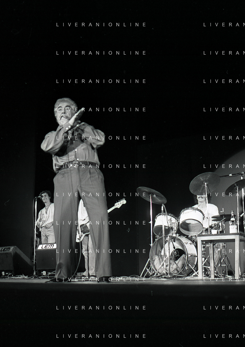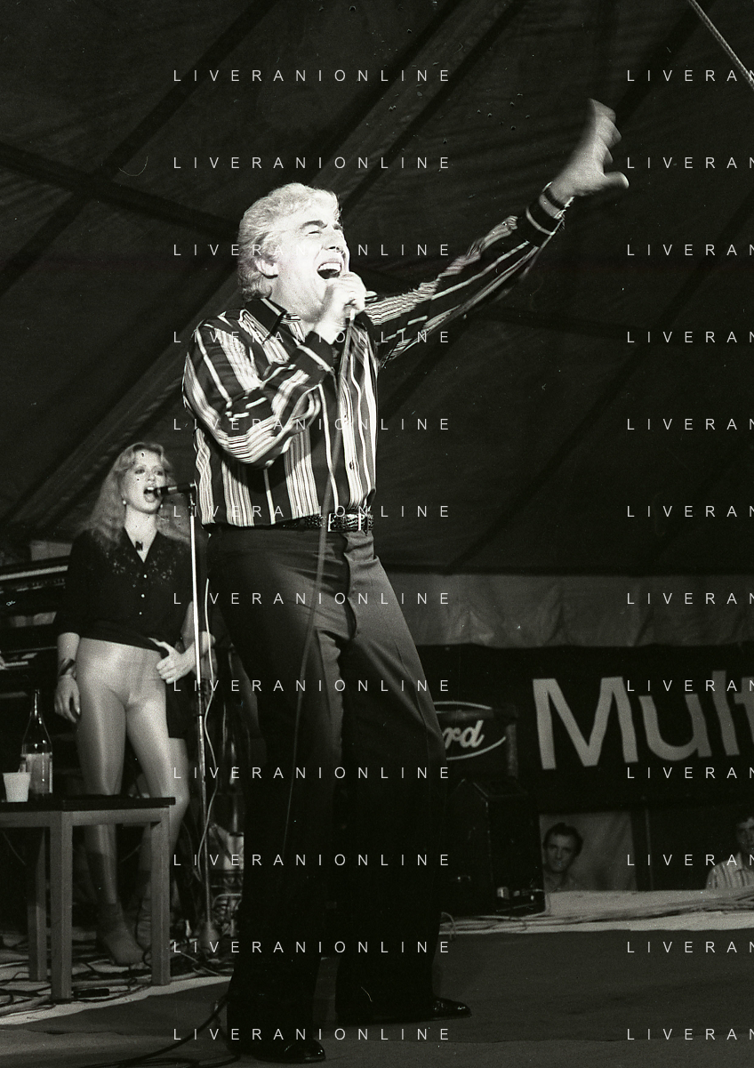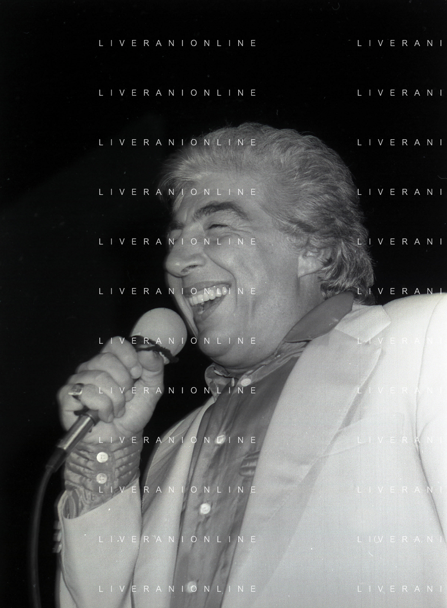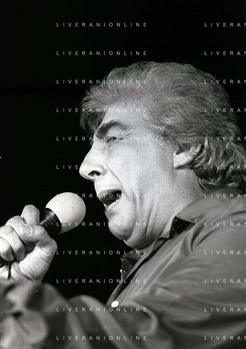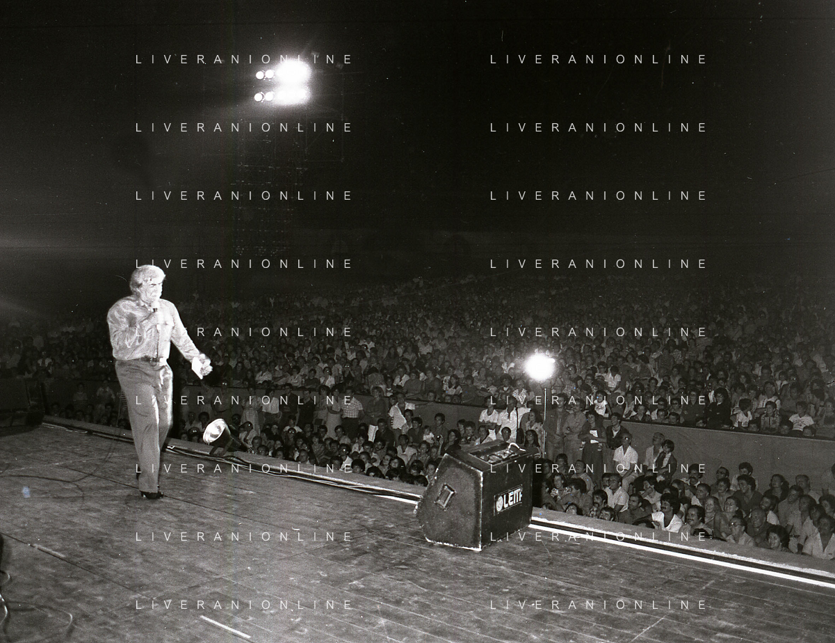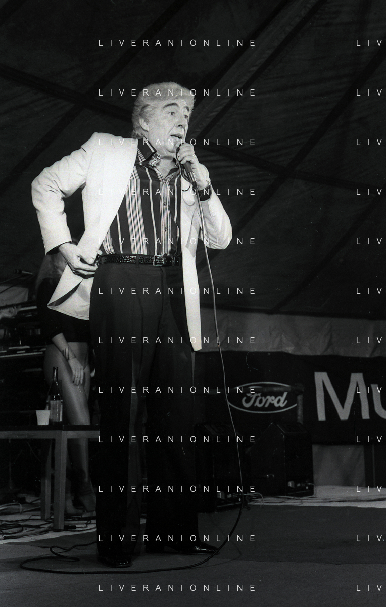 RETROSPETTIVA GINO BRAMIERI COMICO-CABARETTISTA-ATTORE-UMORISTA CONDUTTORE TELEVISIVO NELLA FOTO GINO BRAMIERI A MILANO NELL'ANNO 1980 NELLO SPETTACOLO AL CASTELLO SFORZESCO AG ALDO LIVERANI SAS