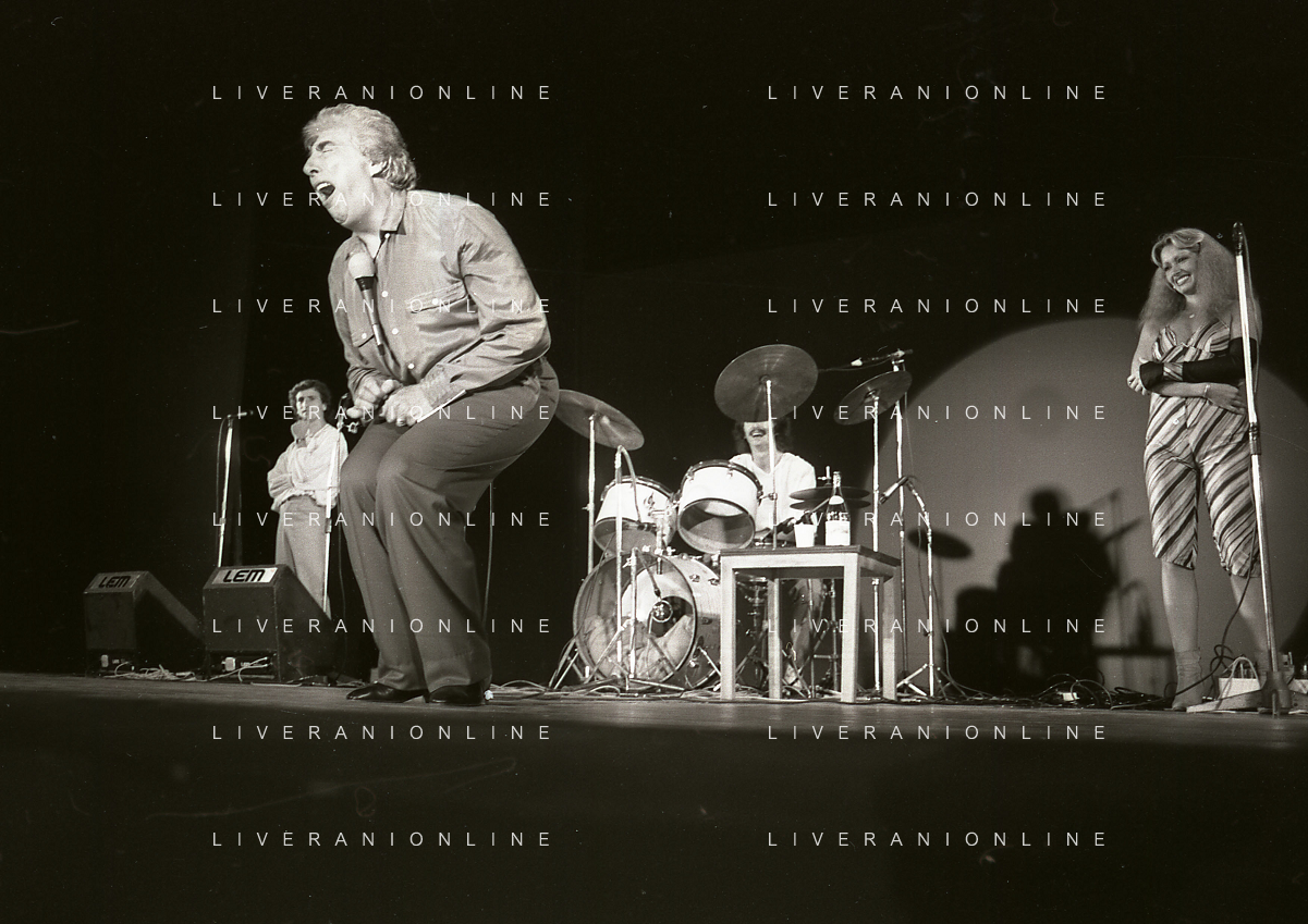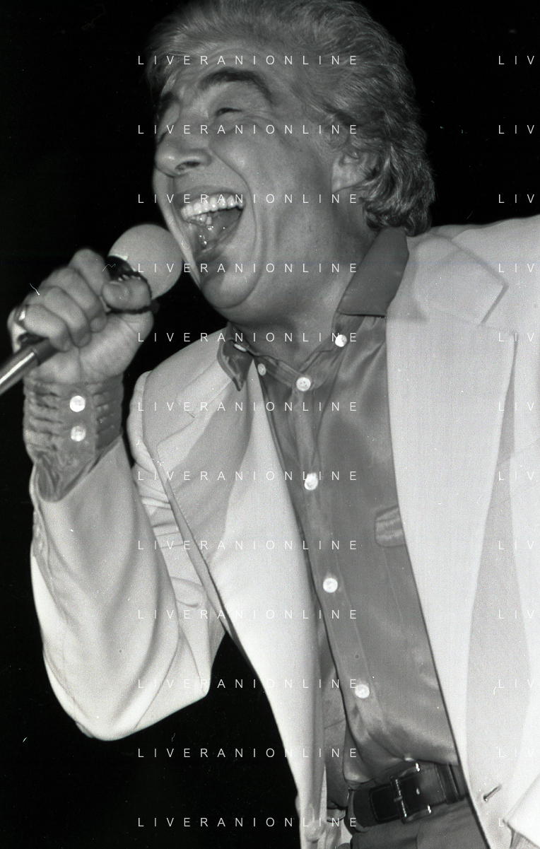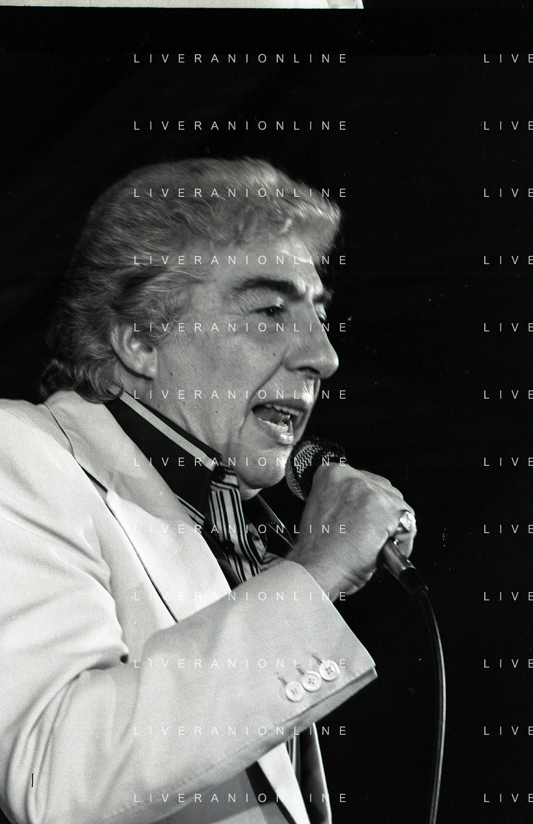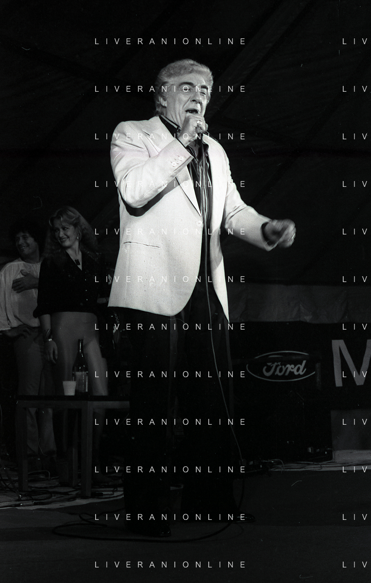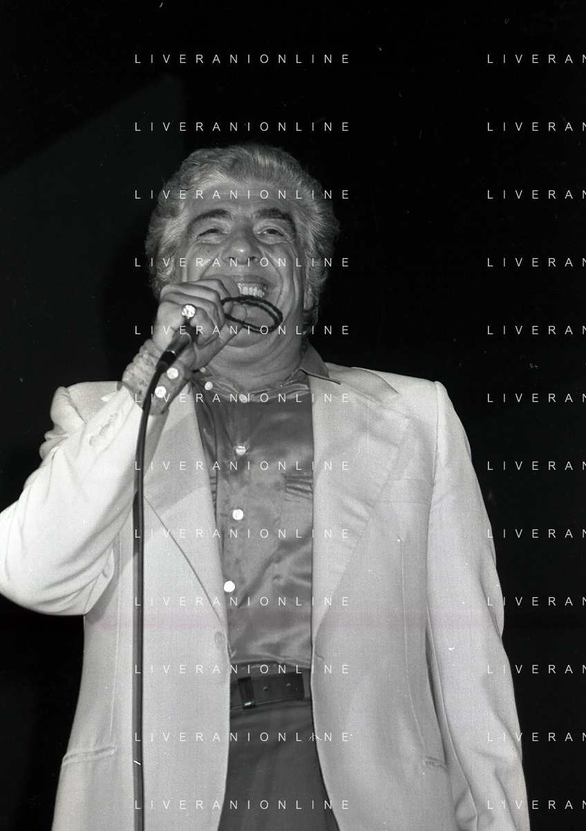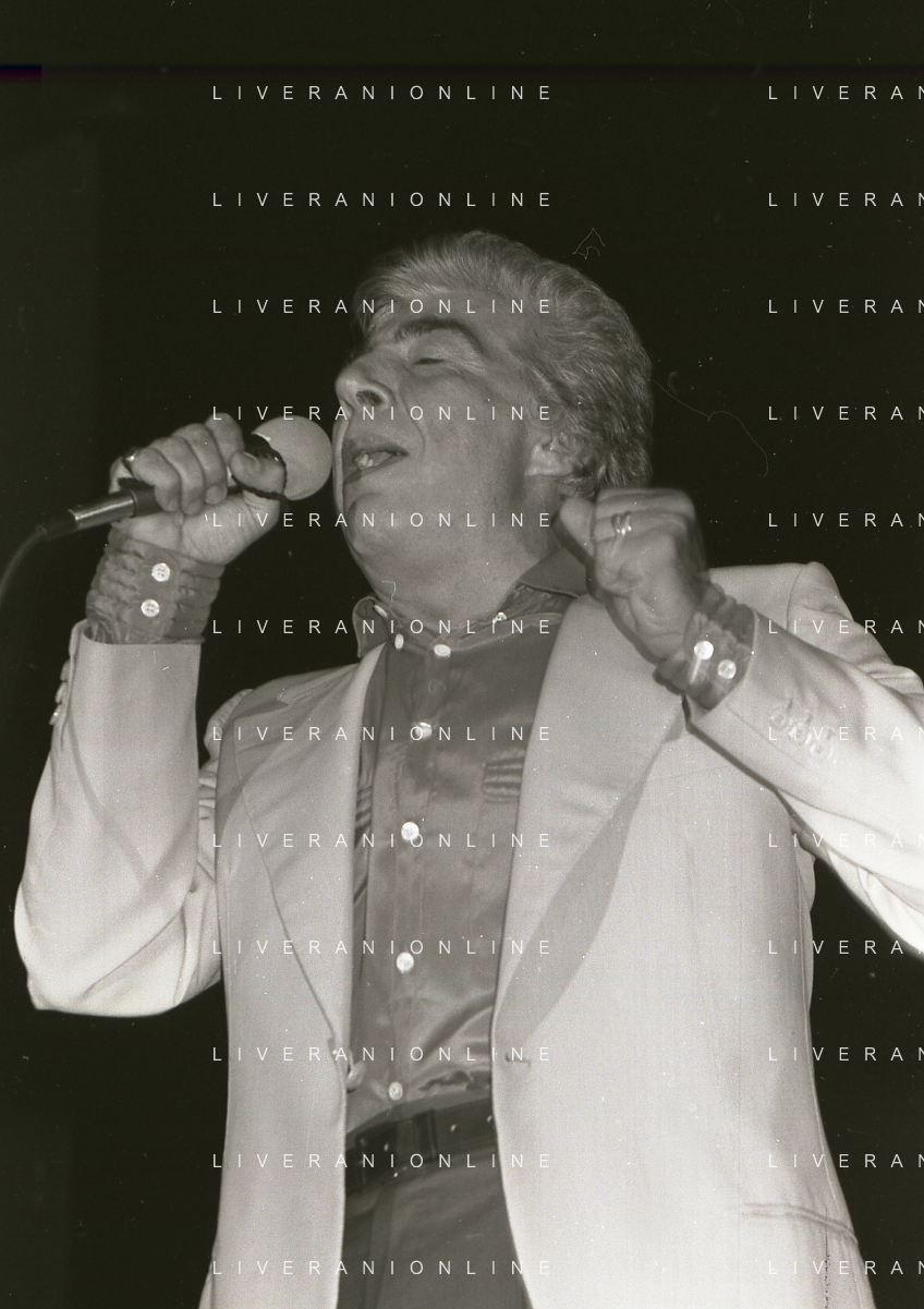 RETROSPETTIVA GINO BRAMIERI COMICO-CABARETTISTA-ATTORE-UMORISTA CONDUTTORE TELEVISIVO NELLA FOTO GINO BRAMIERI A MILANO NELL'ANNO 1980 NELLO SPETTACOLO AL CASTELLO SFORZESCO AG ALDO LIVERANI SAS
