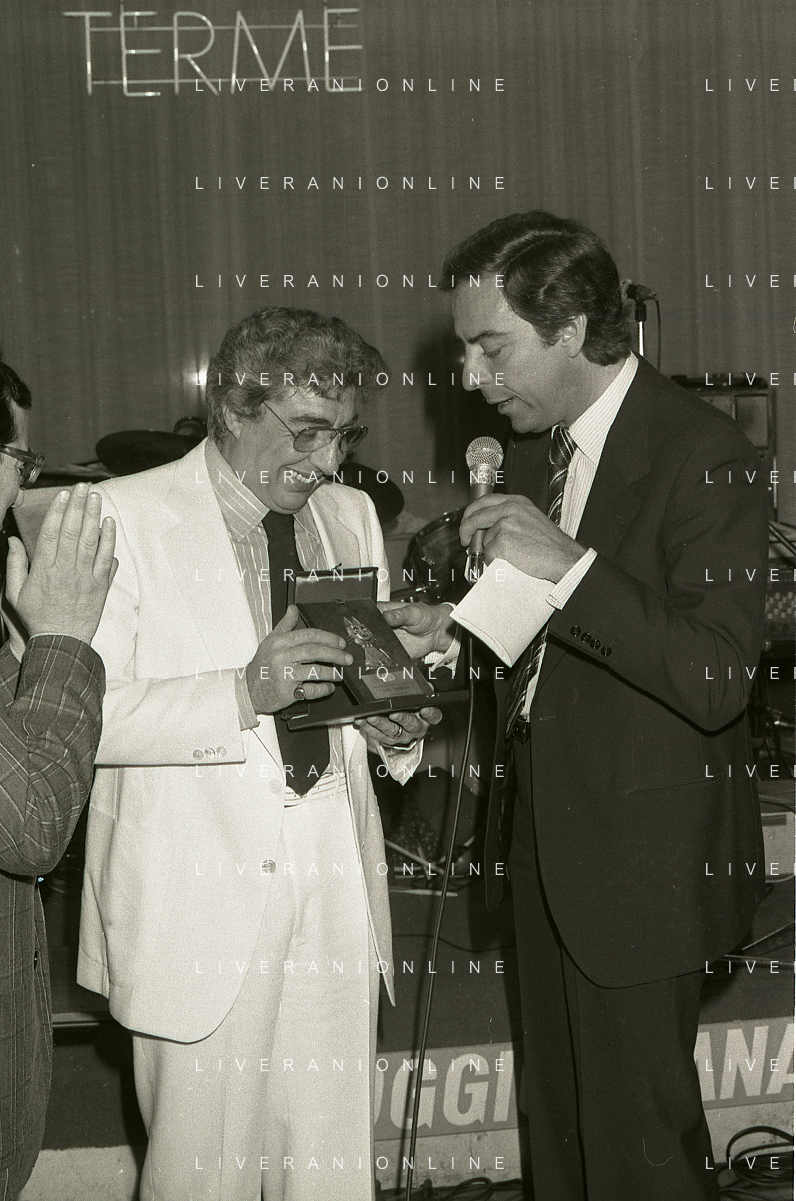 RETROSPETTIVA GINO BRAMIERI COMICO-CABARETTISTA-ATTORE-UMORISTA CONDUTTORE TELEVISIVO NELLA FOTO GINO BRAMIERI CON DANIELE PIOMBI A SALSOMAGGIORE AL PREMIO REGIA TELEVISIVA NELL'ANNO 1979 AG ALDO LIVERANI SAS