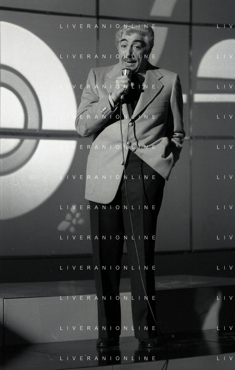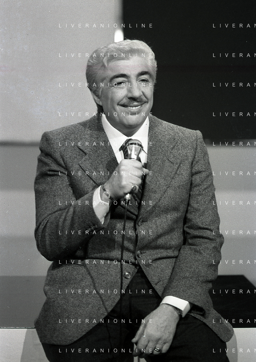 RETROSPETTIVA GINO BRAMIERI COMICO-CABARETTISTA-ATTORE-UMORISTA CONDUTTORE TELEVISIVO NELLA FOTO GINO BRAMIERI A MILANO NELL'ANNO 1978 AG ALDO LIVERANI SAS