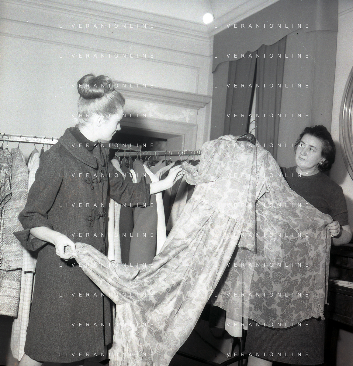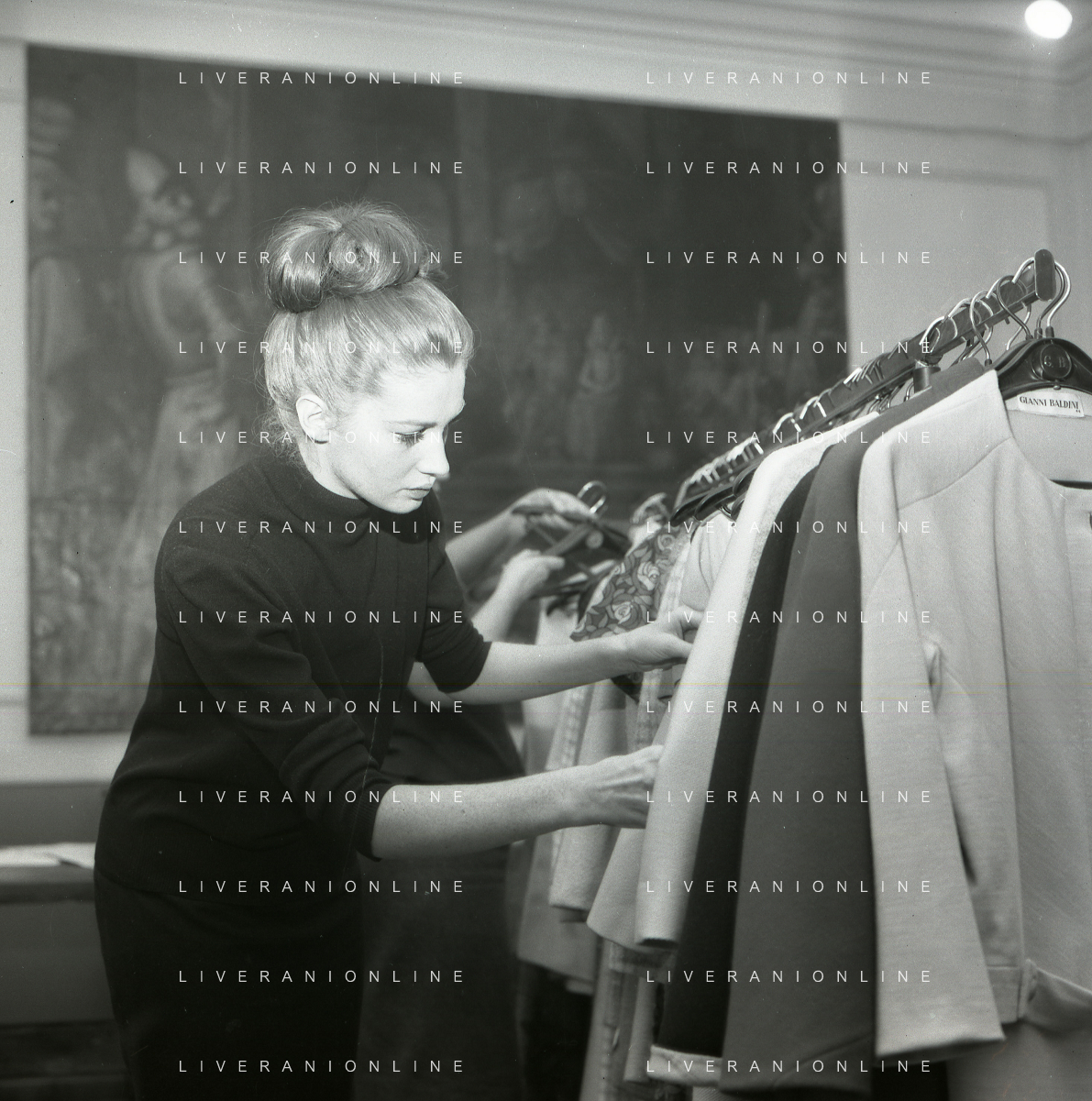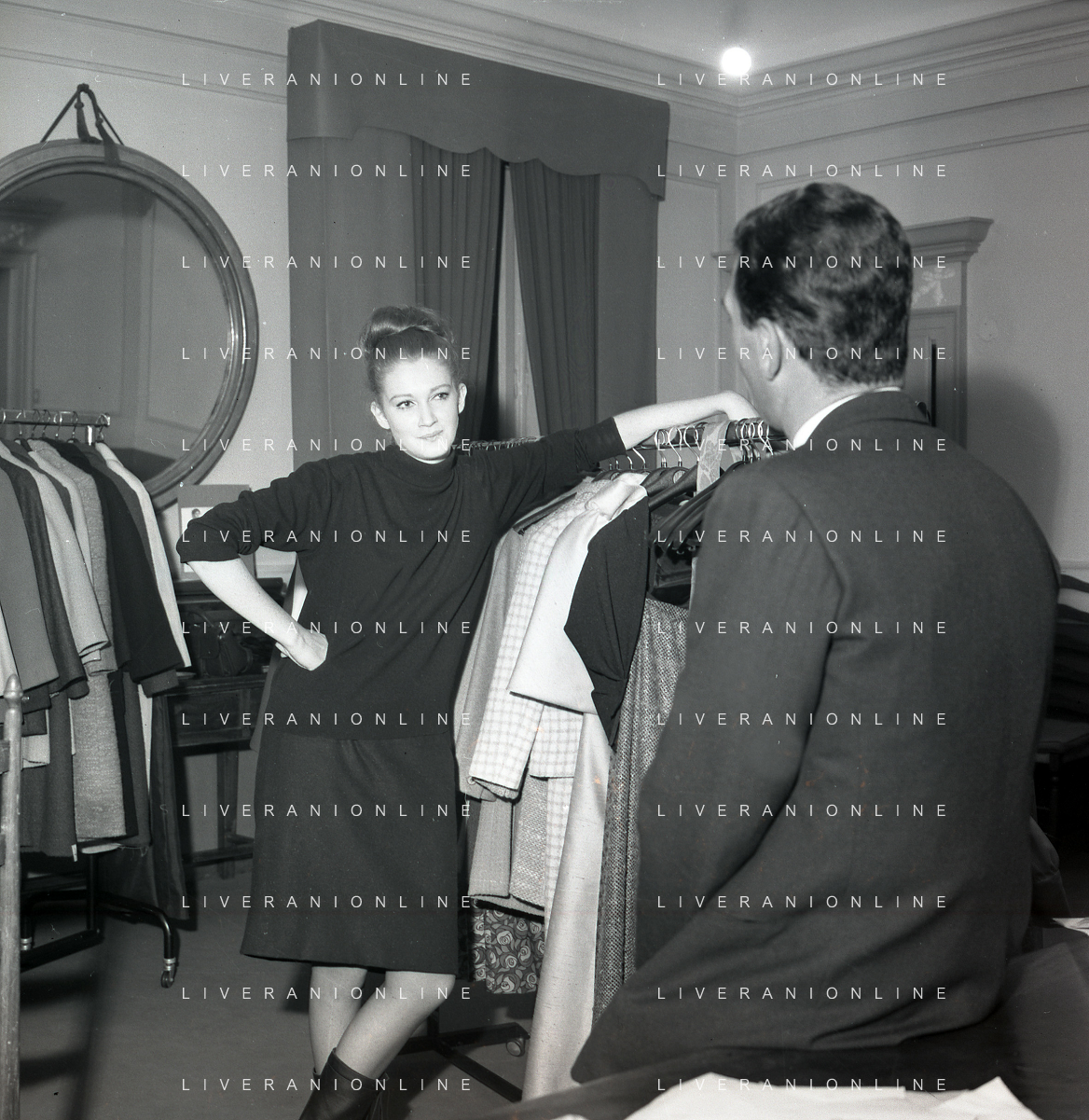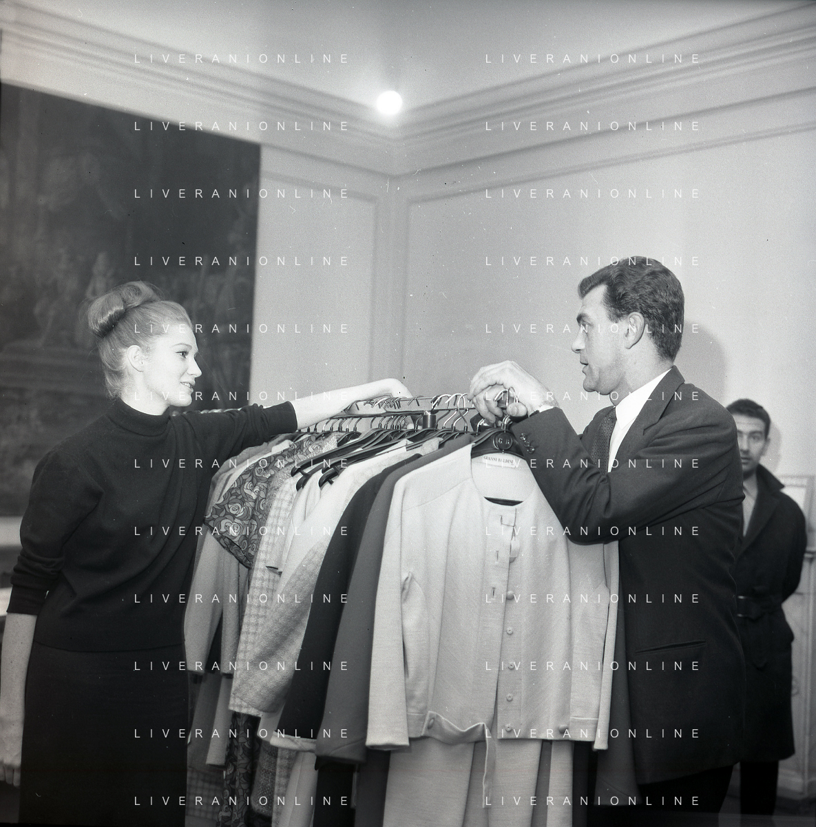 RETROSPETTIVA CARLA GRAVINA ATTRICE NELLA FOTO CARLA GRAVINA DAL SARTO GIANNI BALDINI A MILANO IL 15-12-1964 AG ALDO LIVERANI SAS