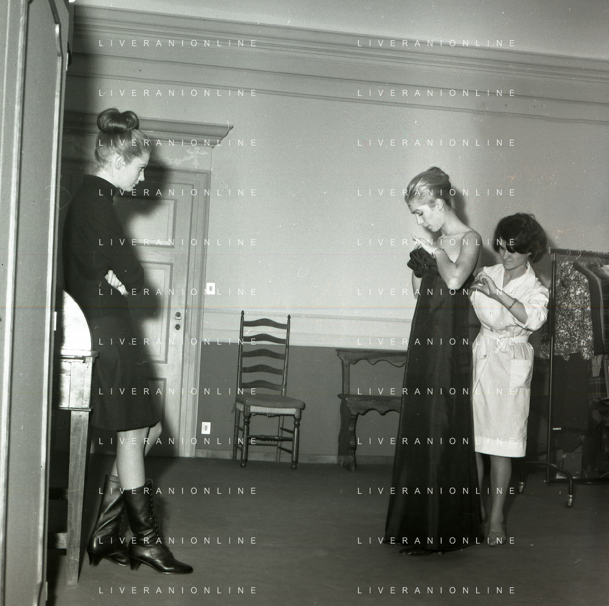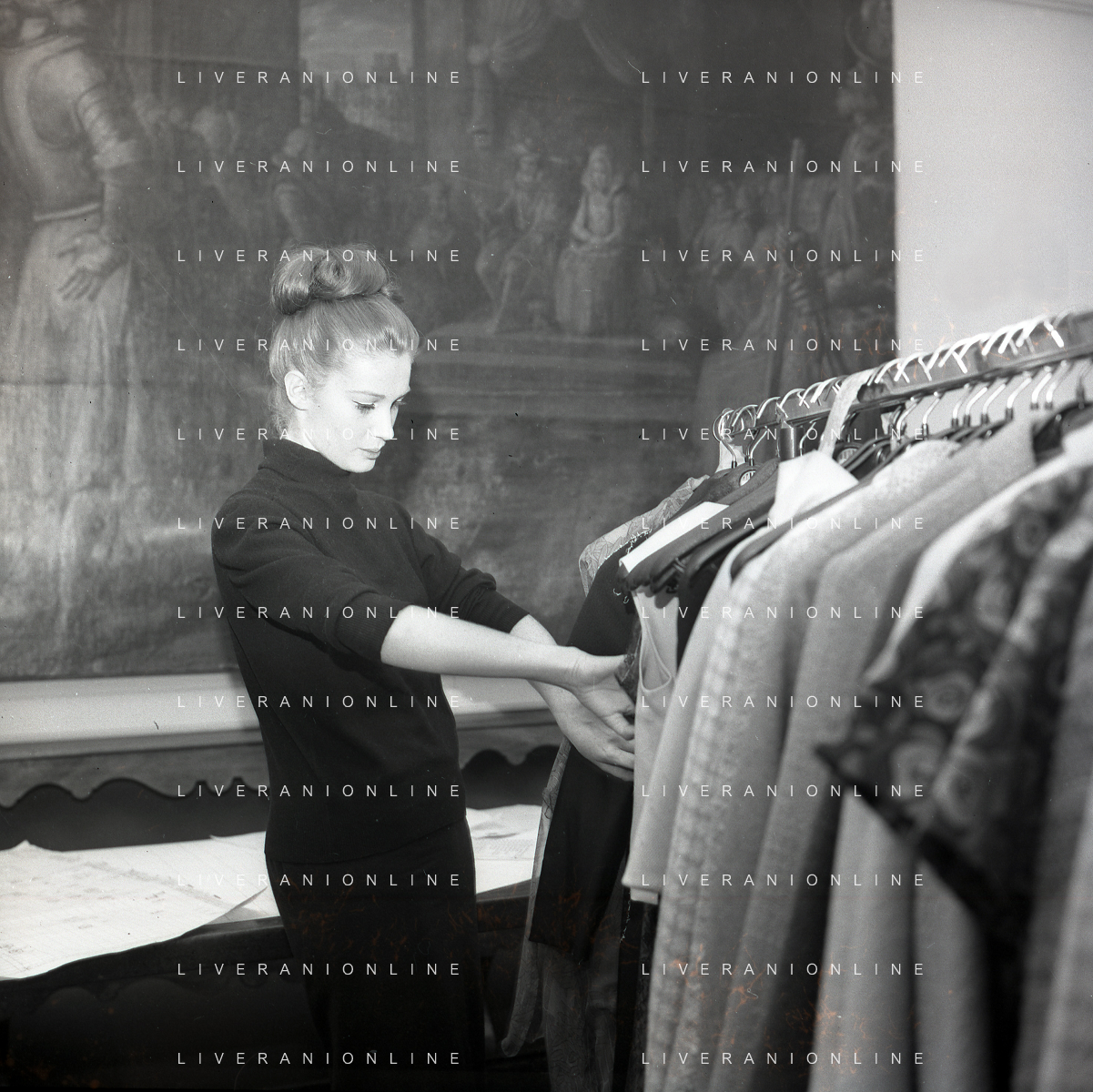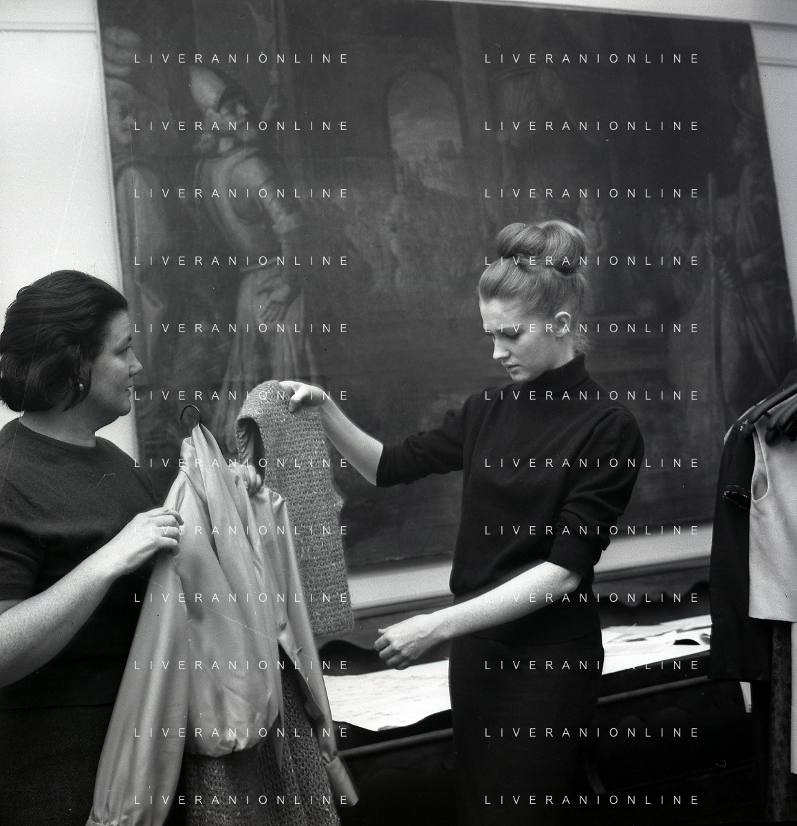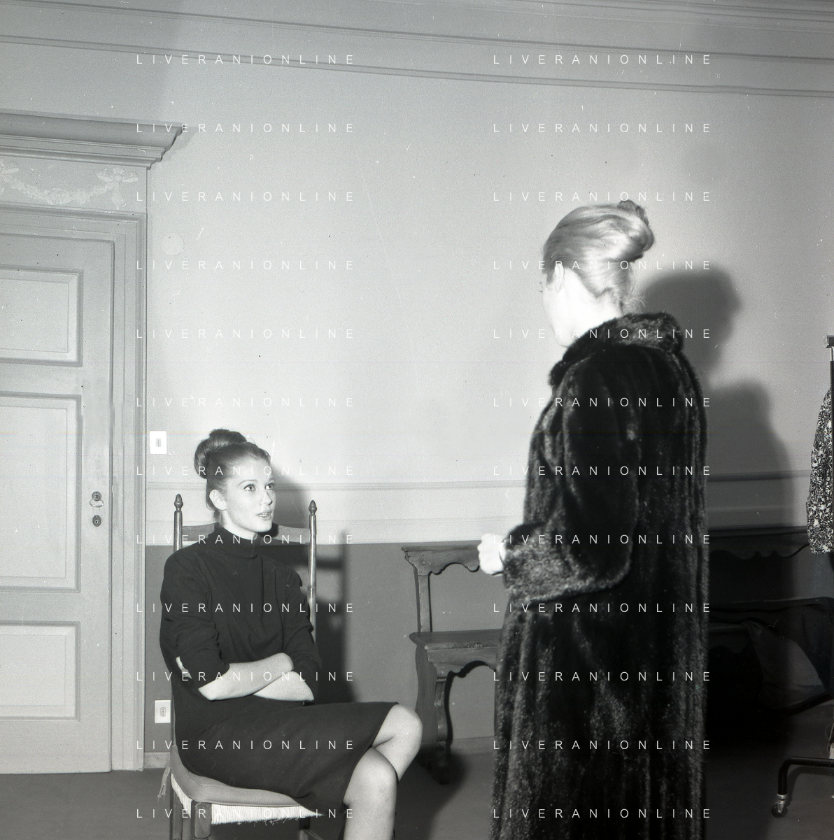 RETROSPETTIVA CARLA GRAVINA ATTRICE NELLA FOTO CARLA GRAVINA DAL SARTO GIANNI BALDINI A MILANO IL 15-12-1964 AG ALDO LIVERANI SAS