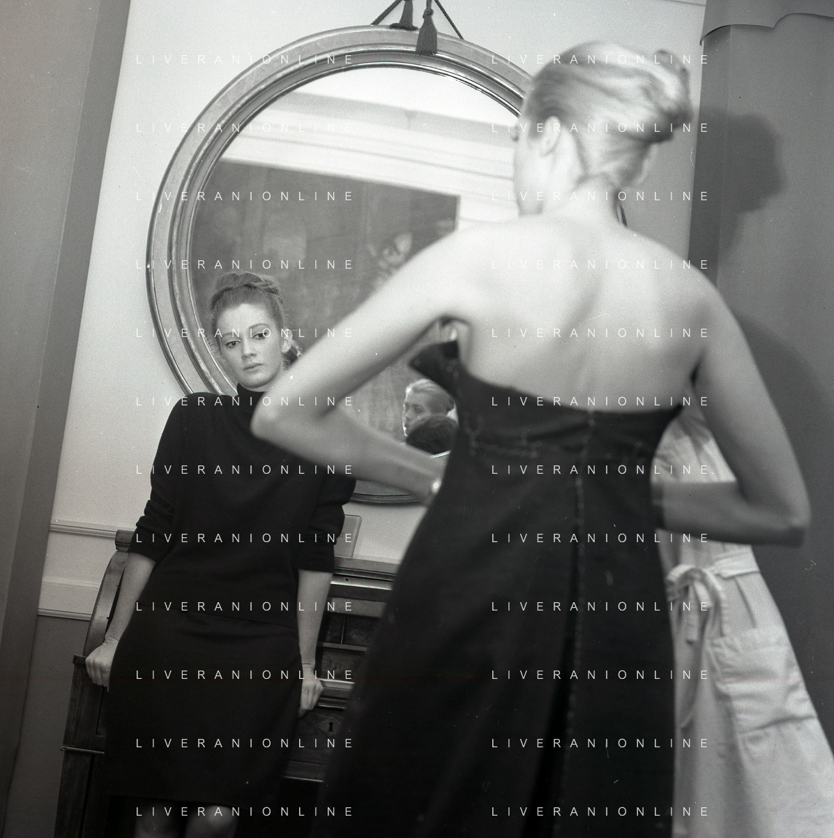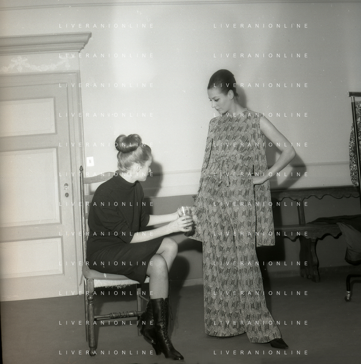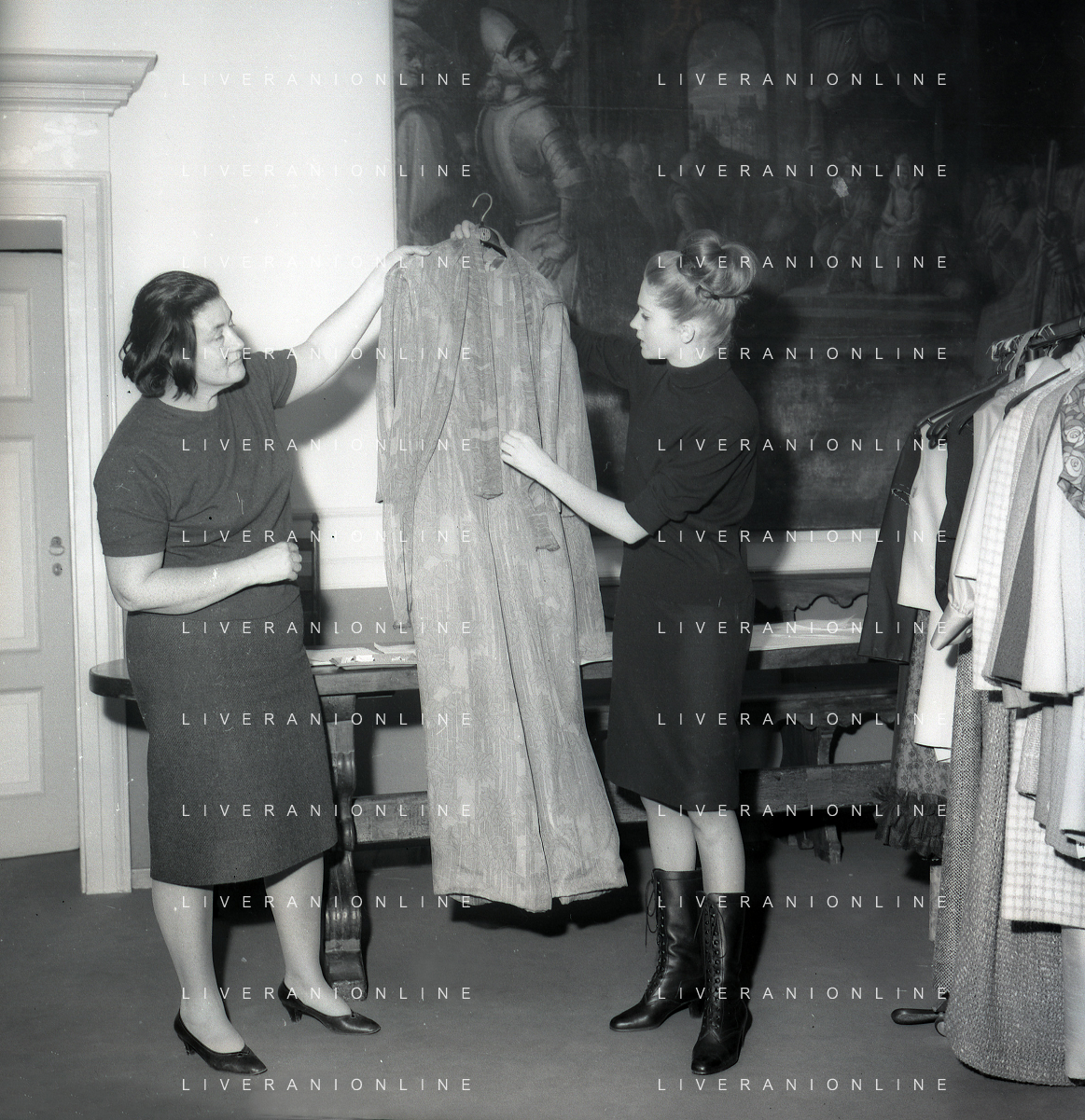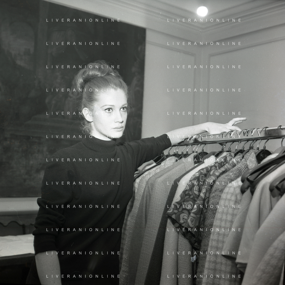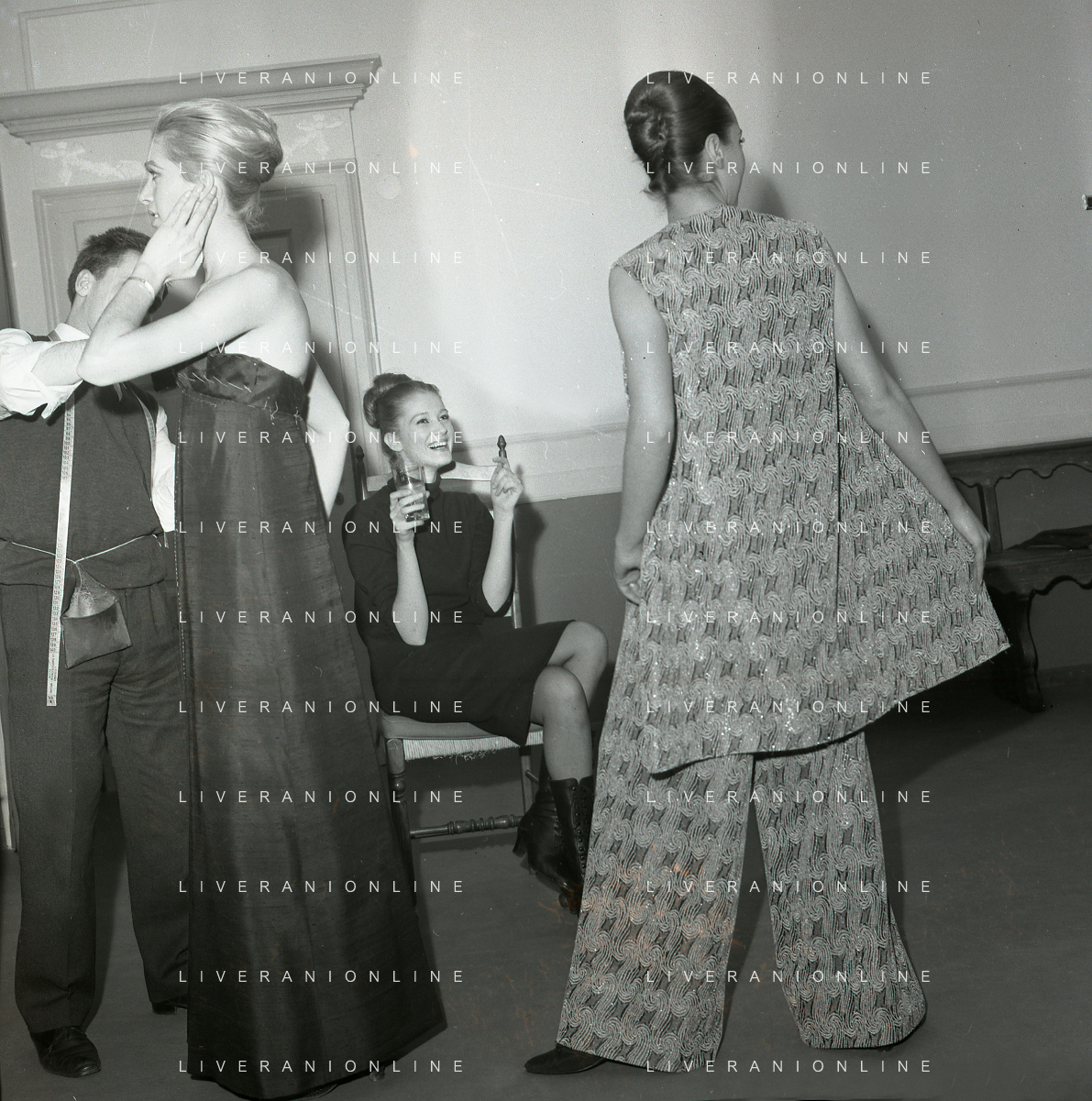 RETROSPETTIVA CARLA GRAVINA ATTRICE NELLA FOTO CARLA GRAVINA DAL SARTO GIANNI BALDINI A MILANO IL 15-12-1964 AG ALDO LIVERANI SAS