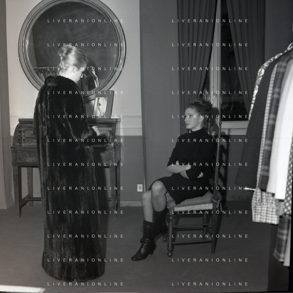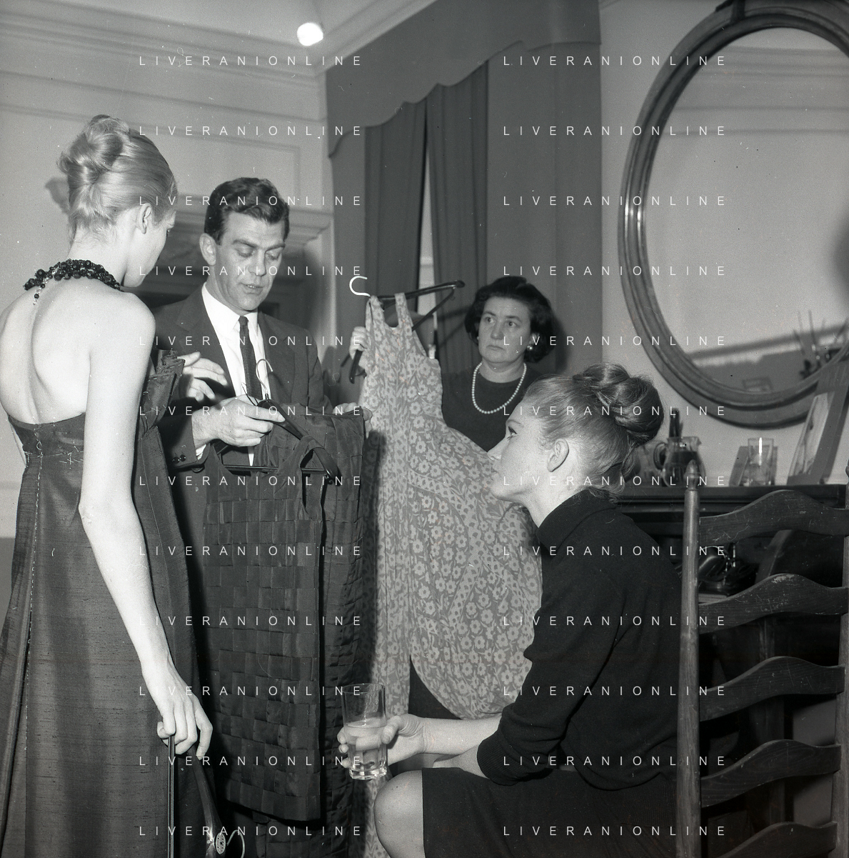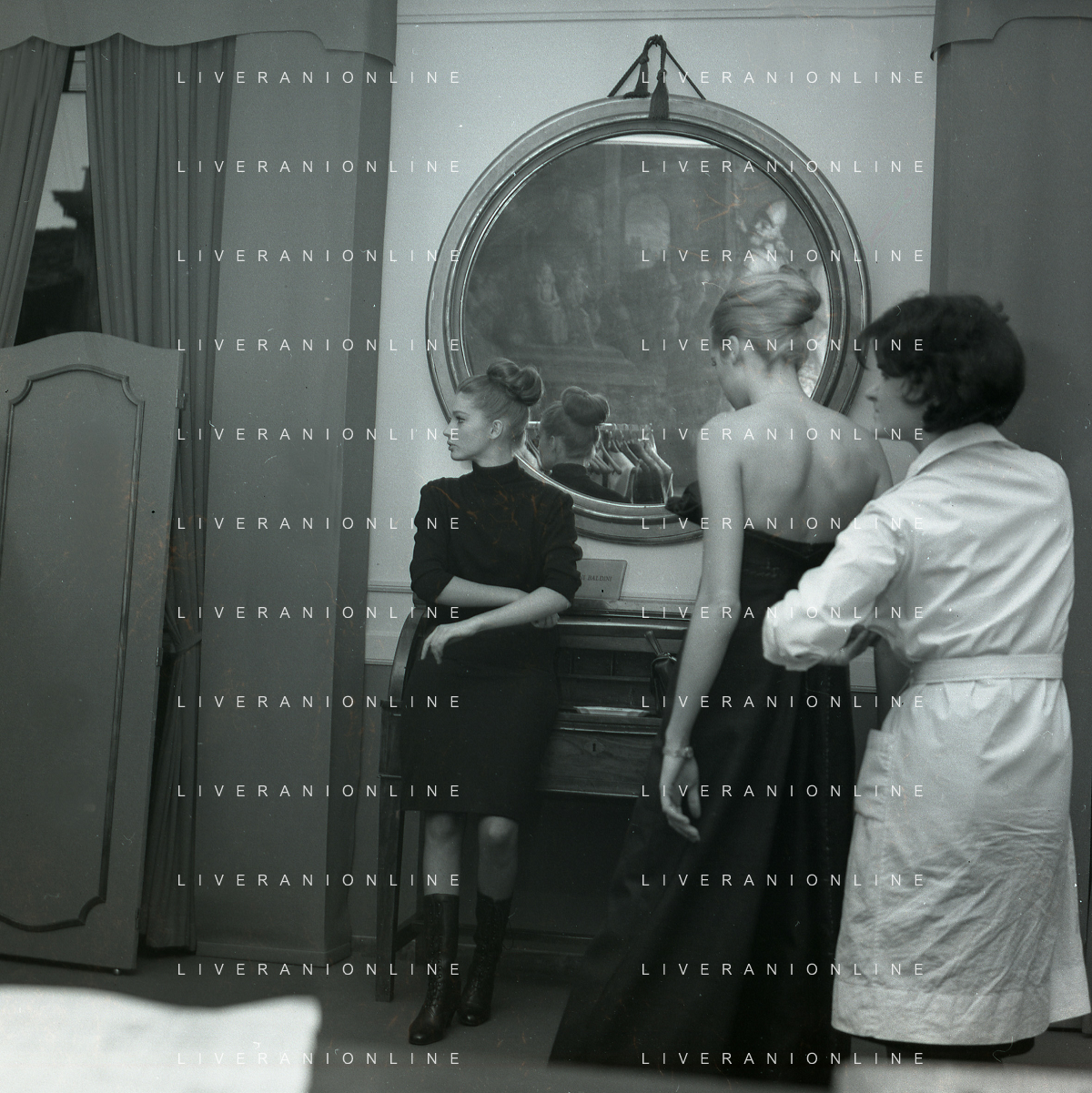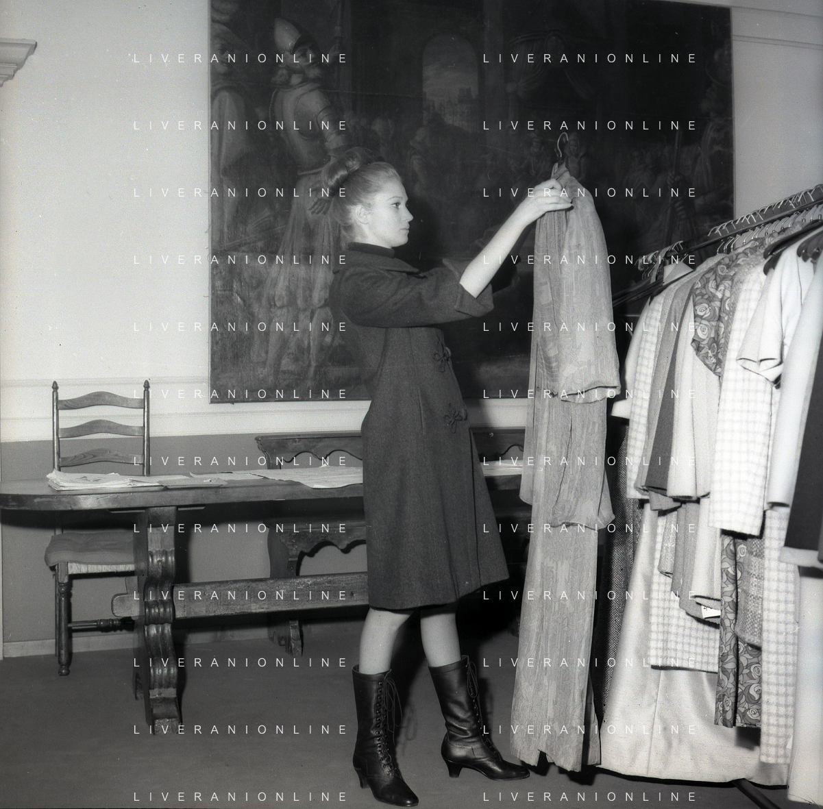 RETROSPETTIVA CARLA GRAVINA ATTRICE NELLA FOTO CARLA GRAVINA DAL SARTO GIANNI BALDINI A MILANO IL 15-12-1964 AG ALDO LIVERANI SAS