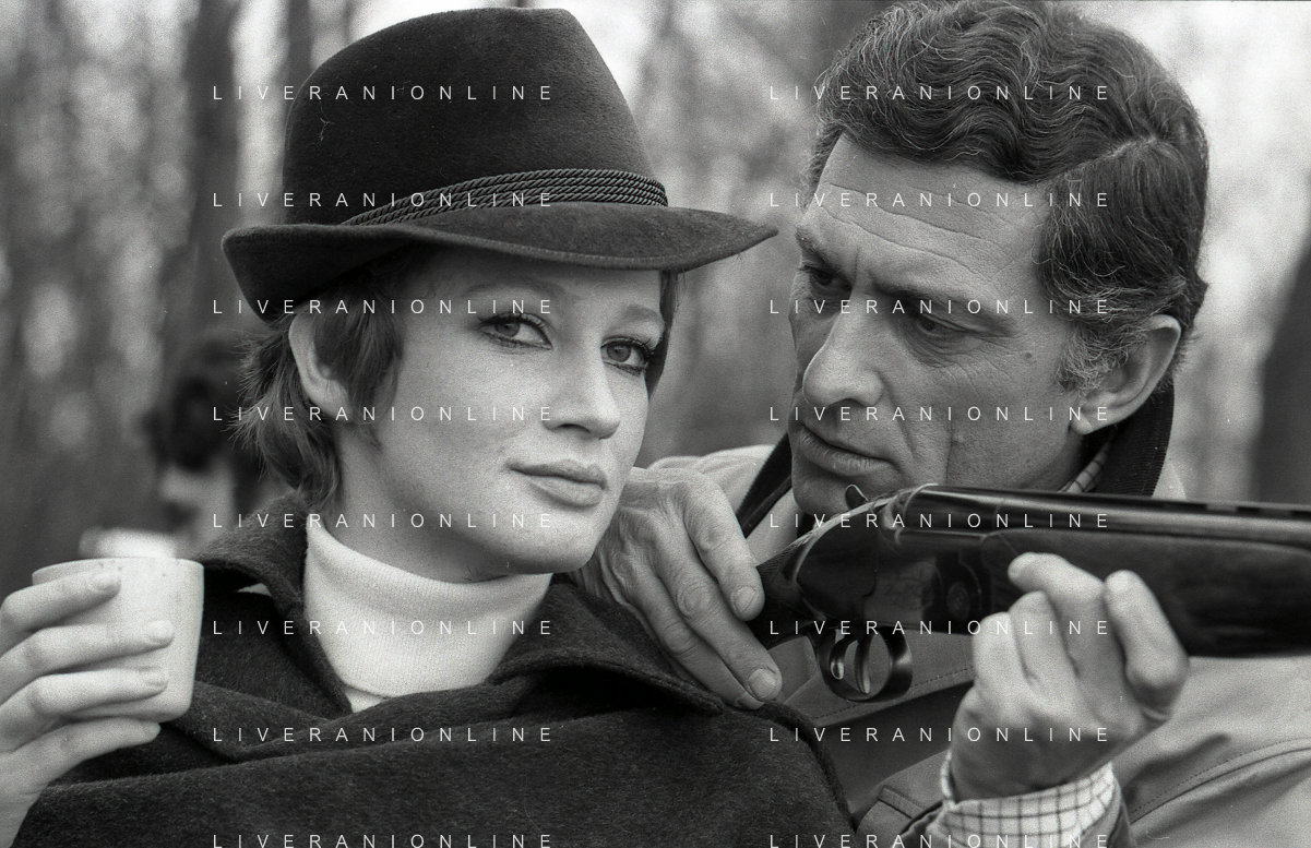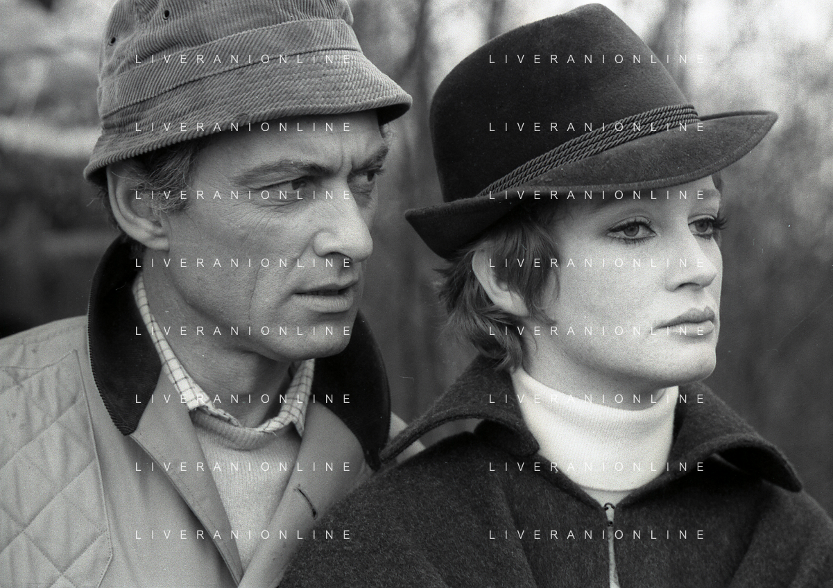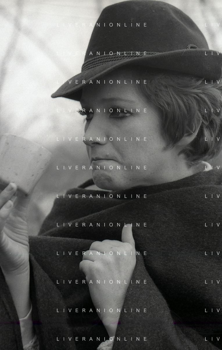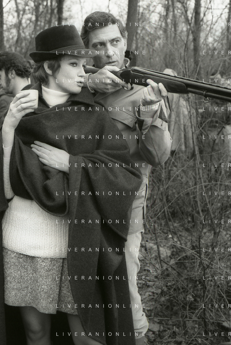 RETROSPETTIVA CARLA GRAVINA ATTRICE NELLA FOTO CARLA GRAVINA CON SILVANO TRANQUILLI NELL'ANNO 1969 A VIGEVANO SET DEL FILM“LA DONNA INVISIBILE“ AG ALDO LIVERANI SAS