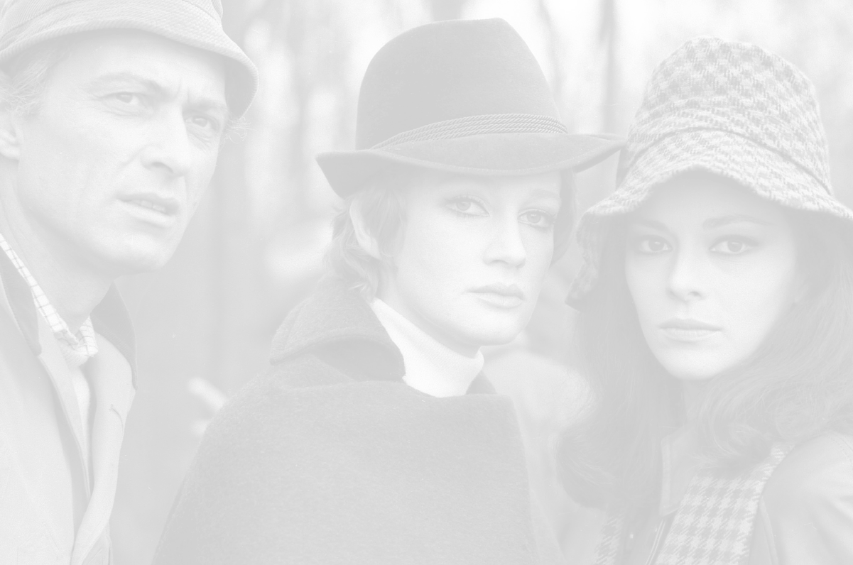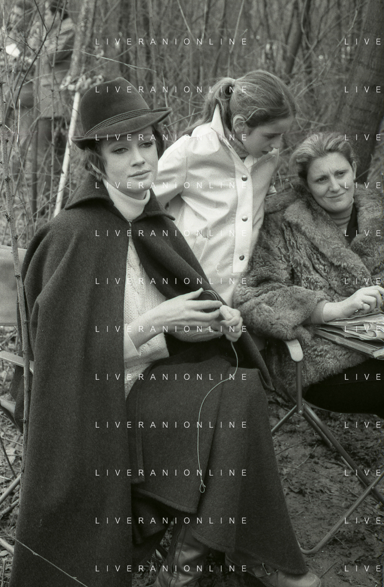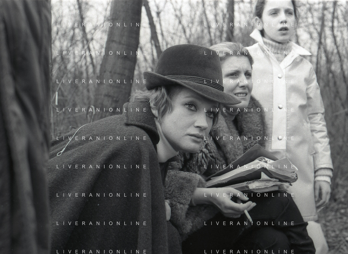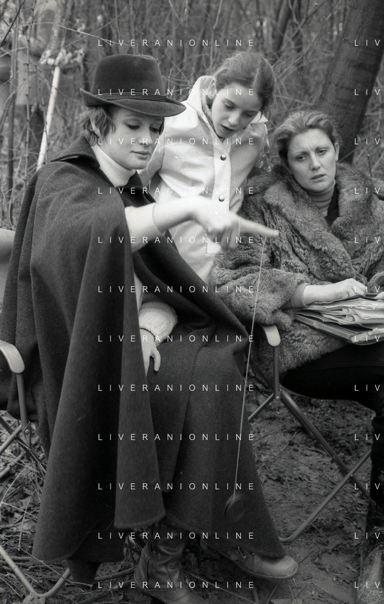 RETROSPETTIVA CARLA GRAVINA ATTRICE NELLA FOTO CARLA GRAVINA CON SILVANO TRANQUILLI E GIOVANNA RALLI NELL'ANNO 1969 A VIGEVANO SET DEL FILM“LA DONNA INVISIBILE“ AG ALDO LIVERANI SAS
