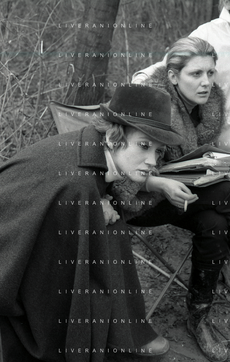RETROSPETTIVA CARLA GRAVINA ATTRICE NELLA FOTO CARLA GRAVINA CON GIOVANNA RALLI NELL'ANNO 1969 A VIGEVANO SET DEL FILM“LA DONNA INVISIBILE“ AG ALDO LIVERANI SAS
