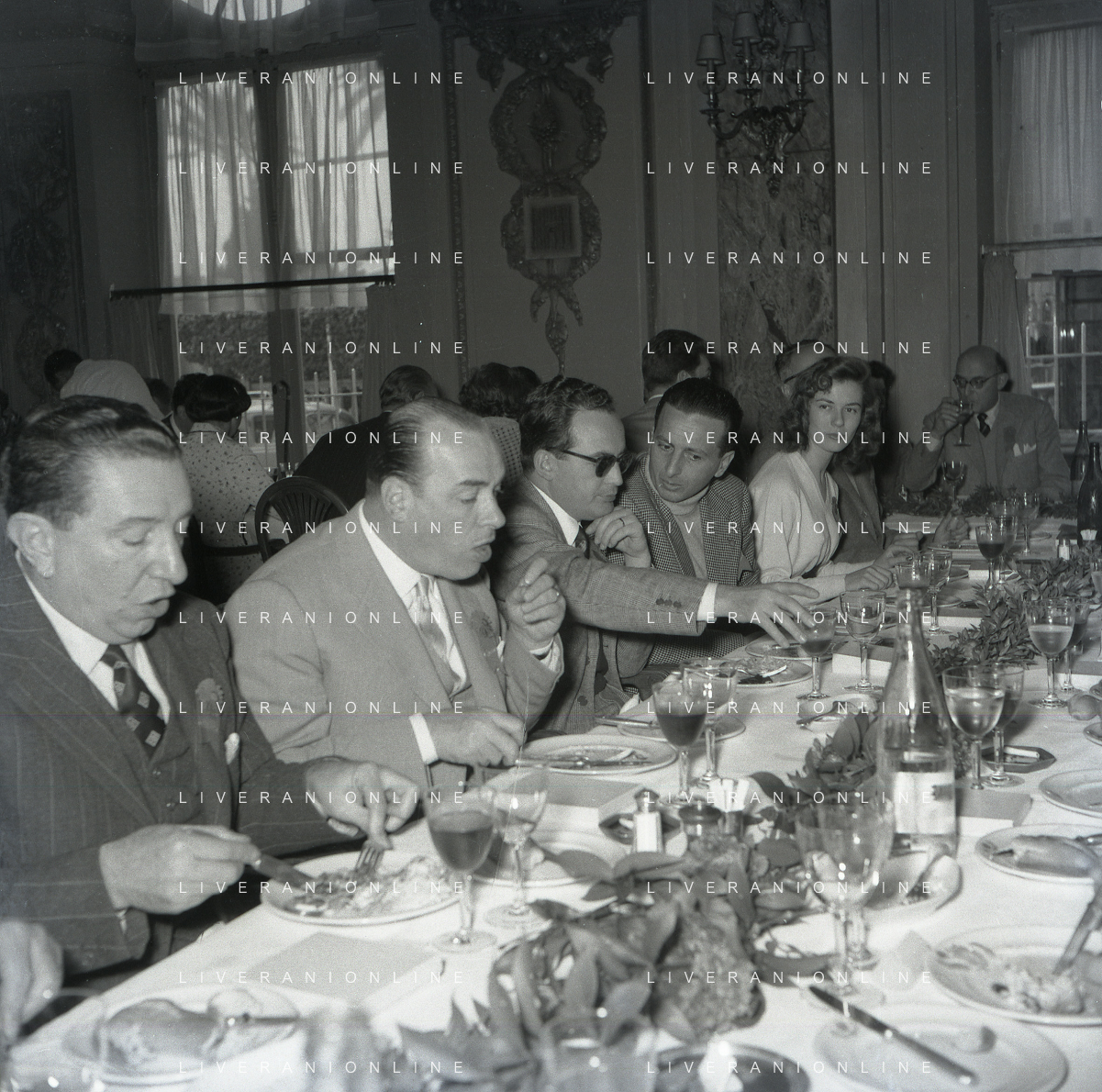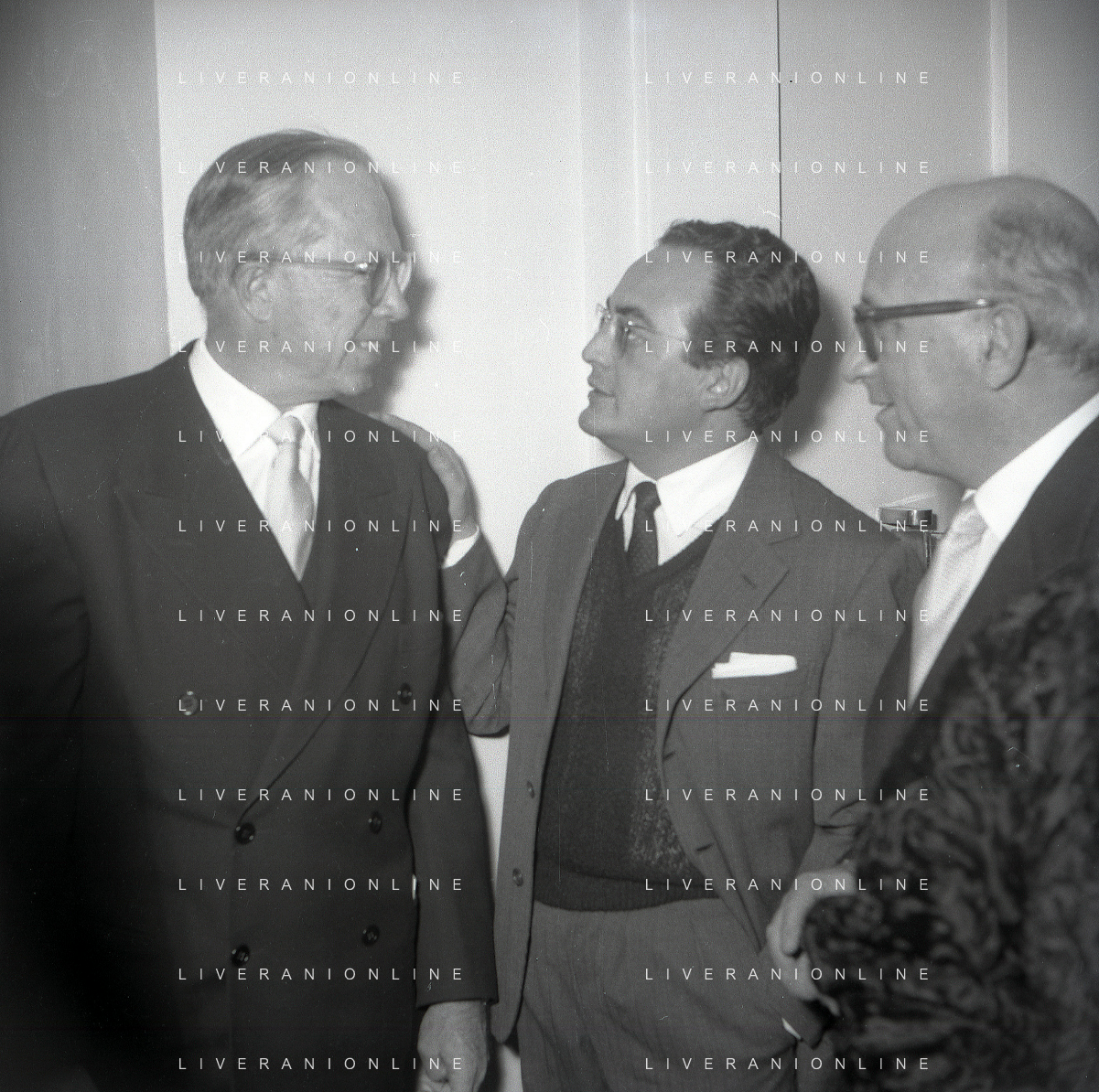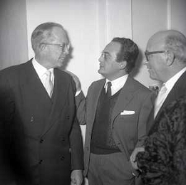 RETROSPETTIVA DINO DE LAURENTIIS PRODUTTORE CINEMATOGRAFICO NELLA FOTO DINO DE LAURENTIIS CON VITTORIO GASSMANN E FERRERO A ROMA NELL'ANNO 1955 AG ALDO LIVERANI SAS