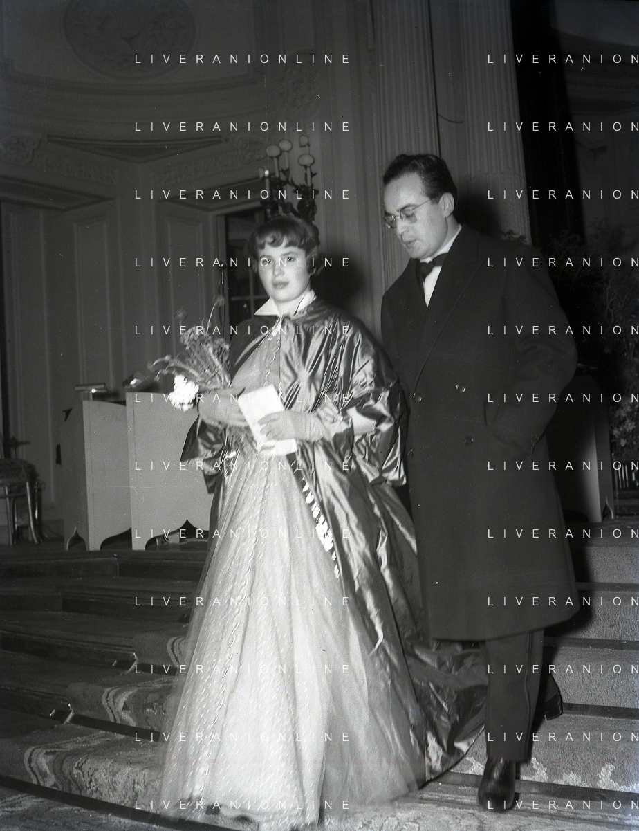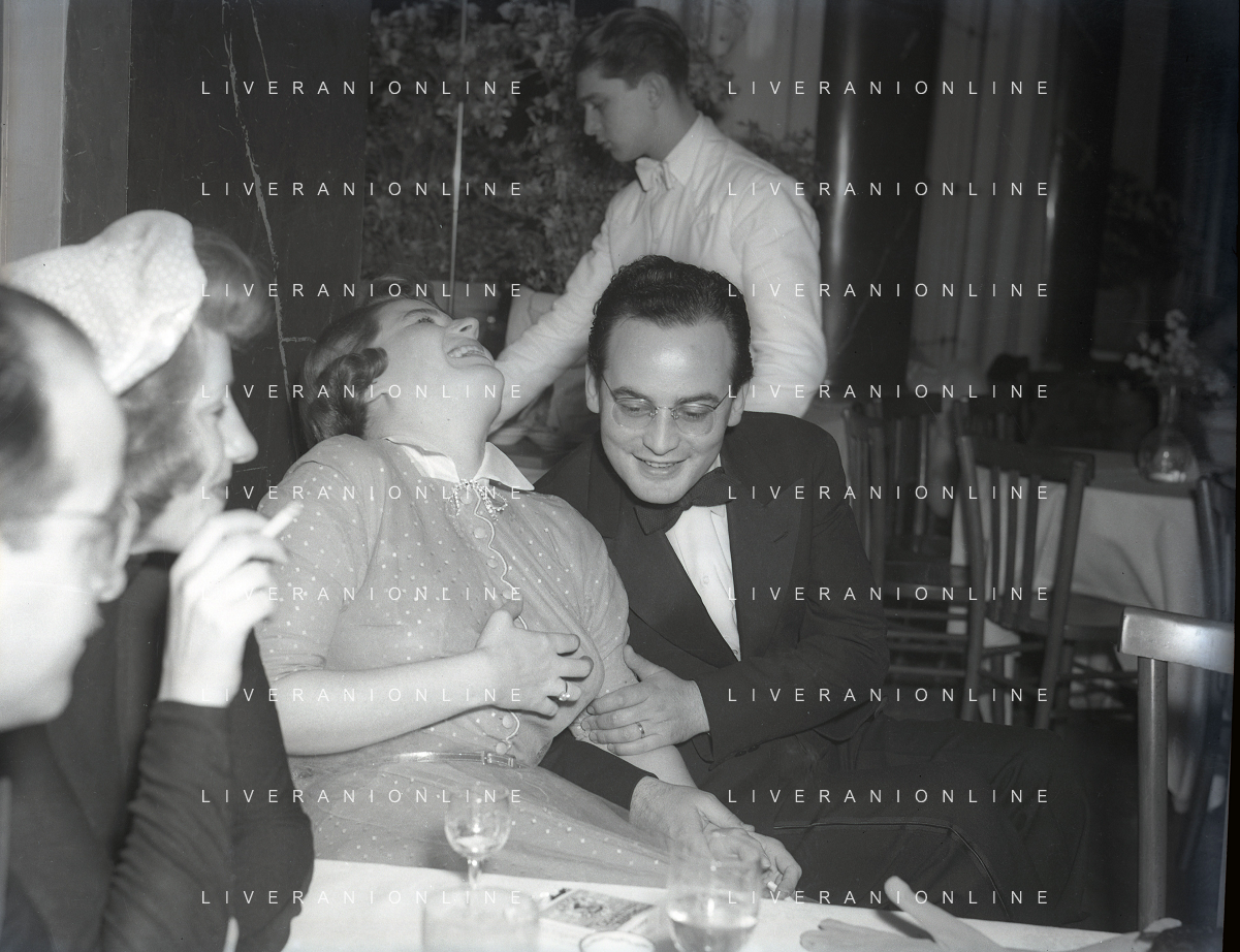 RETROSPETTIVA DINO DE LAURENTIIS PRODUTTORE CINEMATOGRAFICO NELLA FOTO DINO DELAURENTIIS CON SILVANA MANGANO A ROMA NELL'ANNO 1950 AG ALDO LIVERANI SAS