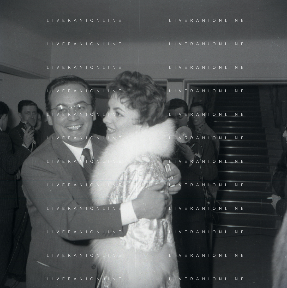 RETROSPETTIVA DINO DE LAURENTIIS PRODUTTORE CINEMATOGRAFICO NELLA FOTO DINO DE LAURENTIIS A ROMA NELL'ANNO 1955 CON GINA LOLLOBRIGIDA AG ALDO LIVERANI SAS