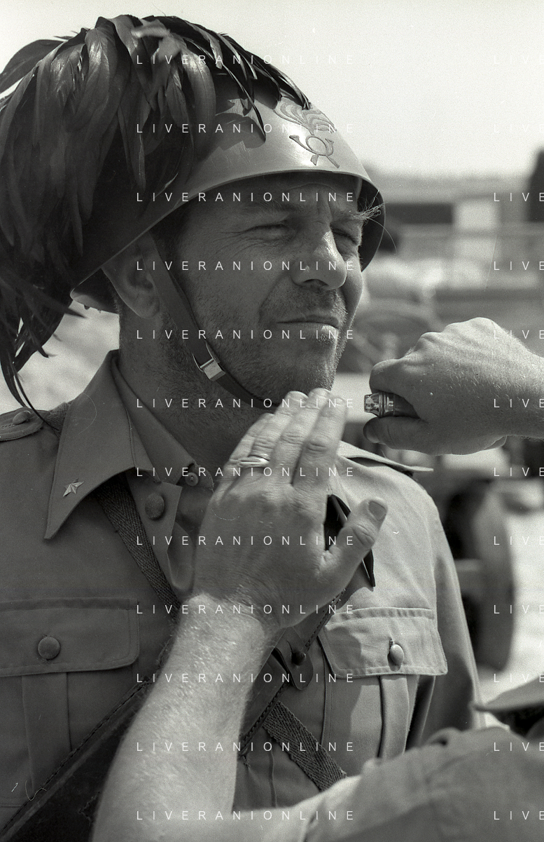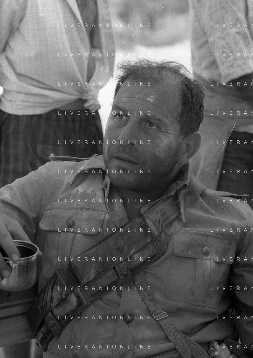 RETROSPETTIVA ENRICO MARIA SALERNO ATTORE NELLA FOTO ENRICO MARIA SALERNO SUL SET DEL FILM“ EL ALAMEIN“ NELL'ANNO 1968 AG ALDO LIVERANI SAS