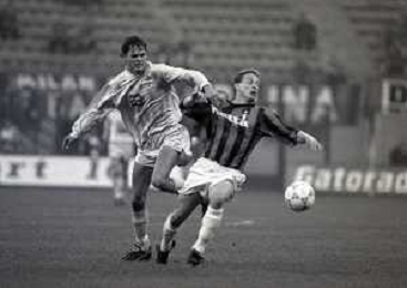 04-11-1992 MILANO OTTAVI DI FINALE DI RITORNO CHAMPIONS LEAGUE MILAN SLOVAN BRATISLAVA 4-0 NELLA FOTO AZIONE DI GIOCO AG ALDO LIVERANI SAS