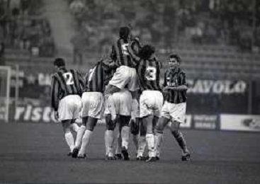 04-11-1992 MILANO OTTAVI DI FINALE DI RITORNO CHAMPIONS LEAGUE MILAN SLOVAN BRATISLAVA 4-0 NELLA FOTO DOPO GOAL MILAN AG ALDO LIVERANI SAS