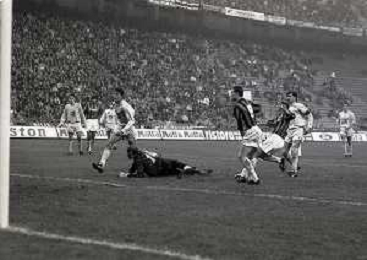 04-11-1992 MILANO OTTAVI DI FINALE DI RITORNO CHAMPIONS LEAGUE MILAN SLOVAN BRATISLAVA 4-0 NELLA FOTO GOAL MARCO SIMONE AG ALDO LIVERANI SAS