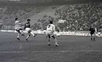 04-11-1992 MILANO OTTAVI DI FINALE DI RITORNO CHAMPIONS LEAGUE MILAN SLOVAN BRATISLAVA 4-0 NELLA FOTO KARL HEINZE RUMMENIGGE CON LA MOGLIE IN TRIBUNA AG ALDO LIVERANI SAS