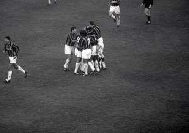 04-11-1992 MILANO OTTAVI DI FINALE DI RITORNO CHAMPIONS LEAGUE MILAN SLOVAN BRATISLAVA 4-0 NELLA FOTO ABBRACCI GIOCATORI MILAN DOPO IL GOAL AG ALDO LIVERANI SAS