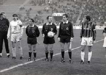 04-11-1992 MILANO OTTAVI DI FINALE DI RITORNO CHAMPIONS LEAGUE MILAN SLOVAN BRATISLAVA 4-0 NELLA FOTO ARBITRO Antonio Martín Navarrete AG ALDO LIVERANI SAS