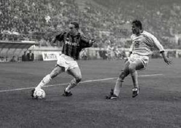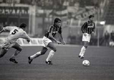 04-11-1992 MILANO OTTAVI DI FINALE DI RITORNO CHAMPIONS LEAGUE MILAN SLOVAN BRATISLAVA 4-0 NELLA FOTO AZIONE DI DANIELE MASSARO AG ALDO LIVERANI SAS
