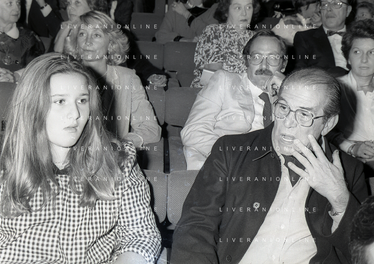 RETROSPETTIVA ENRICO MARIA SALERNO ATTORE NELLA FOTO ENRICO MARIA SALERNO NELL'ANNO 1984 AI PREMI MASCHERE D'ARGENTO CON LA FIGLIA DI MARISA VALENTI AG ALDO LIVERANI SAS