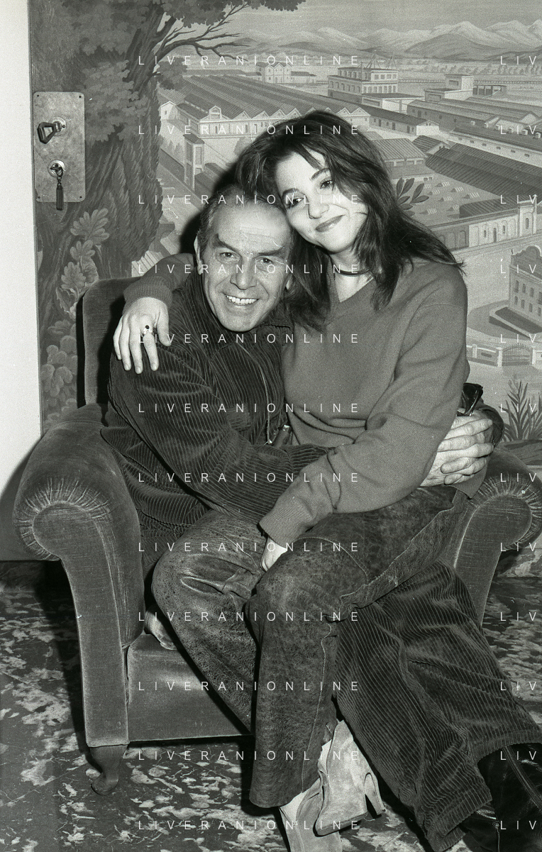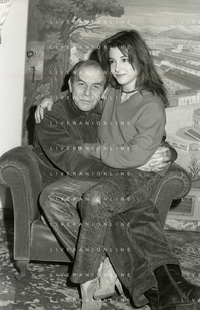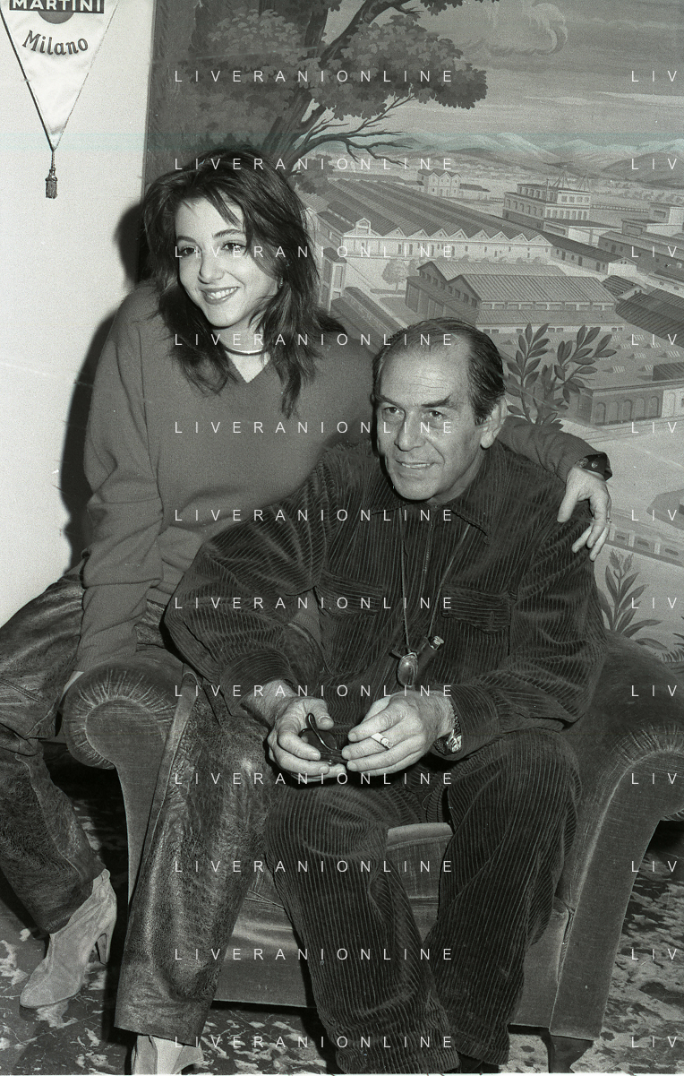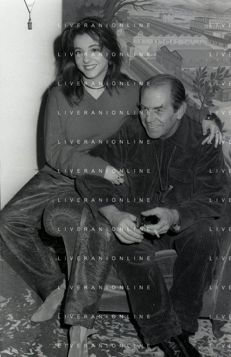 RETROSPETTIVA ENRICO MARIA SALERNO ATTORE NELLA FOTO ENRICO MARIA SALERNO NELL'ANNO 1982 CON LA FIGLIA CHIARA A TERRAZZA MARTINI MILANO AG ALDO LIVERANI SAS