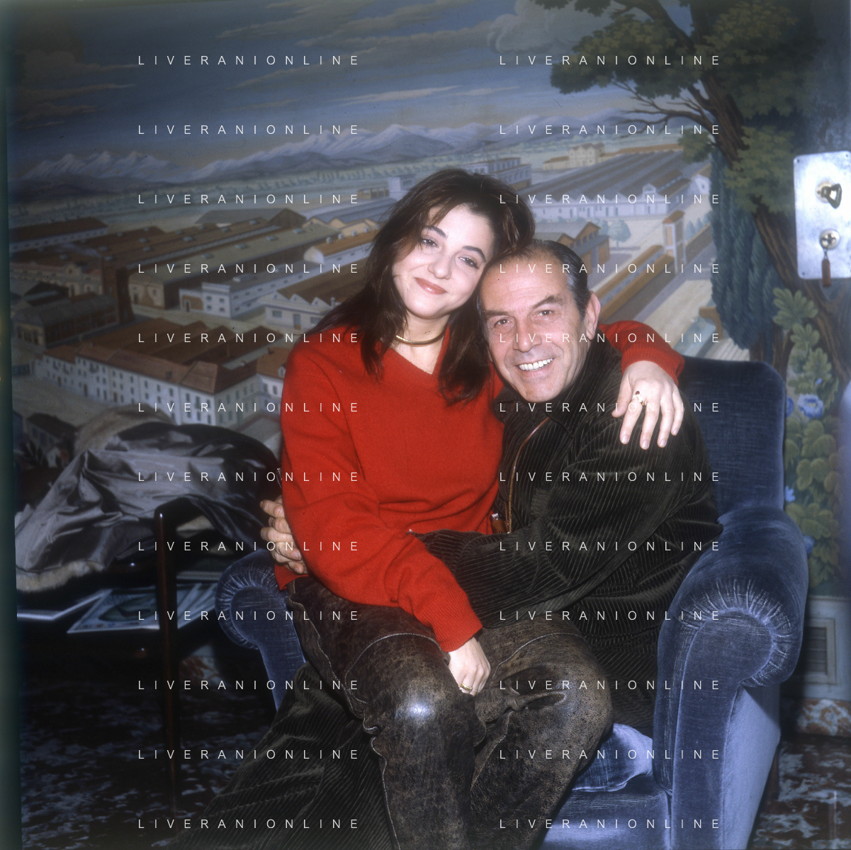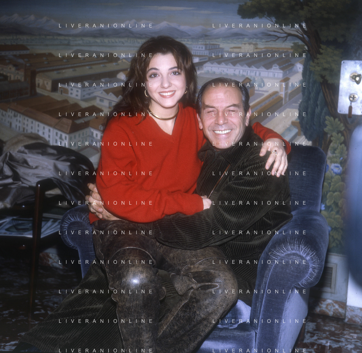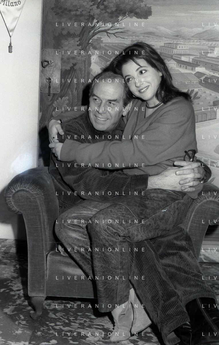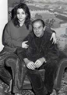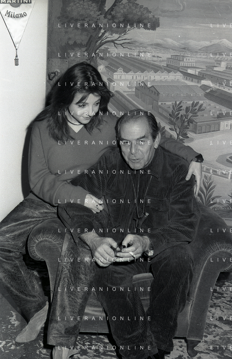 RETROSPETTIVA ENRICO MARIA SALERNO ATTORE NELLA FOTO ENRICO MARIA SALERNO NELL'ANNO 1982 CON LA FIGLIA CHIARA A TERRAZZA MARTINI MILANO AG ALDO LIVERANI SAS