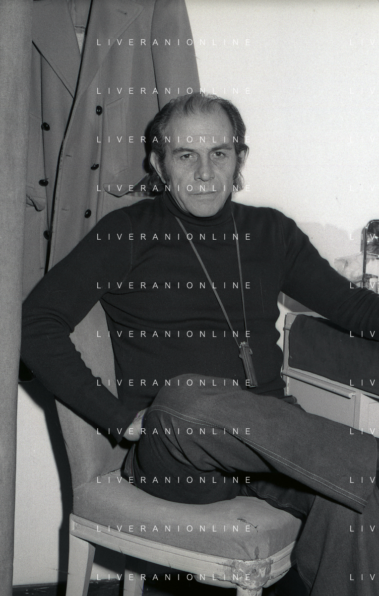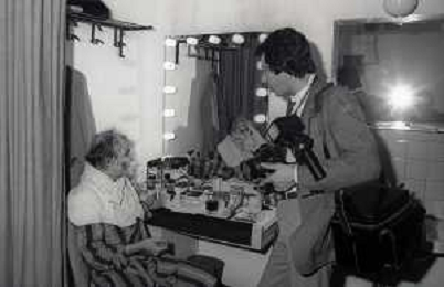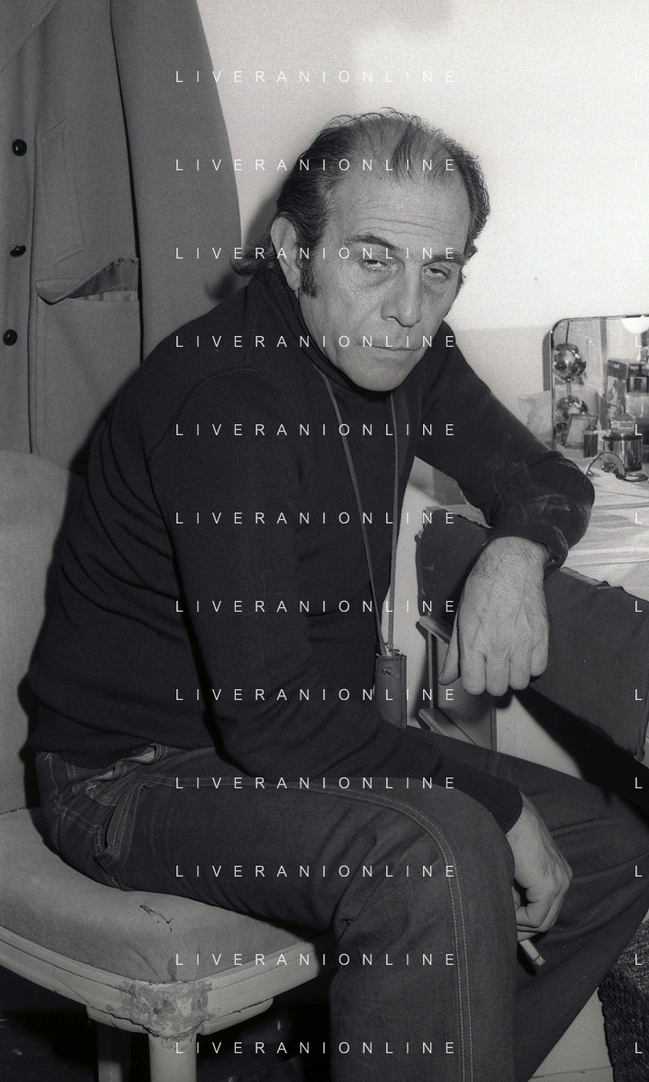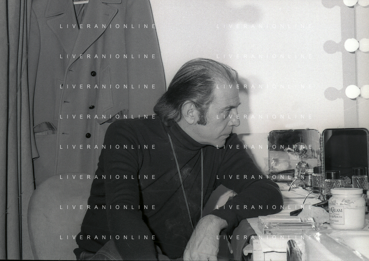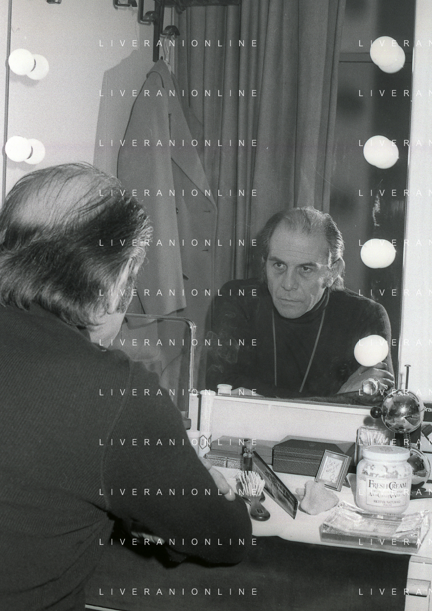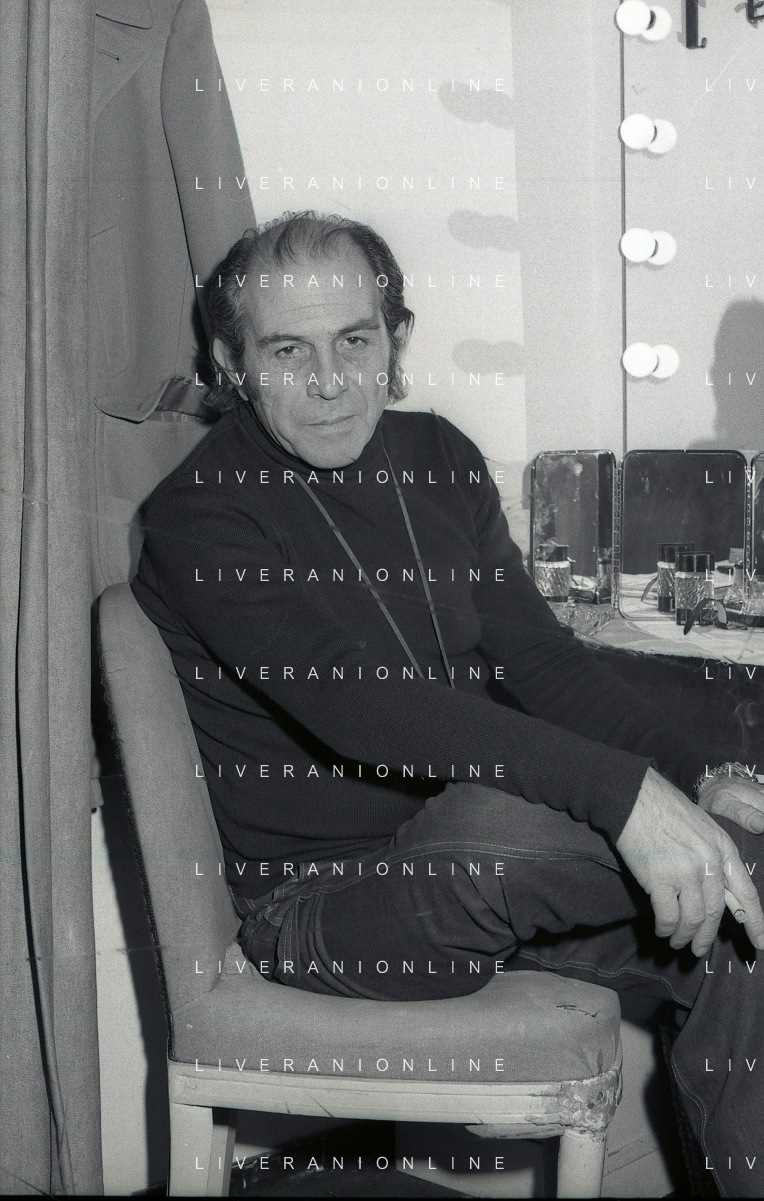 RETROSPETTIVA ENRICO MARIA SALERNO ATTORE NELLA FOTO ENRICO MARIA SALERNO NELL'ANNO 1980 NELLA COMMEDIA TEATRALE “IL MAGNIFICO CORNUTO“ CON IL FOTOGRAFO MICHELE SPALLETTA AG ALDO LIVERANI SAS